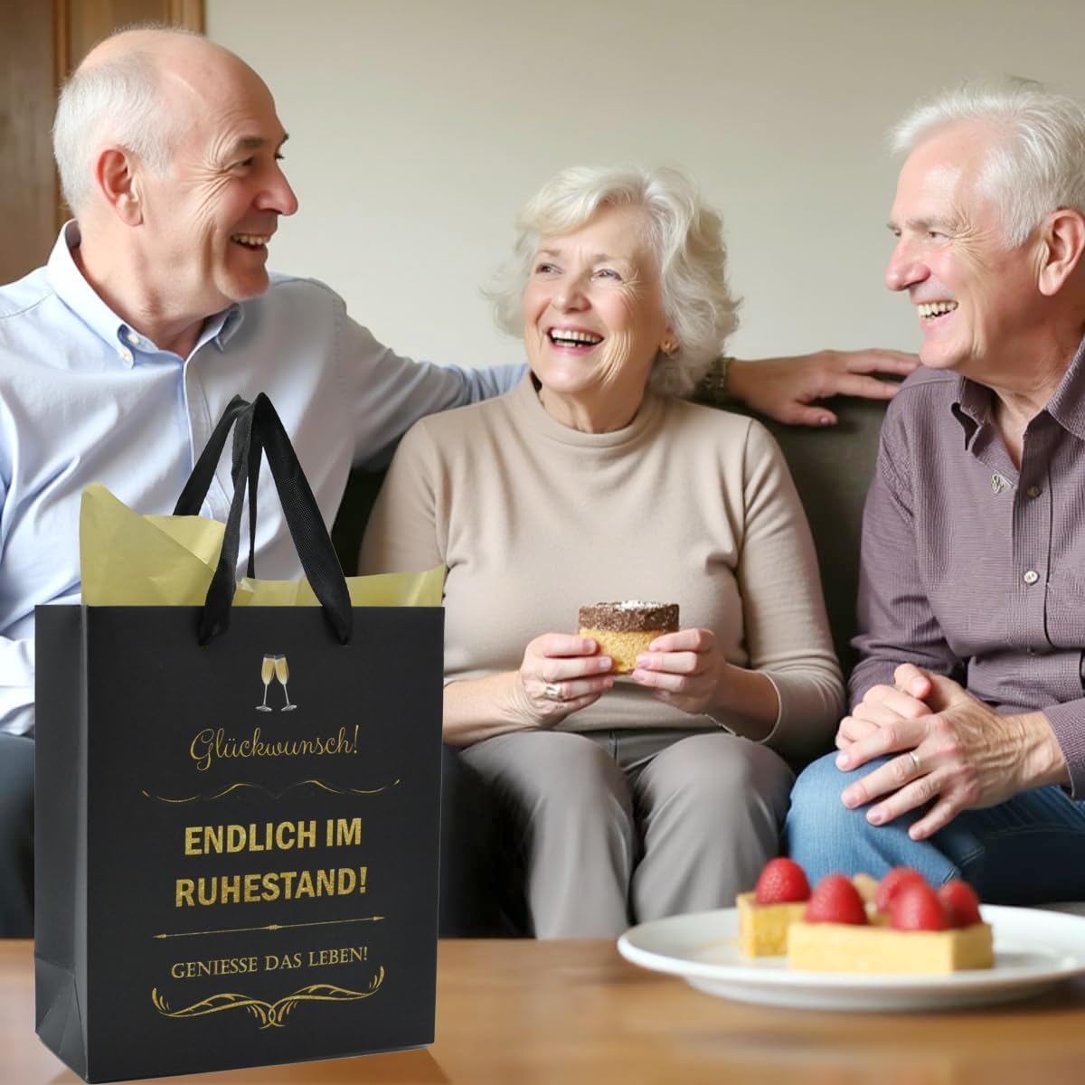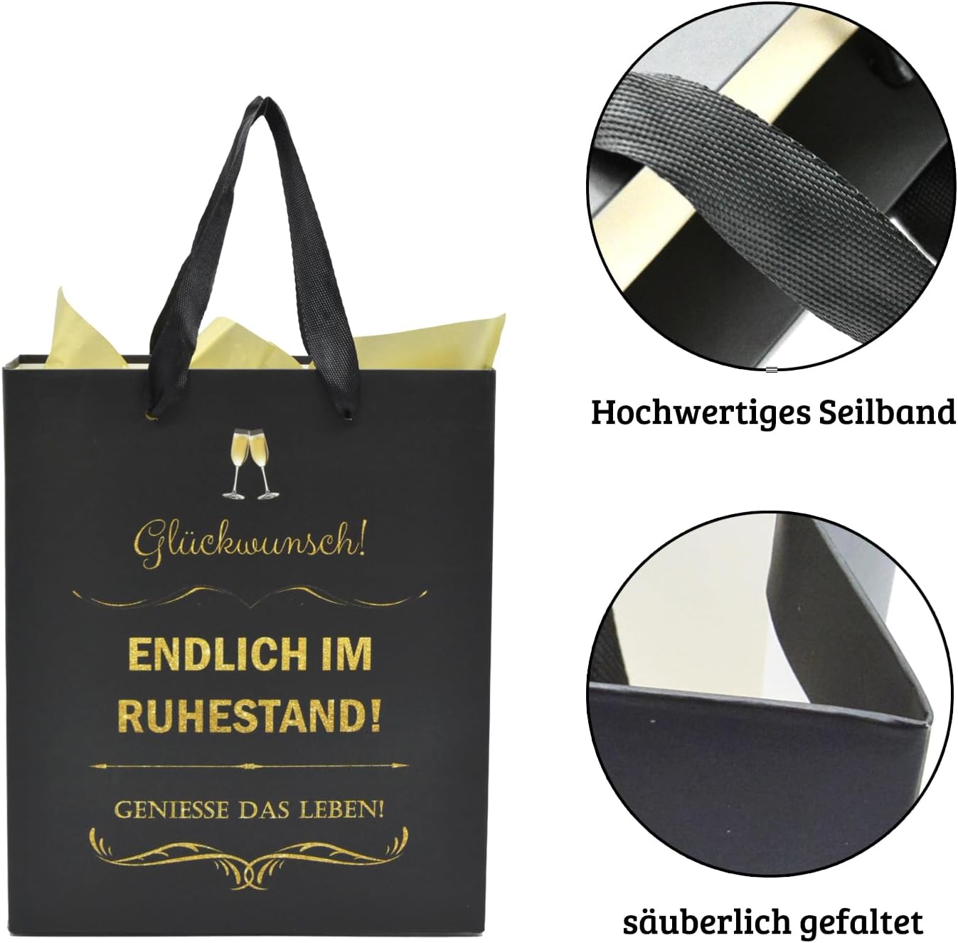 Offerta speciale: 1 sacchetto regalo per pensionati con manico (con la scritta "Congratulazioni! FINALMENTE IN PENSIONE! GODITI LA VITA!") + 2 fogli di carta velina bionda. 𝑴𝒂ß𝒆: sacchetto regalo: ca. 22 cm (larghezza) x 10 cm (profondità) x 26 cm (altezza); carta velina: ca. 50 x 70 cm (per foglio); Possibili applicazioni: la carta velina è adatta sia per decorare il sacchetto regalo che per confezionare piccoli regali. Eccellente: le nostre borse da matrimonio sono realizzate in cartone speciale extra spesso, idrorepellente ed estremamente robusto. Grazie alla sua elevata stabilità, la borsa non si rompe né si strappa facilmente e può essere utilizzata più e più volte. Grandi dimensioni: questi sacchetti regalo per la pensione di alta qualità offrono spazio sufficiente per regali in denaro, dolci, torte o piccole bomboniere. Grazie alle robuste maniglie in corda, sono facili da trasportare. 𝑷𝒆𝒓𝒇𝒆𝒌𝒕𝒆𝒔 Grande valore: questa elegante borsa costituisce la base ideale per il tuo set regalo. Combinateli semplicemente con un bicchiere e arance fresche: avrete un regalo di successo a tutto tondo per ogni stagione. Particolarmente adatto per salutare i colleghi in meritata pensione.