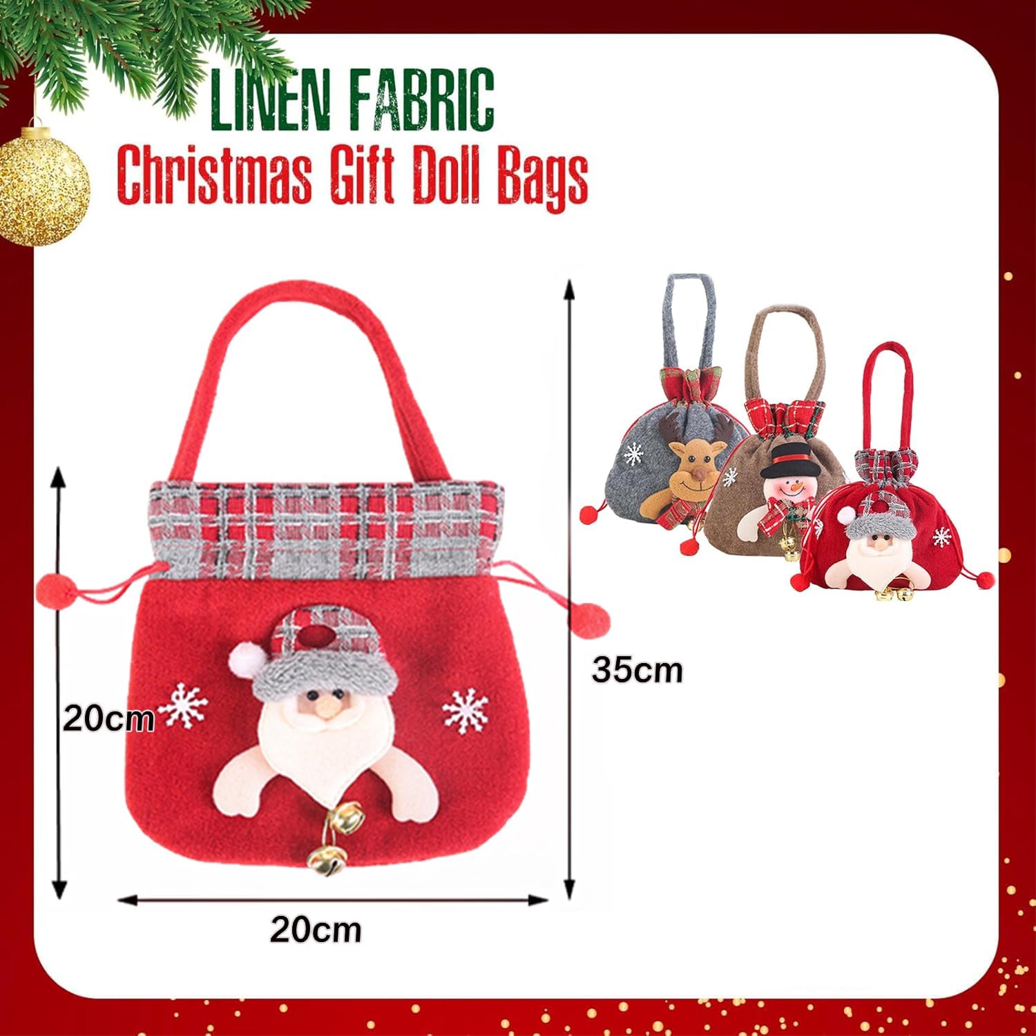 🎅Design delicato - Con Babbo Natale 3D, cervi di Natale e pupazzi di neve, i sacchetti regalo in 3 design sembrano ancora più delicati e speciali. Usarli alla festa di Natale ti fa circondare dalla forte atmosfera del festival natalizio. ⛄DIMENSIONE - Tre misurano 8 x 8 pollici / 20 x 20 cm, i sacchetti regalo sono di dimensioni adeguate per regali e dolci di Natale. Perfetto per fare un regalo delicato per la famiglia e gli amici. 🦌MATERIALE - Realizzati in lino di alta qualità, i sacchetti regalo sono resistenti e non facili da rompere, confortevoli e ben realizzati. Nota: non riporre all'interno oggetti sovrappeso o liquidi non sigillati. 🎄FACILI DA USARE - I sacchetti natalizi sono dotati di un cordoncino che facilita l'apertura e la chiusura dei sacchetti ed evita che gli oggetti si perdano. Il passante in corda funge anche da maniglia per la borsa. È facile da rimuovere ed è ideale per preparare tanti piccoli regali per bambini e ospiti, come: B. Biscotti, caramelle, biscotti, cioccolato, lecca-lecca e lavoretti vari. 🧦APPLICAZIONE - I sacchetti regalo per bambole di Natale sono adatti per conservare regali e caramelle. I sacchetti regalo di Natale in stili diversi sono la scelta migliore per confezioni regalo di Natale e decorazioni per l'albero di Natale.