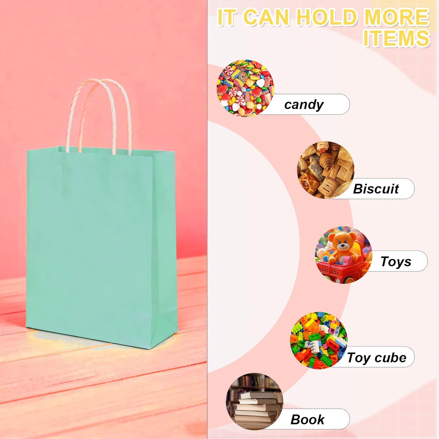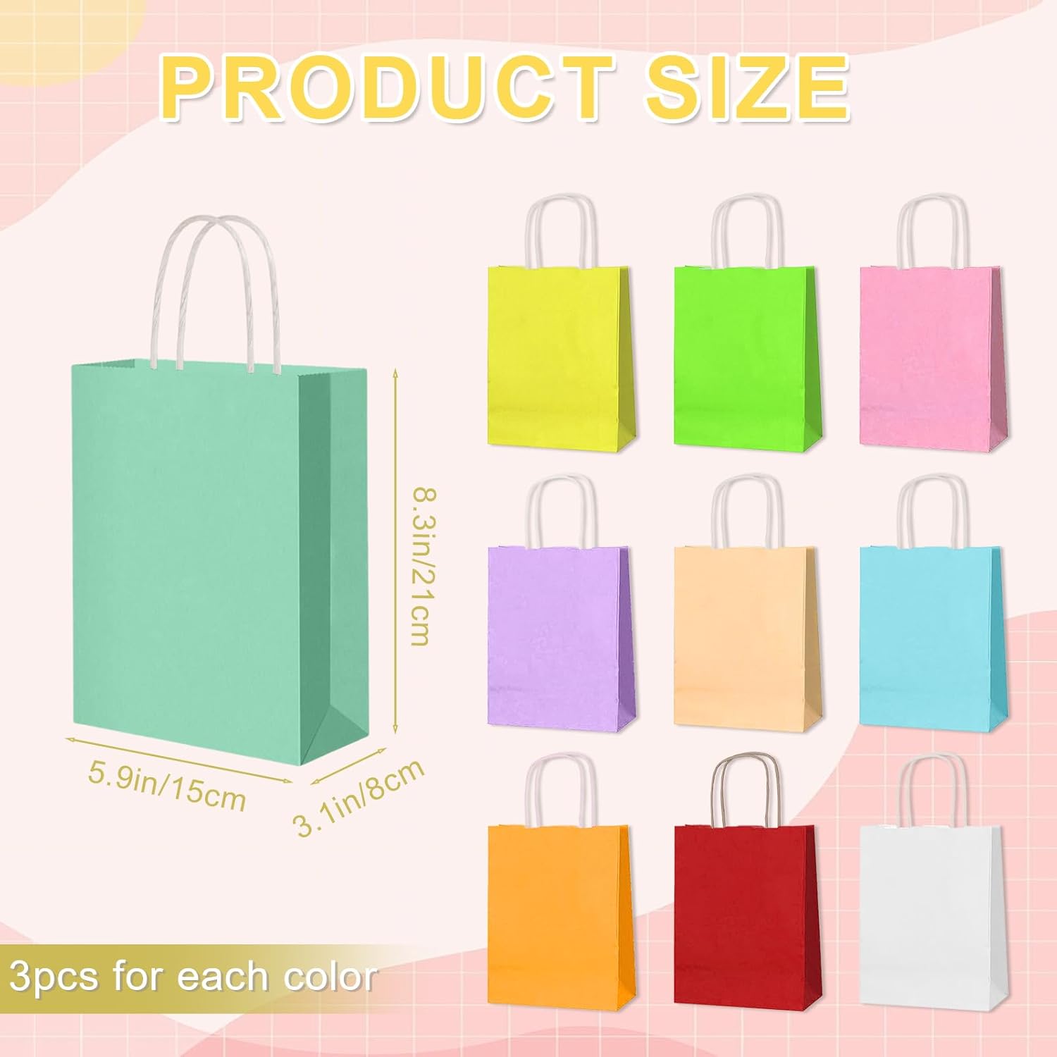 Set diversi per ogni celebrazione: i nostri sacchetti regalo sono disponibili in tre versioni - 30 pezzi colorati, 30 pezzi marroni e 10 pezzi colorati - tutti misurano 15x8x21 cm. Questa varietà li rende perfetti per i sacchetti regalo per compleanni di bambini, feste o altre occasioni in cui è necessaria la giusta quantità. Pratici sacchetti di carta con manici: ogni sacchetto regalo ha manici robusti che ne facilitano il trasporto, ideale per i bambini che vogliono portare con sé con orgoglio i loro regali. Le maniglie sono fissate saldamente in modo che i sacchetti di carta rimangano sicuri anche quando sono pieni. Materiali di alta qualità per una maggiore durata: i sacchetti di carta sono realizzati con carta resistente che non solo è ecologica ma anche abbastanza resistente da contenere piccoli giocattoli, dolciumi o altri regali. Questi sacchetti regalo resistono anche all'uso frequente. Design colorati e naturali: i sacchetti regalo colorati portano un'atmosfera allegra ad ogni celebrazione, mentre le versioni marroni offrono un aspetto rustico e naturale. Per sacchetti regalo per compleanni di bambini, feste o Natale: si adattano a ogni tema. Utilizzo versatile: sia come confezione regalo, come sacchetto ricordo per le feste di compleanno dei bambini o come decorazione, questi sacchetti di carta con manici sono sufficientemente flessibili per soddisfare tutte le vostre esigenze. Le dimensioni 15x8x21 cm offrono spazio sufficiente per piccole sorprese.