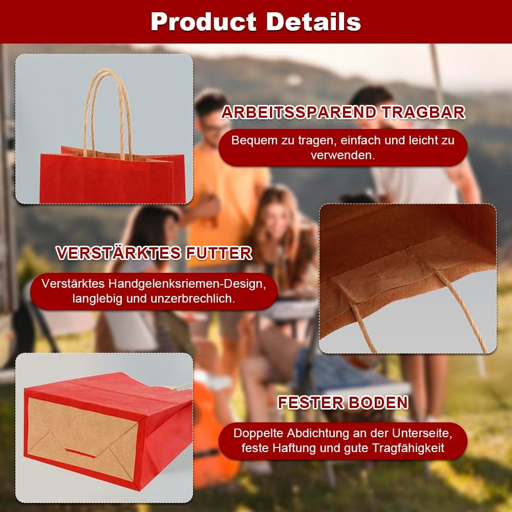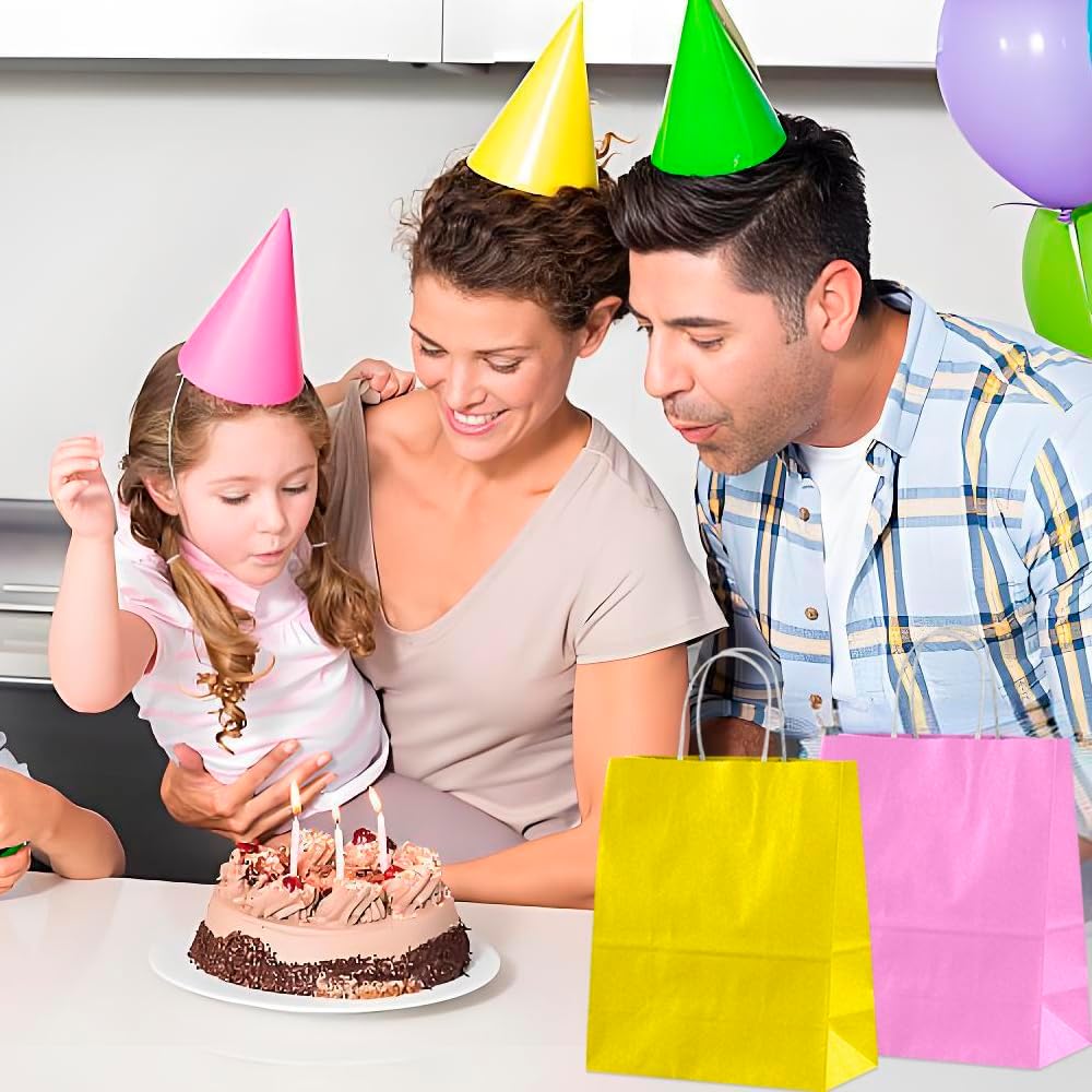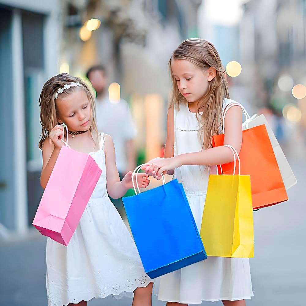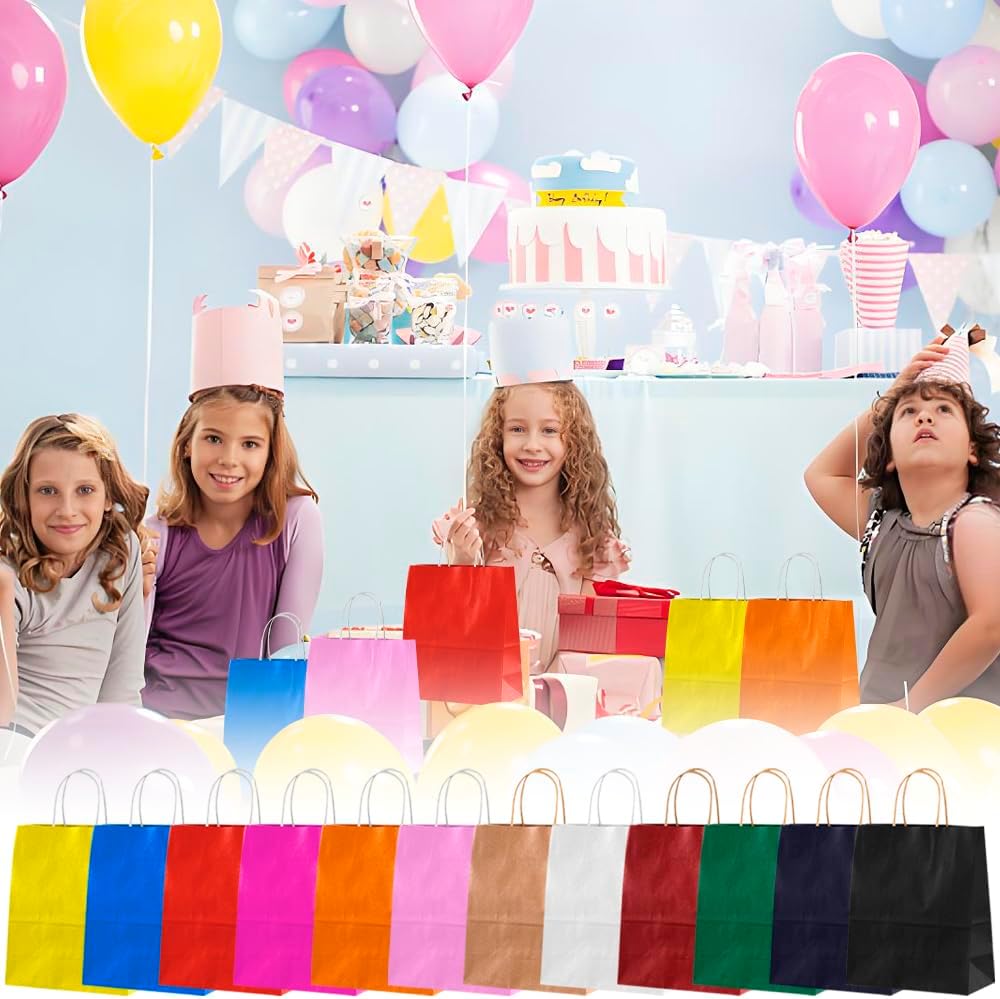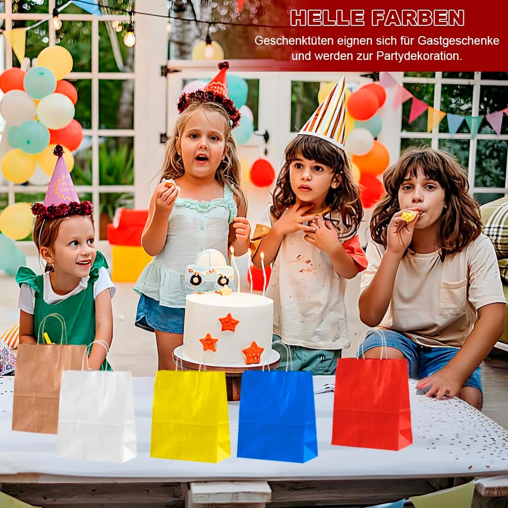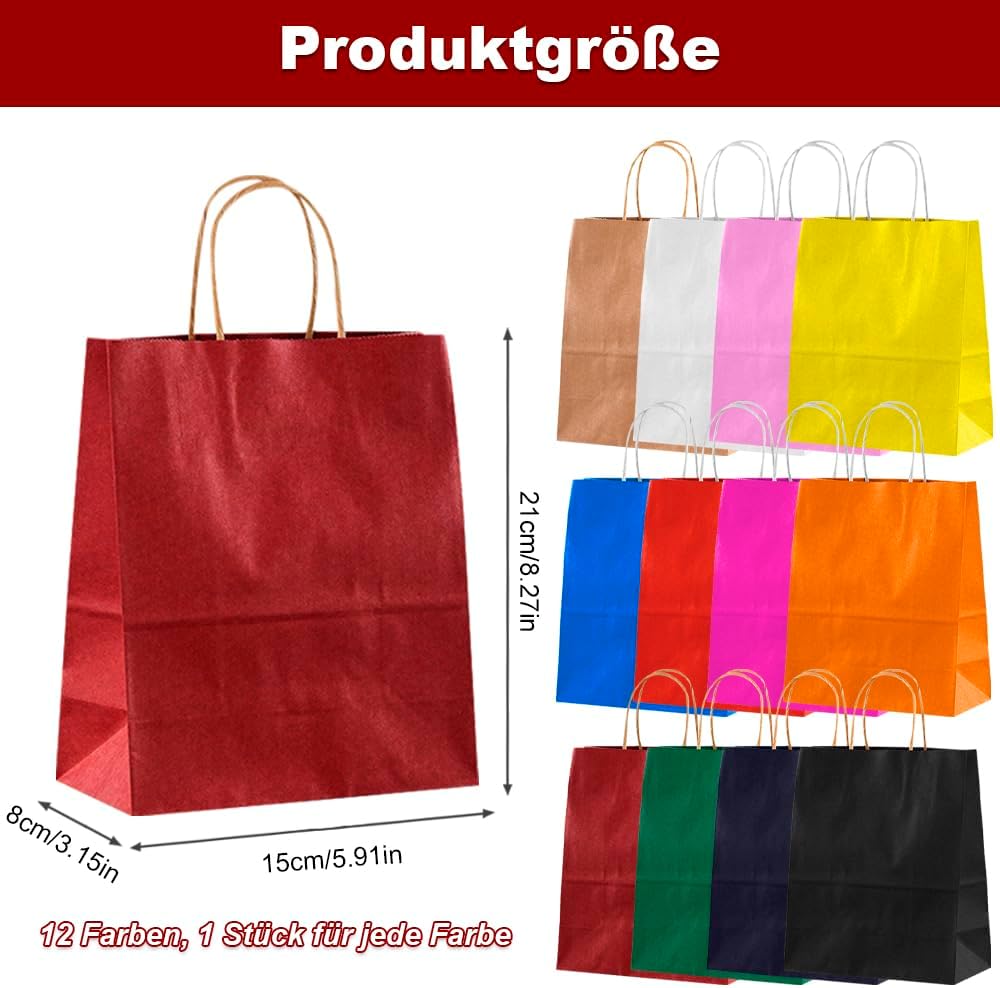 Contenuto e dimensioni: il set contiene 12 robusti sacchetti di carta in 12 colori diversi (dimensioni: 21 x 15 x 8 cm). Perfetto per riporre oggetti o per usi multipli. Ideale per feste e celebrazioni: può essere utilizzato a Natale, Pasqua, Halloween, compleanni o matrimoni. Con maniglie rinforzate per un facile trasporto. Utilizzo versatile: non solo per dolci, ma anche per snack, cioccolato o piccoli oggetti fatti a mano. Adatto ad ogni occasione Design creativo possibile: le borse neutre possono essere dipinte o etichettate individualmente - ideali per regali personali Stabile: realizzate in carta kraft di alta qualità - robuste e durevoli, difficili da danneggiare. Protegge in modo affidabile dolci e piccoli regali