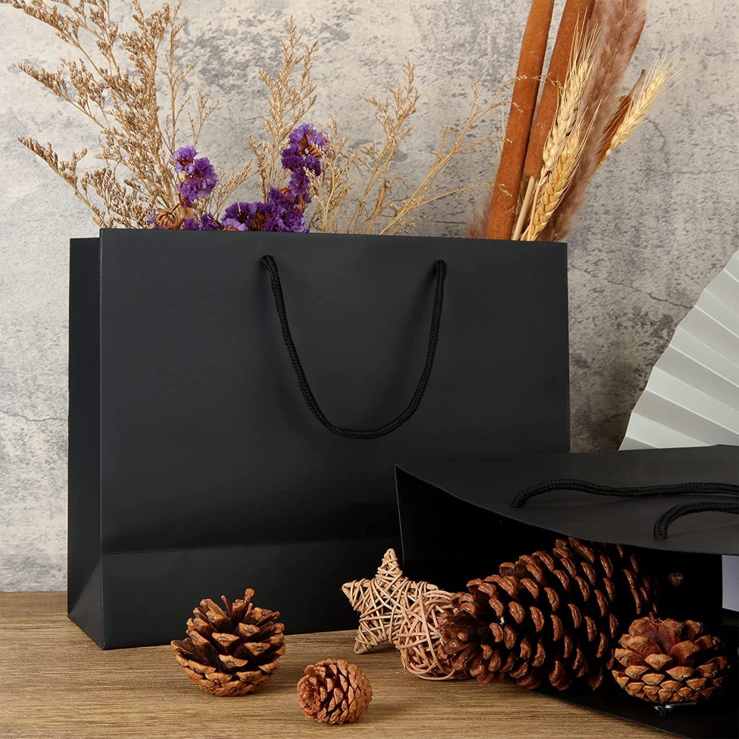 MATERIALE: gli stili A e C sono realizzati in cartone nero, gli stili B e D sono realizzati in carta kraft, riciclabile e riutilizzabile, con maniglia, le corde con impugnatura morbida offrono un'esperienza comoda da indossare, resistente e durevole. DIMENSIONE: Stile A, B (Lunghezza x Larghezza x Altezza 35 x 13 x 26 cm), Stile C, D (Lunghezza x Larghezza x Altezza 24,5 x 11 x 33 cm). In base alla dimensione e alle caratteristiche del regalo, puoi scegliere lo stile e la dimensione più adatti a soddisfare le tue diverse esigenze. IMBALLAGGIO PERFETTO: Questo è un imballaggio perfetto che può essere utilizzato in bar, ristoranti, panetterie, negozi di cioccolato, negozi, supermercati, negozi di abbigliamento e così via. Quando l'ospite ha bisogno di fare le valigie, questa borsa riutilizzabile può essere imballata e riutilizzata. In un certo senso è rispettoso dell'ambiente. DESIGN SEMPLICE: Il design di questa borsa regalo è adatto al gusto delle persone moderne, il design classico, senza troppi modelli scomodi, maschili e femminili, può essere utilizzata anche come borsa per la spesa quotidiana. PRATICO: è un ottimo sacchetto regalo per battesimi, matrimoni, anniversari, compleanni di bambini, San Valentino, cerimonie di laurea, qualsiasi festival, festa del papà, festa della mamma, Pasqua, Natale, feste di compleanno, baby shower, feste e così via.