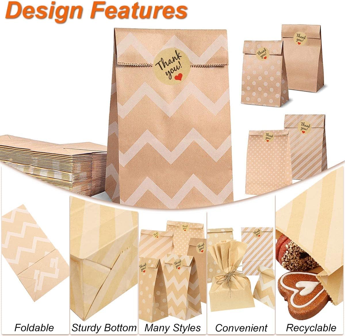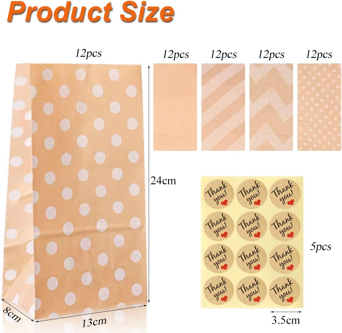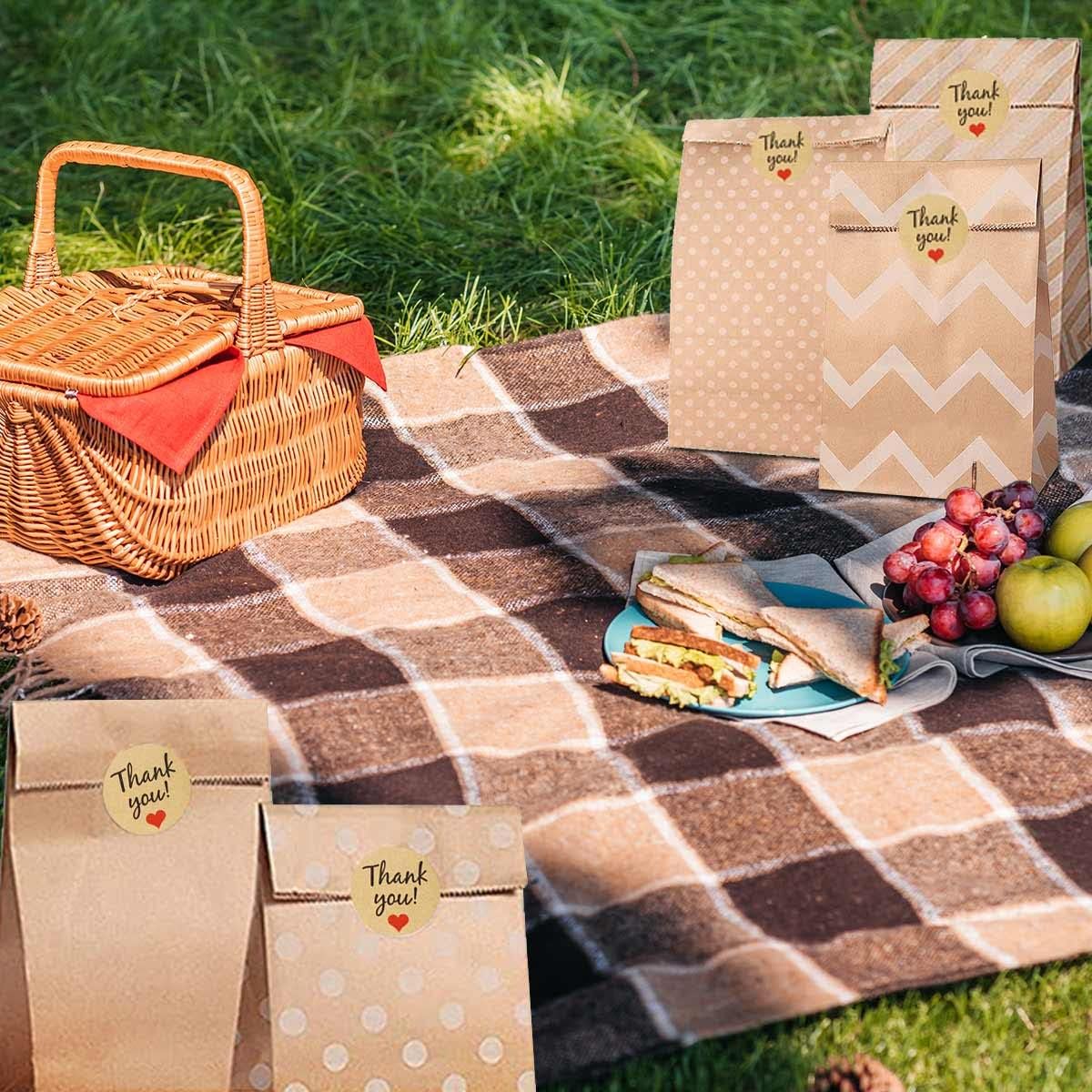 Quantità e dimensioni: il set contiene un totale di 60 sacchetti di carta marrone. Questi sacchetti regalo di carta misurano 24 cm x 13 cm x 8 cm ciascuno, 5 modelli diversi, 12 pezzi per modello, 60 adesivi. Personalizzati e pratici: i sacchetti di carta kraft hanno un fondo piatto in modo che possano essere posizionati in posizione verticale. Ideale per conservare torte, caramelle, biscotti, ecc. Materiale di alta qualità: realizzato in resistente carta kraft marrone, con lunga durata, riutilizzabile, inodore e sicuro per i tuoi usi. Per regali: Ideale come confezione per regali di compleanno, Natale, matrimonio. Sono ottimi anche per il fai da te o come piccolo regalo. La combinazione di adesivi squisiti e sacchetti di carta kraft è più adatta per i regali. Rispettoso dell'ambiente: da ora in poi, evita i sacchetti di plastica dannosi per l'ambiente. Questi sacchetti di carta usa e getta possono essere utilizzati in svariati modi e, a differenza dei sacchetti di plastica, non generano rifiuti.