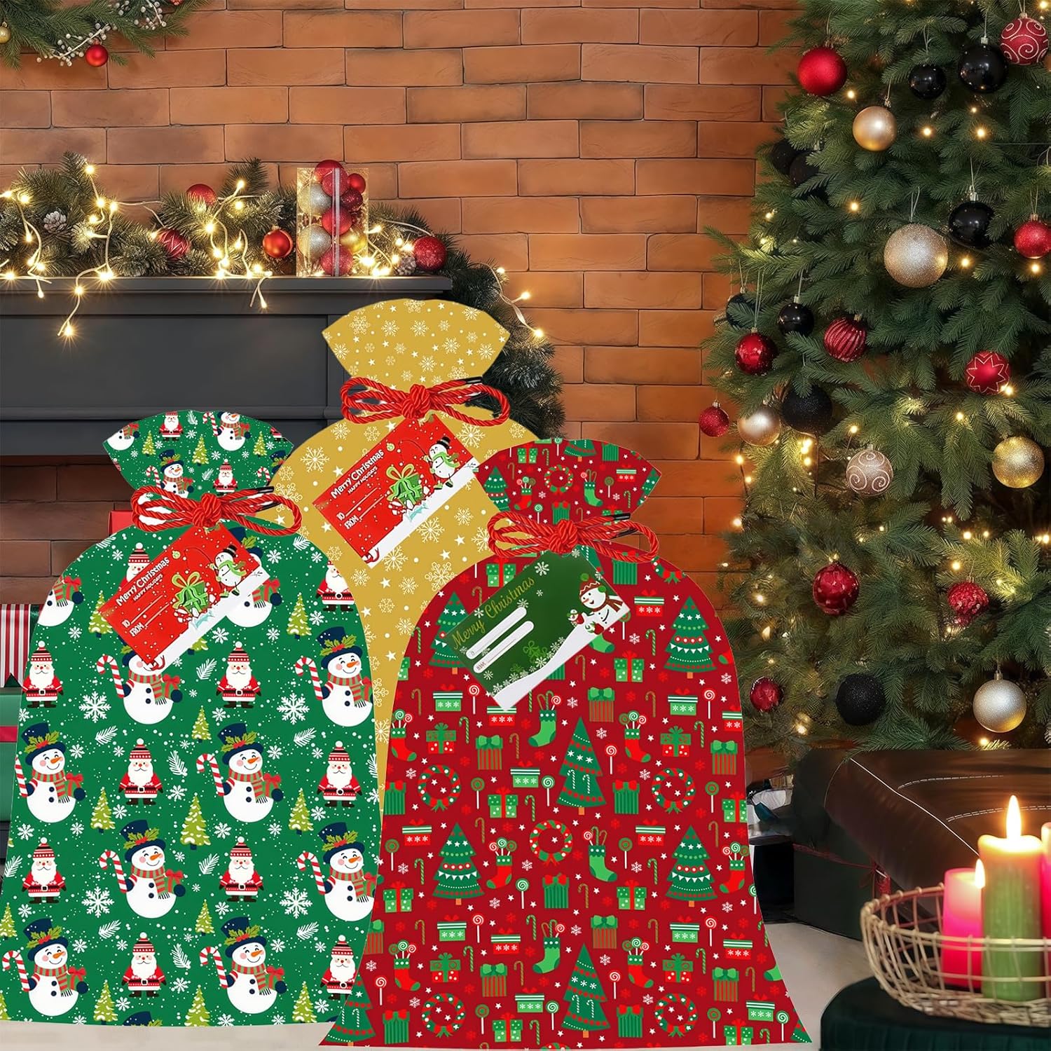 🎅Sacchetti regalo in materiale plastico al 100%: confezione da 3 sacchetti regalo natalizi in materiale plastico al 100%, sacchetto regalo grande con targhetta con nome e cordino natalizio Biodegradabile, ecologico, non tossico e innocuo per il corpo umano, impermeabile e facile da pulire. 🌟Dimensione ideale: Sacchi natalizi creativi di colore natalizio di grandi dimensioni Lo stile misura circa 36 x 56 pollici (91,44 * 142 cm) * 3 pezzi, cartellino, corda di cotone rosso Dimensioni perfette per confezioni regalo natalizie giganti, ideali per confezioni regalo natalizie e decorazioni per feste. 🎁Utilizzo di decorazioni per sacchetti regalo di grandi dimensioni: sacchetto regalo di grandi dimensioni facile da chiudere l'apertura della borsa, le etichette con il nome sono modellate con pupazzo di neve e abbinate ai sacchetti regalo, puoi scrivere il tuo nome e il nome dei destinatari, sacchetti regalo natalizi, decorazioni regalo giganti per inviare loro i tuoi migliori auguri. 🌟Disegni festivi di Natale: la confezione regalo jumbo con design in colori natalizi rosso bianco verde è la più amata dai bambini di tutte le età! I nostri amanti delle vacanze per bambini o dei colorati regali di Natale, i sacchetti regalo e le decorazioni in plastica sembrano fantastici. Buon Natale o festa artistica davvero speciale con questi. 🎅GARANZIA DI SODDISFAZIONE AL 100%: Servizio post vendita Se hai qualche problema con i sacchi natalizi extra large per decorazioni regalo, contattaci in qualsiasi momento, ti risponderemo entro 24 ore e troveremo la soluzione migliore per te.