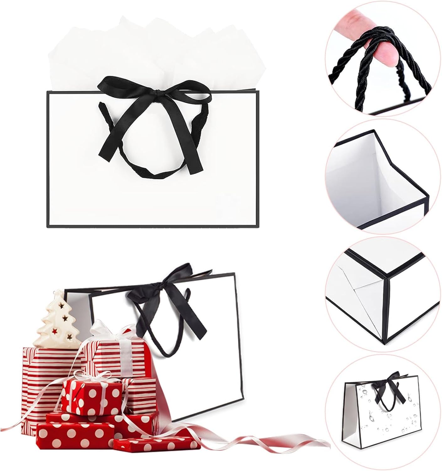 I sacchetti regalo di compleanno hanno uno speciale design a fiocco che crea un ambiente elegante e lascia dolci ricordi al destinatario. I sacchetti regalo con manici possono essere colorati, scarabocchiati e disegnati secondo le proprie idee. Sacchetti regalo con fiocchi realizzati in materiale di alta qualità con manici robusti e buona capacità di carico. I sacchetti per feste misurano 28 x 20 x 10 cm, adatti per regali di piccole o medie dimensioni. Adatto per la maggior parte delle occasioni come feste, compleanni, festival, ecc. Il prodotto include: 2 sacchetti regalo, 2 fogli di tessuto, 2 biglietti. Può essere usato per decorare i tuoi regali.