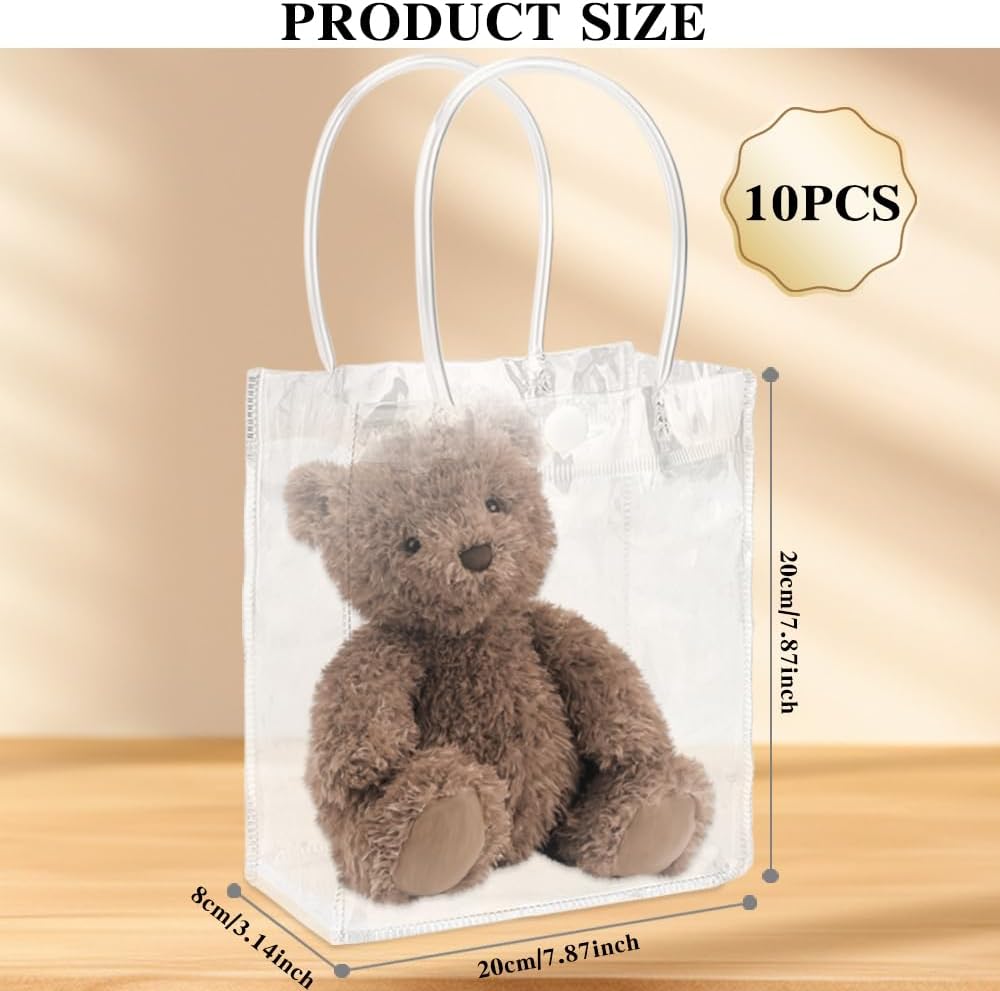 Sacchetti regalo trasparenti: il design trasparente non solo ti consente di vedere il contenuto del regalo a prima vista e aggiunge un tocco di mistero, ma rende anche molto facile aggiungere decorazioni personali come adesivi, nastri, ecc., rendendo ogni sacchetto regalo unico. SACCHETTI REGALO PARTY: questi sacchetti regalo trasparenti semplici, carini ed eleganti sono perfetti per una varietà di occasioni di festa, come: B. Baby shower, addio al nubilato, feste di compleanno e matrimoni, ma non solo. Ma sono adatti anche per l'uso quotidiano e portano un tocco di eleganza nella vita di tutti i giorni SPESSORI E SERI: I sacchetti regalo sono realizzati in plastica PVC di alta qualità, impermeabile e riutilizzabile. Sono dotati di robuste maniglie per il trasporto e chiusure a scatto, che garantiscono maggiore capacità di carico e durata rispetto ai tradizionali sacchetti di carta Piccoli sacchetti regalo: Ogni set contiene 10 sacchetti regalo trasparenti che misurano 15 cm x 12,7 cm x 6,5 cm, ideali per piccoli regali, giocattoli, profumi, fiori e dolci, ecc. Piccoli e raffinati, adatti per accompagnare regali Ampia gamma di usi: Questi sacchetti regalo sono adatti non solo per feste, ma anche per molte altre occasioni come addii al celibato, eventi sportivi, Pasqua, Natale, ecc. Sono ideali anche per la vendita al dettaglio e le piccole imprese come regali promozionali molto versatili