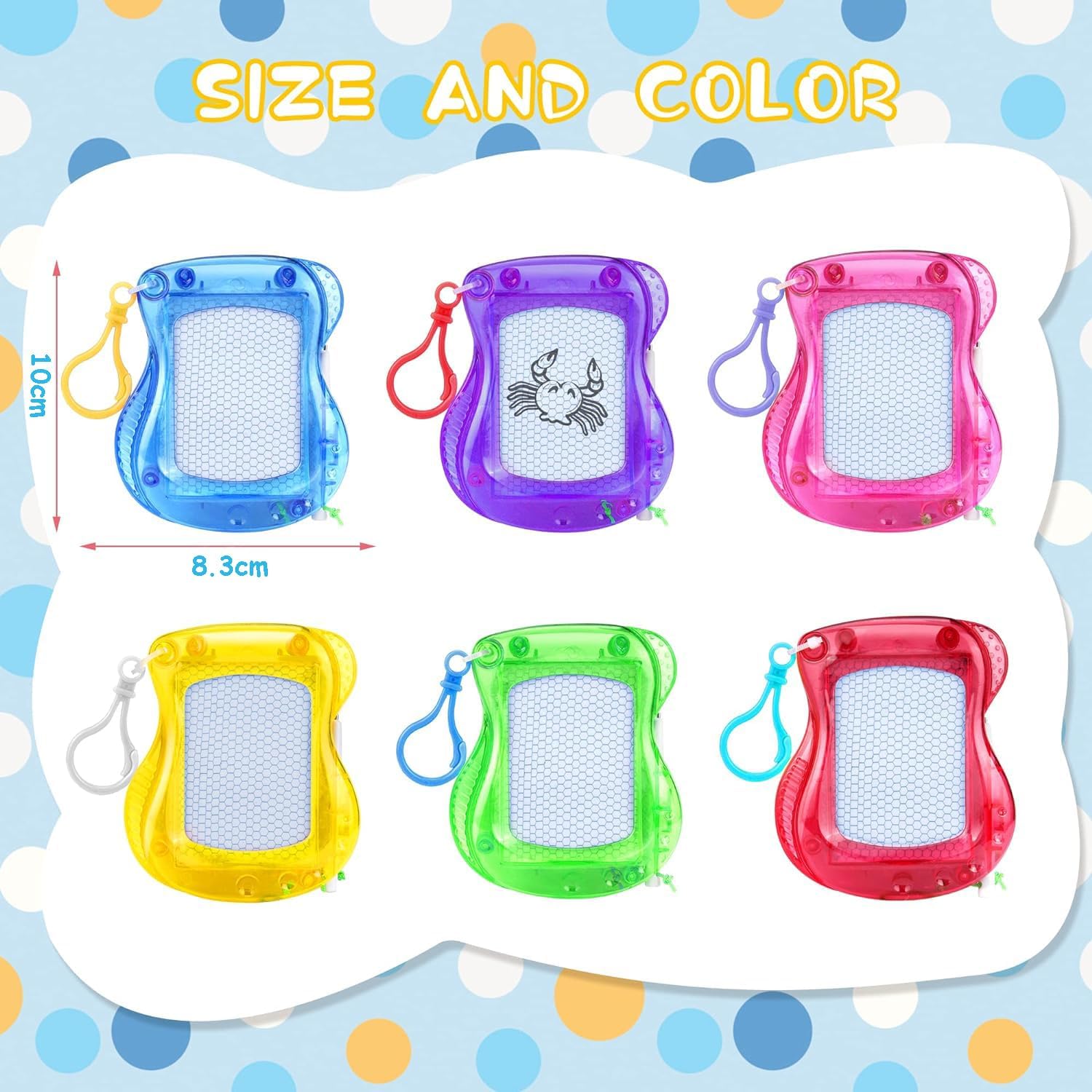 Diventa creativo! Set mini tavolo da disegno magnetico - PACCHETTO DA 12: questo set creativo da tavolo da disegno con 12 tavole colorate, confezionate singolarmente, è ideale per bambini dai 3 anni in su. Questi mini tavoli da disegno fungono anche da portachiavi che possono essere attaccati allo zaino o al portachiavi, garantendo ore di divertimento. Promuovono la creatività e l'immaginazione dei bambini. Divertiti! Clip portachiavi per zaino: ragazzi e ragazze dai 3 anni in su passeranno ore a creare e cancellare i loro disegni. Puoi creare infiniti disegni senza sprecare carta o creare disordine. Basta scorrere per cancellare e sei pronto per il prossimo disegno! Queste mini lavagne magnetiche sono leggere e facili da riporre, il che le rende ideali per le attività di guida in auto e per i giocattoli didattici dei bambini! Incoraggia la creatività e l'immaginazione: incoraggia i bambini a usare la loro immaginazione e sviluppa importanti capacità motorie. Queste importanti attività che stimolano il cervello aiutano i bambini a imparare attraverso il gioco, rendendo ogni tavolo da disegno un'esperienza creativa! Ogni tavola magica per bambini misura 8,5 cm x 10 cm ed è confezionata singolarmente. Ideale per bomboniere e sacchetti a sorpresa: il nostro tavolo da disegno magnetico per bambini è il regalo perfetto per i compagni di classe, bomboniere per feste di compleanno per bambini, regali di Natale, regali per feste e molto altro ancora. I genitori ti ringrazieranno per questo favore unico per la festa invece di mettere caramelle nel sacchetto dei regali e nei sacchetti di compleanno. Soddisfazione garantita: quando acquisti i nostri mini tavoli da disegno magnetici e le bomboniere per bambini, puoi essere certo che la tua soddisfazione è la nostra massima priorità. Se per qualsiasi motivo non sei soddisfatto al 100%, faremo tutto il possibile per assicurarci che tu sia completamente soddisfatto del tuo acquisto.