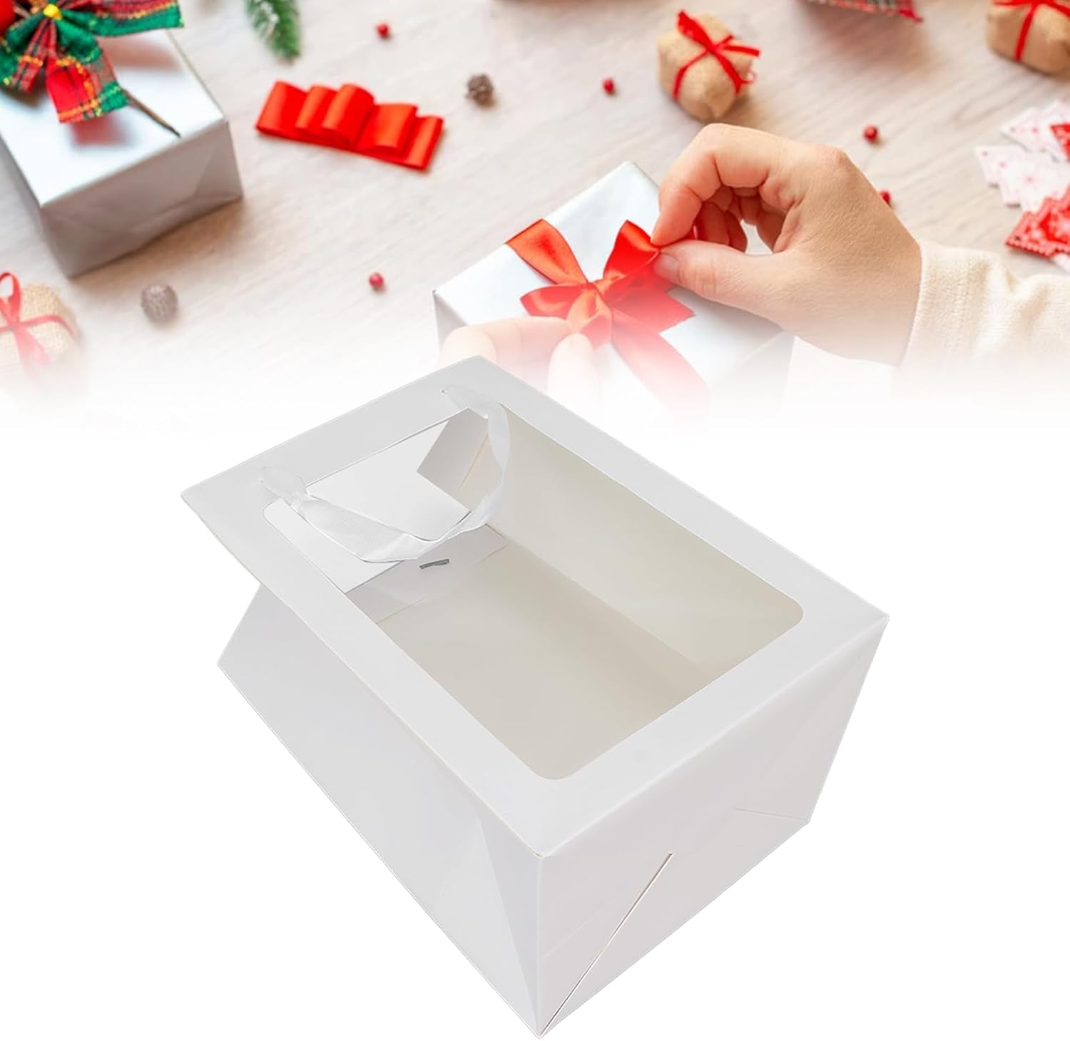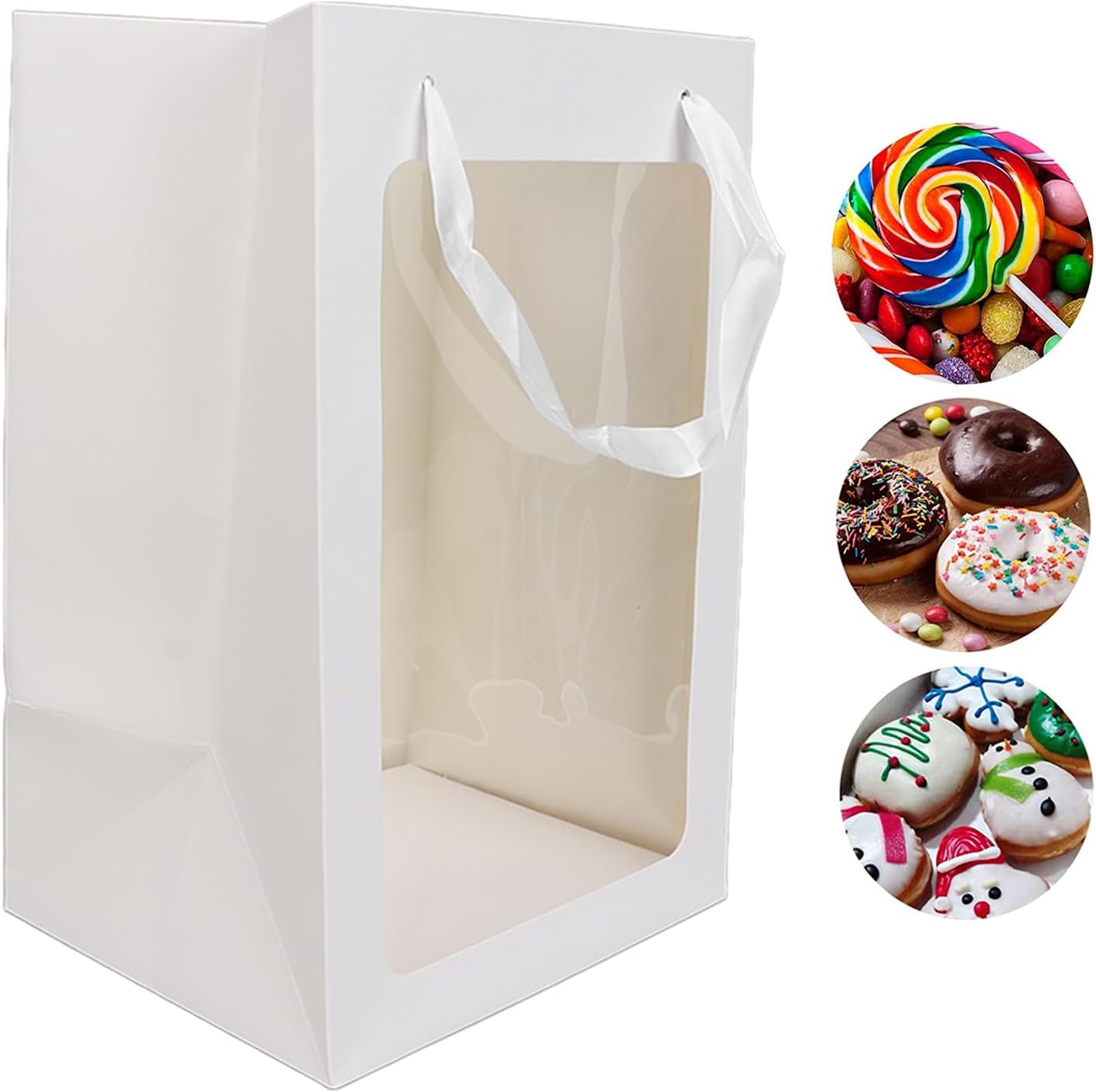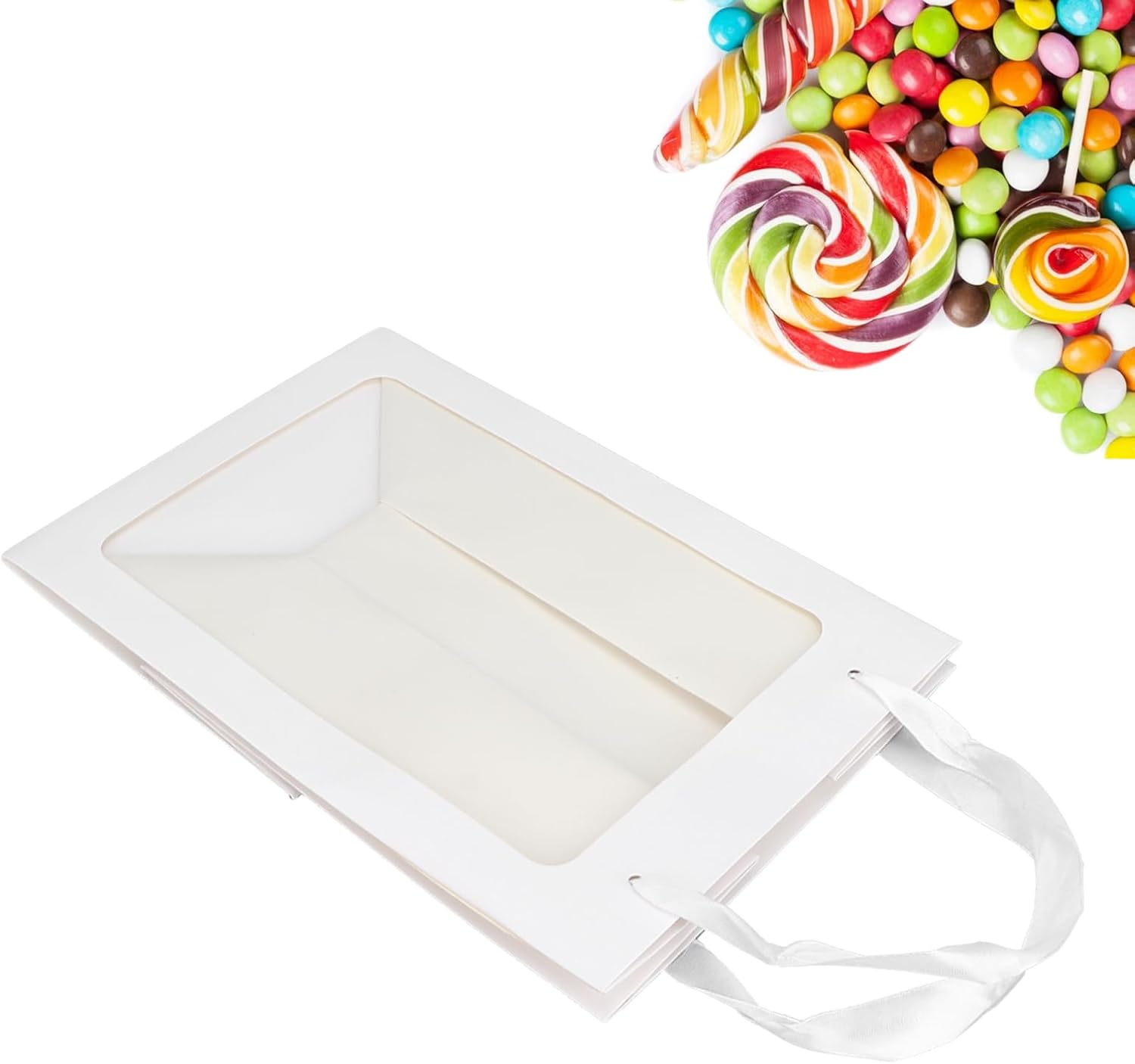 Sacchetto regalo extra grande con manici, sacchetto regalo trasparente con finestra aperta per rossetto, accessori per gioielli, borse per la spesa, sacchetti per feste, sacchetti regalo, 35 x 25 x 18 cm (Bianco)