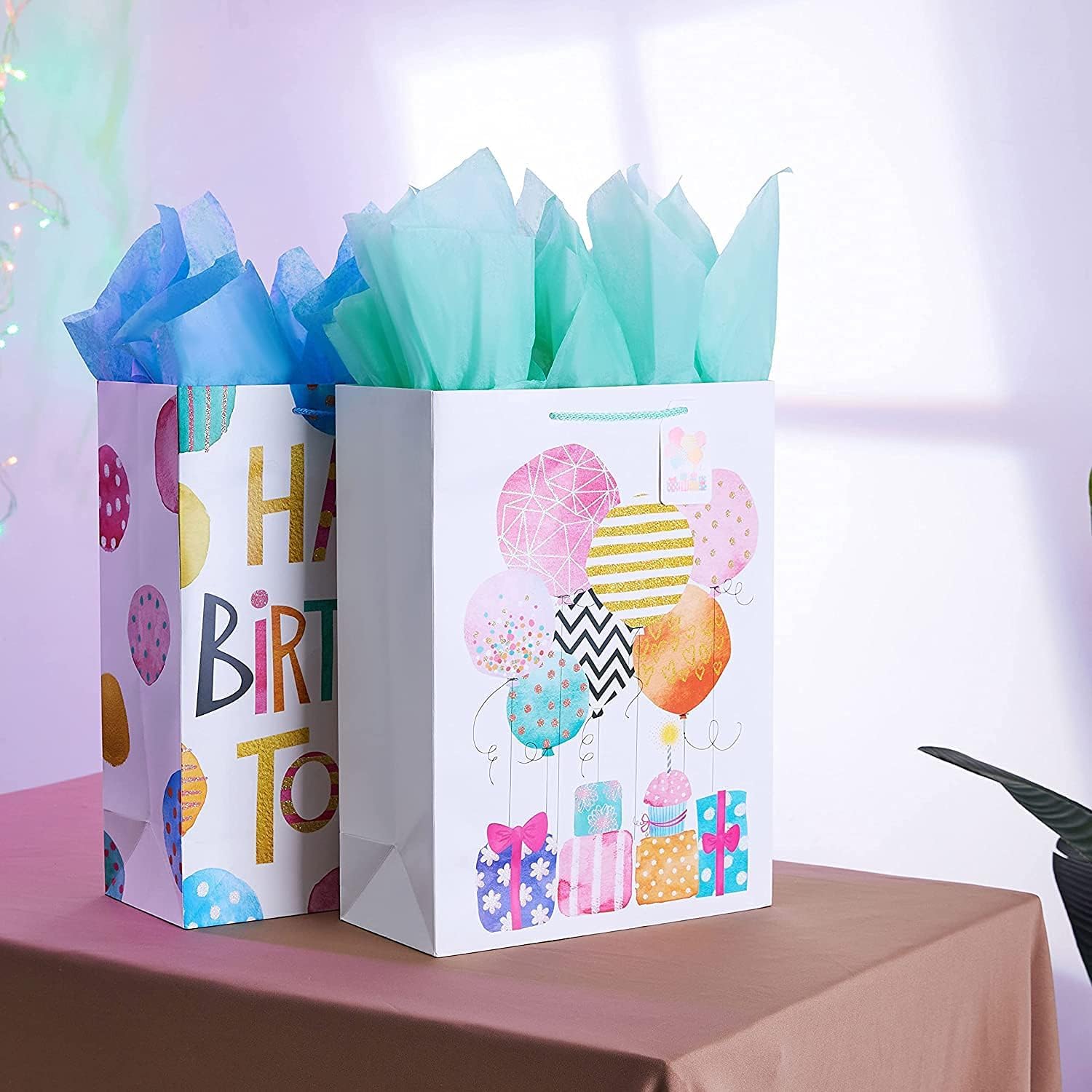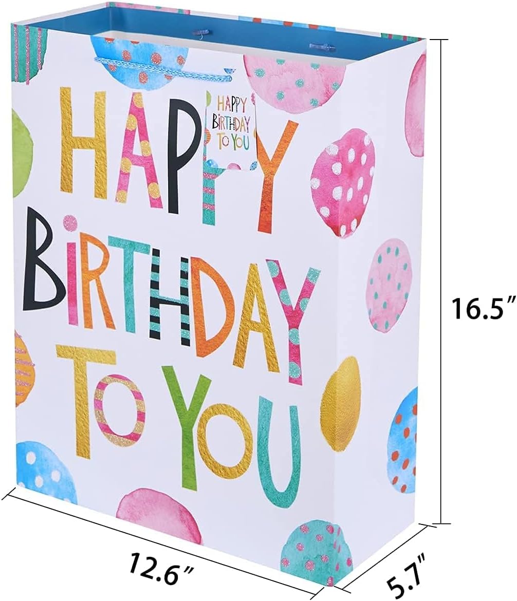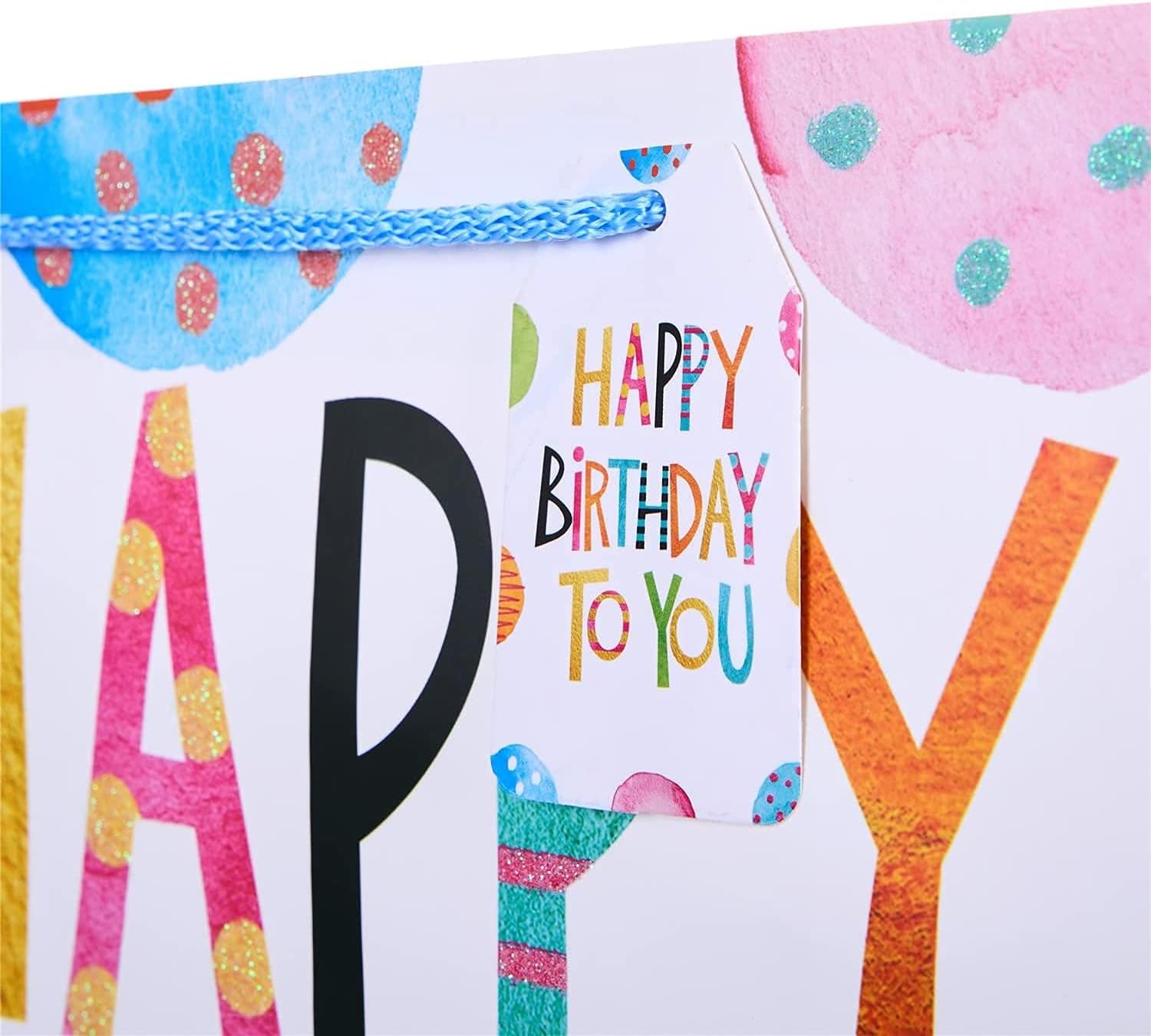 🎈Fornitura: 2 sacchetti regalo di compleanno sacchetto di carta con manico sacchetto regalo di buon compleanno con motivi di compleanno per occasioni di compleanno 🎈Sacchetti di carta di fantastica qualità con manici Questi robusti sacchetti regalo di carta sono riutilizzabili, riciclabili, biodegradabili e compostabili. 🎈La struttura di qualità, le grandi dimensioni e l'orientamento verticale gli consentono di ospitare una varietà di regali tra cui giocattoli, pacchetti multi-articolo, vestiti e altro ancora. 🎈Questi graziosi sacchetti regalo sono adatti per eventi come feste, compleanni, festival estivi, matrimoni o piccoli negozi come caramelle. Puoi usare questi sacchetti per avvolgere dolci, regali o altri piccoli oggetti. 🎈Ampia applicazione: perfetta per confezioni regalo di compleanno, festival, feste, compleanni, docce, congratulazioni e confezioni regalo di Natale. È un ottimo sacchetto regalo per bambini, neonati, adulti, uomini, donne, amici, compagni di classe, colleghi, famiglie, ecc.