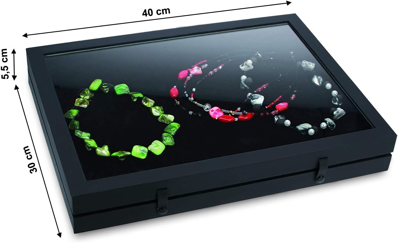 [SENZA TEMPO] Tipica vetrina da collezione dal design elegante e custodia stabile, rivestita con una superficie di lino nero opaco. [RISPARMIO SPAZIALE] Qui puoi riporre le tue bellissime figurine Lego, gioielli o altri oggetti da collezione. [BEN PENSATO] La vetrina è dotata di 2 pratici bottoni a pressione ed è quindi sempre a portata di mano. [Cattura gli occhi] Con la copertura in vero vetro, hai protetto i tuoi preziosi gioielli e sei sempre bello da vedere. [STORE] Visita il nostro negozio e scopri altre offerte.