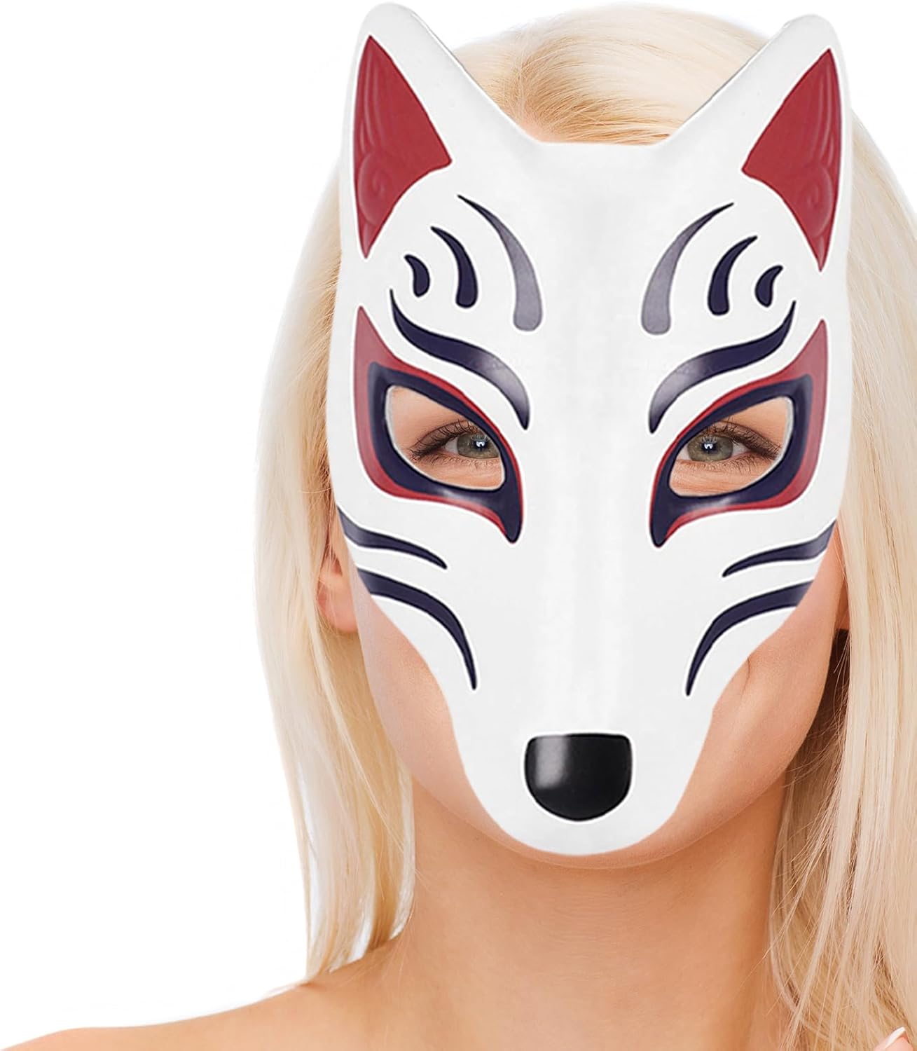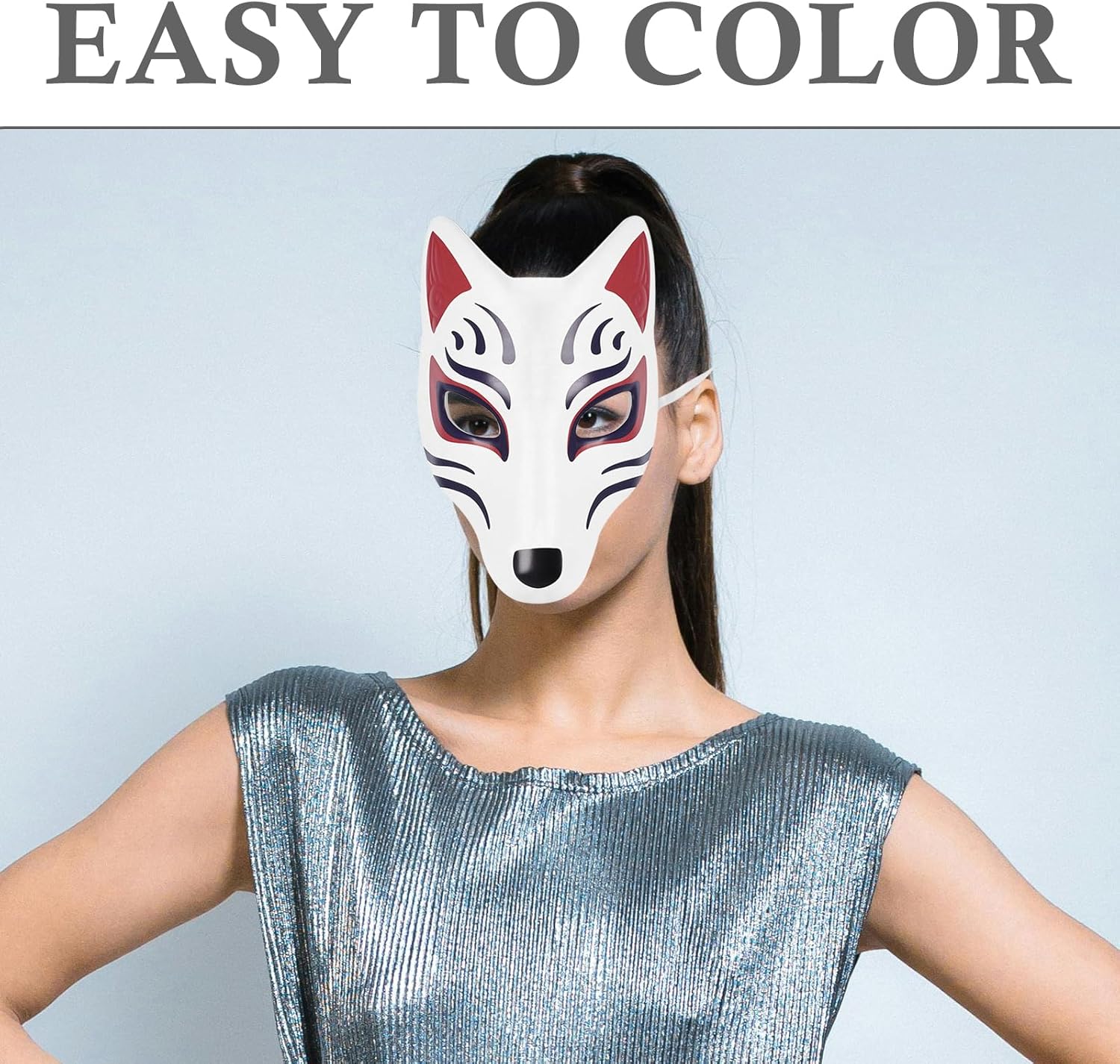 SAFIGLE 2 Maschere Semplici Bianche Maschera di Volpe Pu Maschere per Mascherata Non Verniciata Maschera Artigianale Non Verniciata per Animali Fai da Te per Feste in Maschera Cosplay Accessori per Costumi