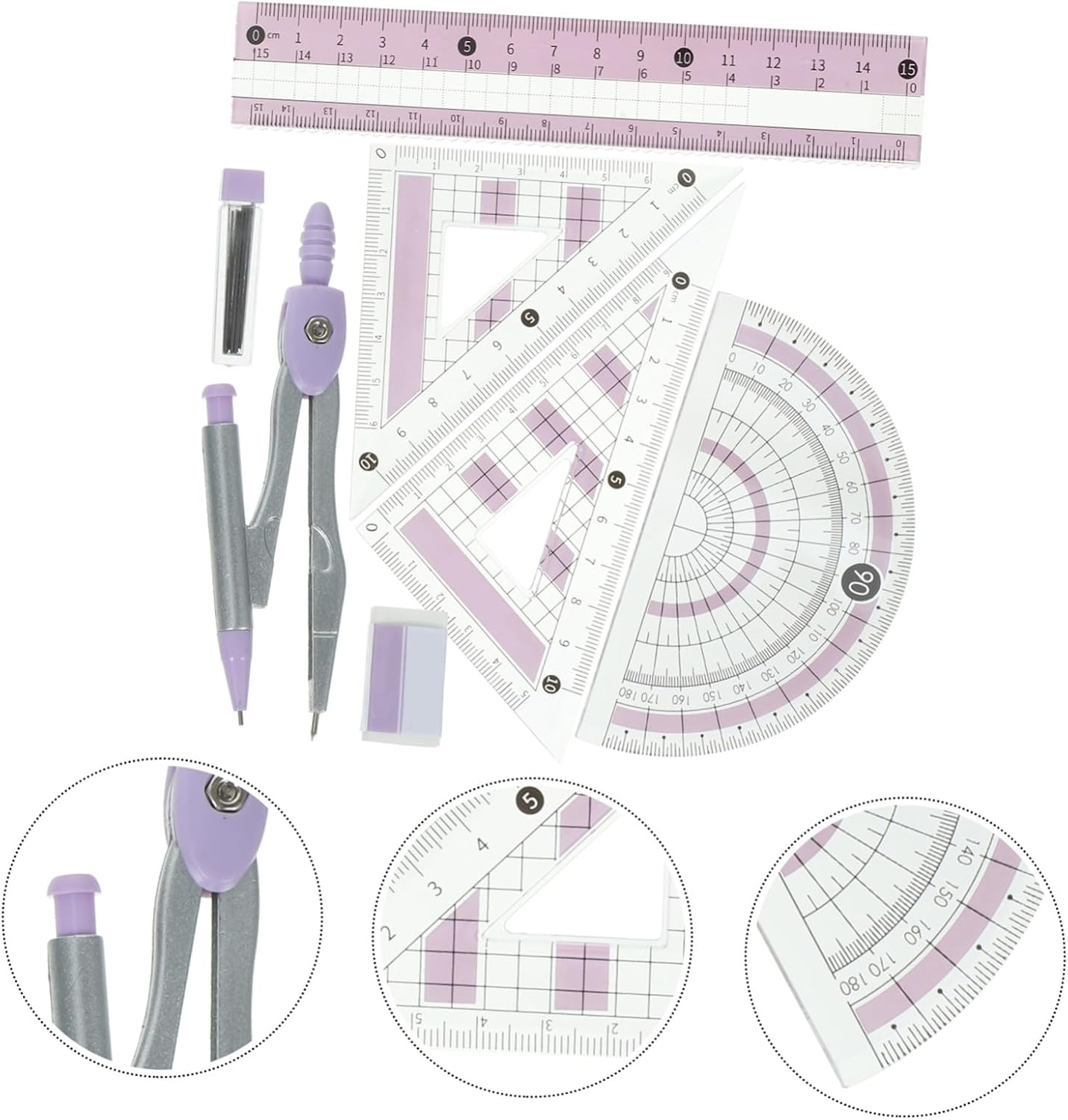 Kit di misurazione per studenti: i numeri sono chiari, facili da identificare e quindi puoi leggerli rapidamente e con grande precisione, righello triangolare per Per : struttura semplice, facile da usare, superficie resistente e liscia, puoi usarla con sicurezza, kit per Righello trasparente: linee morbide e disegni precisi, ti offrirà anche una buona esperienza di utilizzo, righello per studenti Righello da disegno: comodo per misurare, portatile da usare e robusto per studenti, insegnanti e pittori, kit di cancelleria per ufficio Strumenti da disegno per : scala molto chiara, garantisce la precisione, set di strumenti da disegno eccellente e utile per te, compasso da disegno per