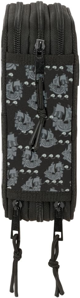 safta One Piece Pirates - Astuccio scuola con 37 utili inclusi, astuccio per bambini, ideale per bambini dai 5 ai 14 anni, comodo e versatile, qualità e resistenza, 12,5 x 5,5 x 19,5 cm, Nero, M,