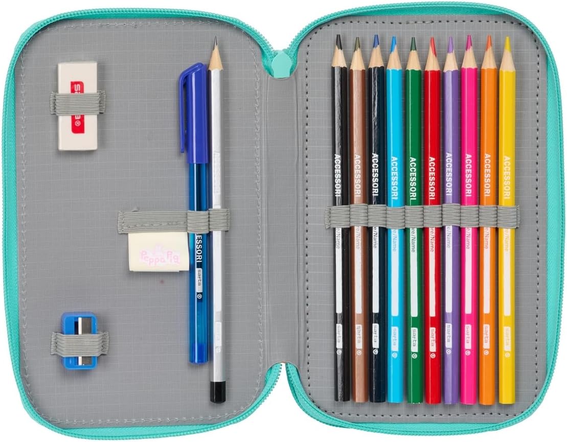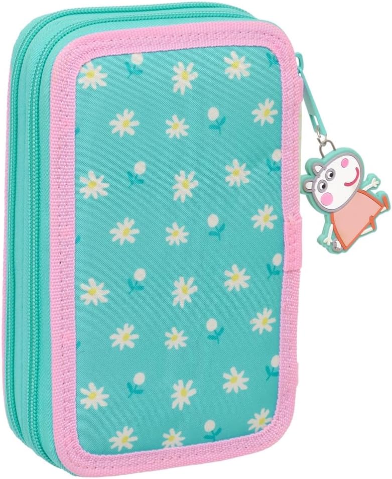safta Peppa Pig Pretty Flowers - Astuccio per scuola per bambini, con 29 utensili inclusi, ideale per bambini dai 5 ai 14 anni, comodo e versatile, qualità e resistenza, 12,5 x 4 x 19,5 cm,