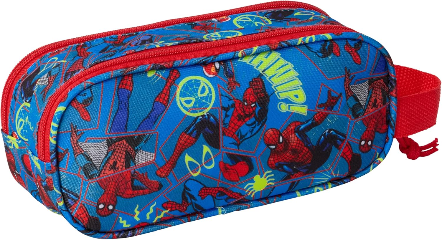 safta SPIDERMAN 3D - Astuccio doppio 3D, astuccio per bambini, ideale per bambini in età scolastica, comodo e versatile, qualità e resistenza, 21 x 6 x 8 cm, blu marino/rosso, M, Casual