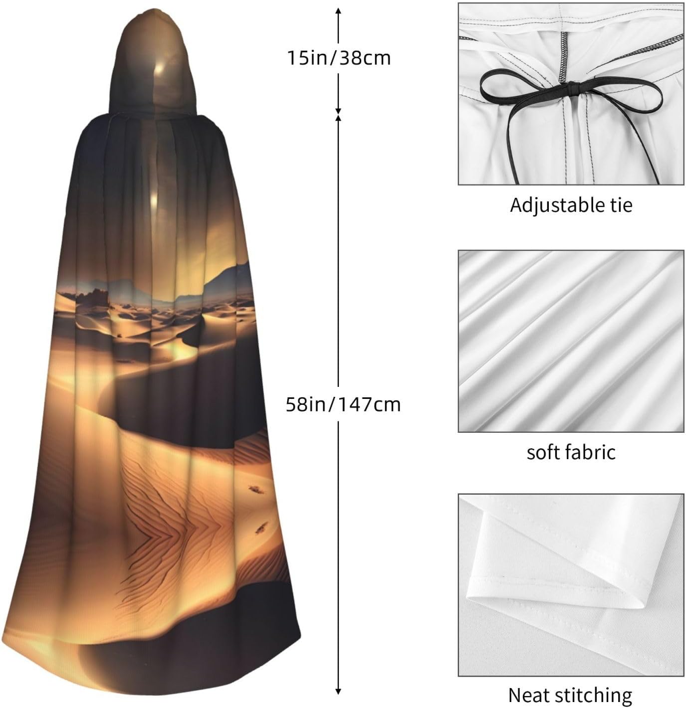 Sahara Desert Hooded Cloakfull Larghezza Materiale di stampa Descrizione 100% fibra di poliestere (poliestere) Prestazioni del prodotto Il mantello con cappuccio oversize è realizzato in senza cravatta, cerniera, comodo mantello con cappuccio con tessuto lungo, resistente e non pruriginoso) Scenari applicabili adatti per Halloween, costumi cosplay, costumi di scena, mascherate, feste a tema, balli, convegni di fumetti, ecc. Può essere utilizzato per feste, carnevale, Halloween, feste in costume, ecc. Istruzioni di lavaggio: lavare a mano in lavatrice, facile da pulire e durevole