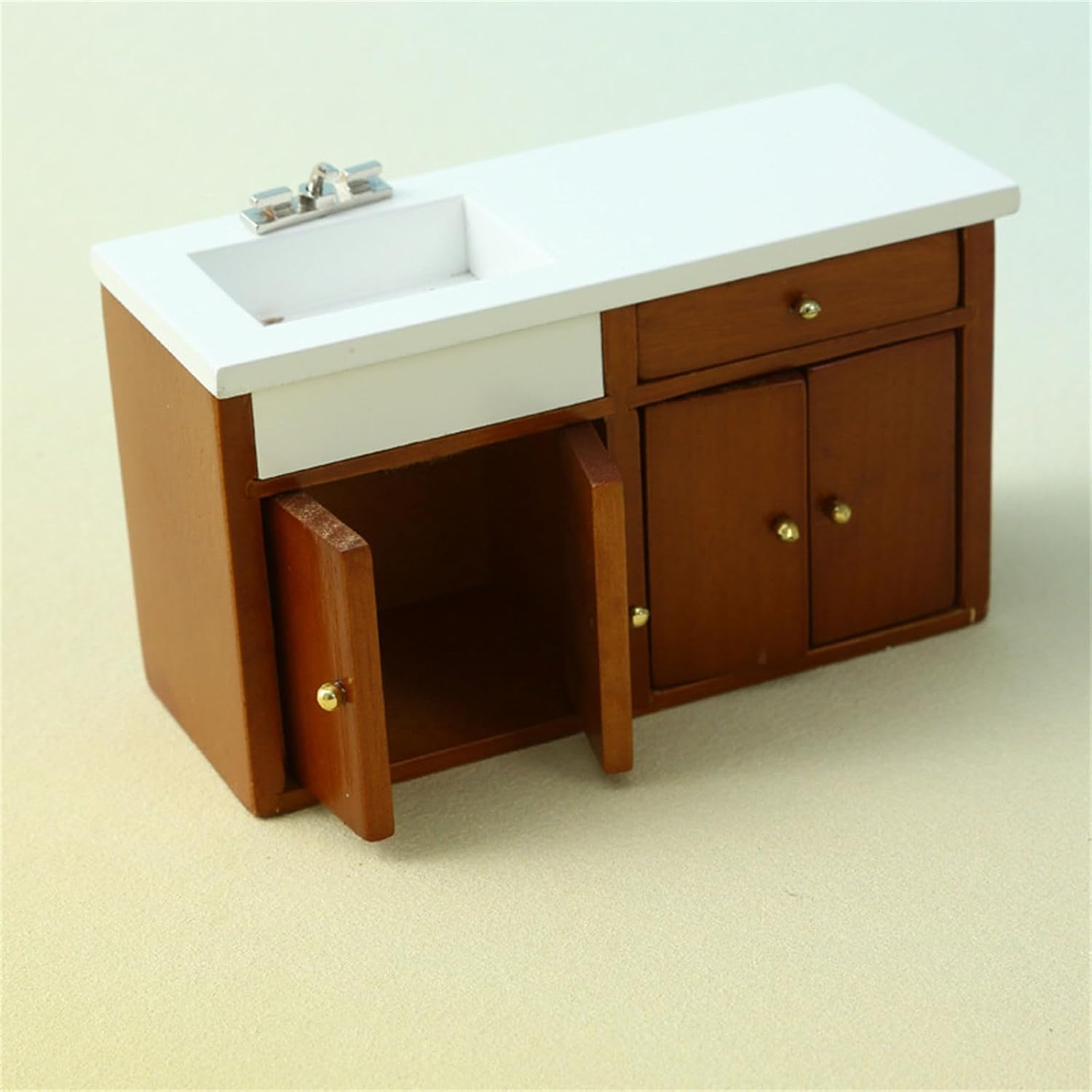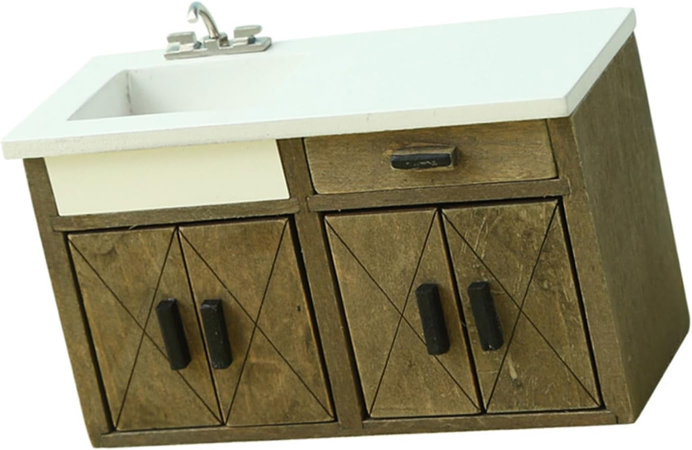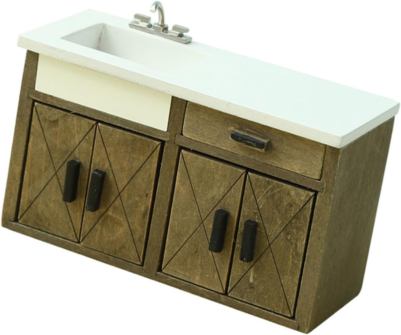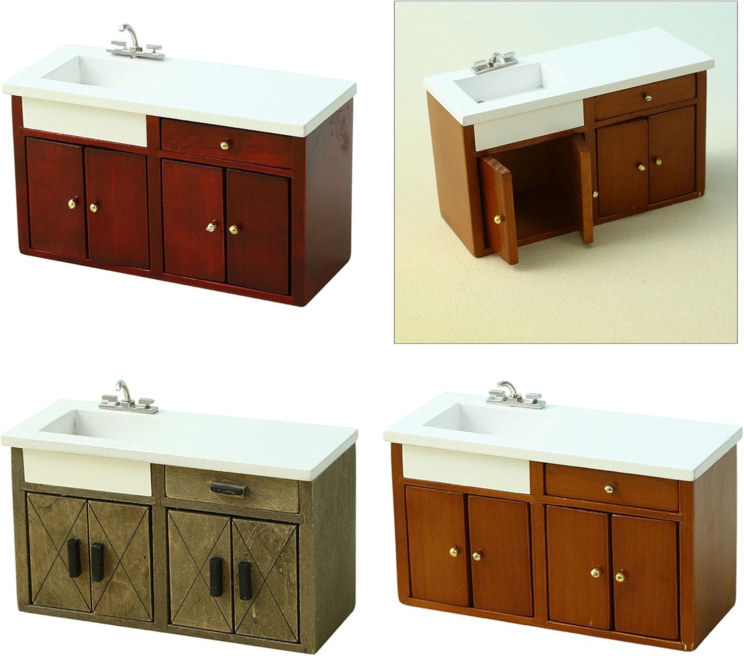 L'eccellente modello di aspetto è molto vicino alla realtà. Ottimi oggetti di scena fotografici Modello elaborato e vintage dell'armadio da cucina, compatto e tridimensionale, alto grado di riduzione, i materiali in legno non sono facili da deformare. Ottima decorazione per la casa delle bambole Materiali in legno. Non si deforma facilmente Include: 1 mobile lavabo (altri accessori non sono inclusi) È molto divertente chi ama i decoratori delle case delle bambole