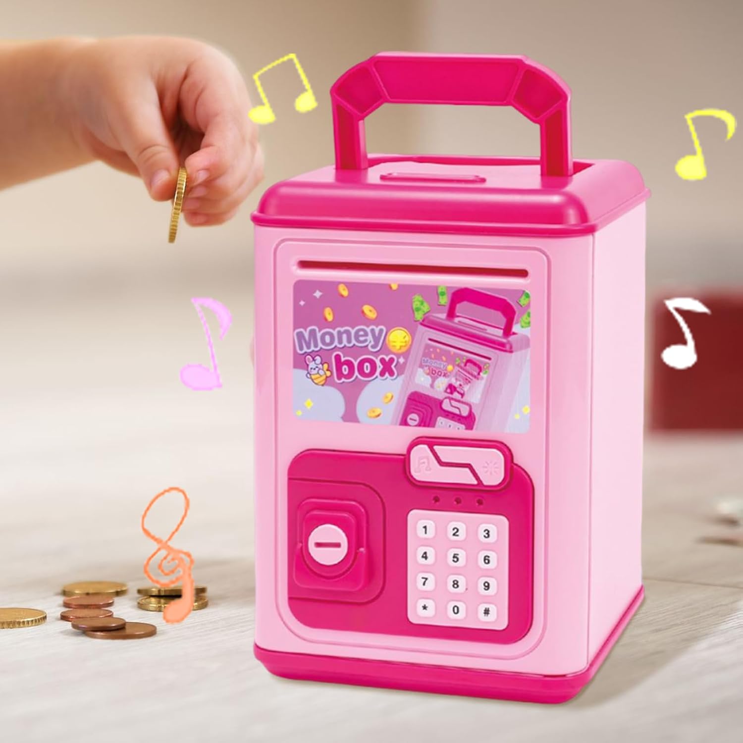 Abitudini di Risparmio: Stimola comportamenti responsabili insegnando l'importanza di risparmiare costantemente, aiutando i bambini a sviluppare disciplina finanziaria e comprensione pratica della gestione del denaro sin dalla giovane età Regalo : Salvadanaio ideale per Natale, compleanni e celebrazioni, unisce utilità e divertimento in una confezione accattivante. gioiosa per bambini di tutte le età, pratico e memorabile per occasioni speciali. Resistenza Provata: Utilizza ABS ecologico ad alta resistenza per eccezionale durata, stabilità strutturale prolungata e performance affidabile contro usura e urti durante i giochi quotidiani Operazione comoda: Include un ingresso banconote a sensore che arrotola automaticamente le banconote mentre conserva insieme monete e banconote, assicurando versamenti facili e gestione del denaro organizzata Divertimento Integrato: Affascina i piccoli utenti con melodie interattive attivate dal deposito delle monete, spingendoli a risparmiare mentre godi un processo ludico e coinvolgente.