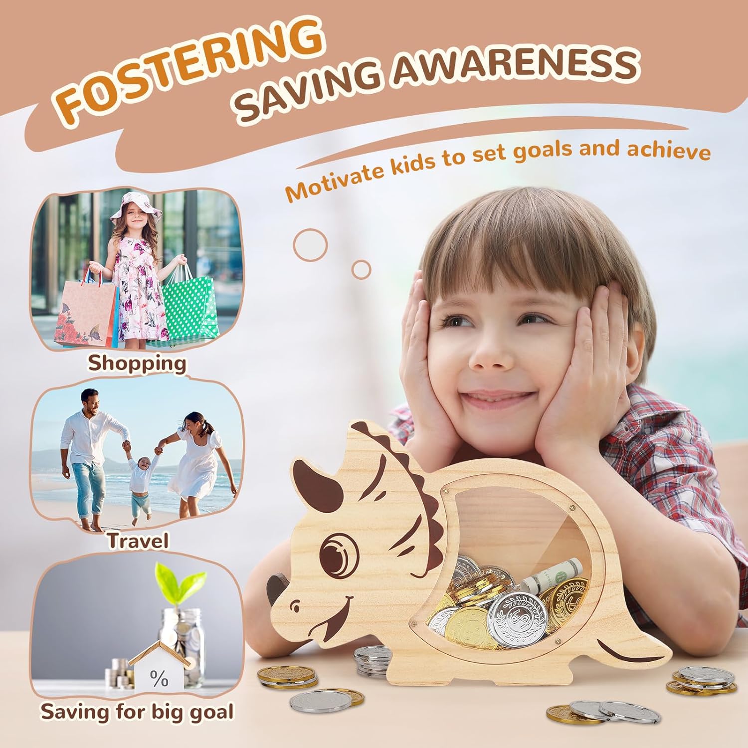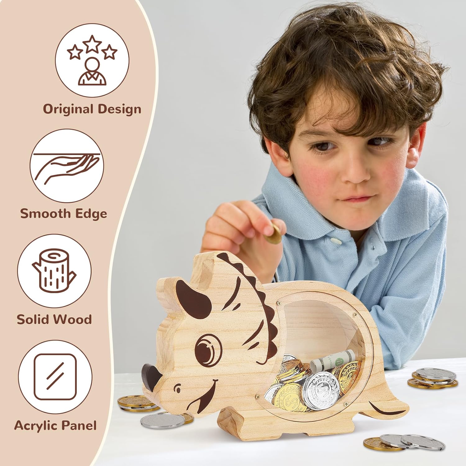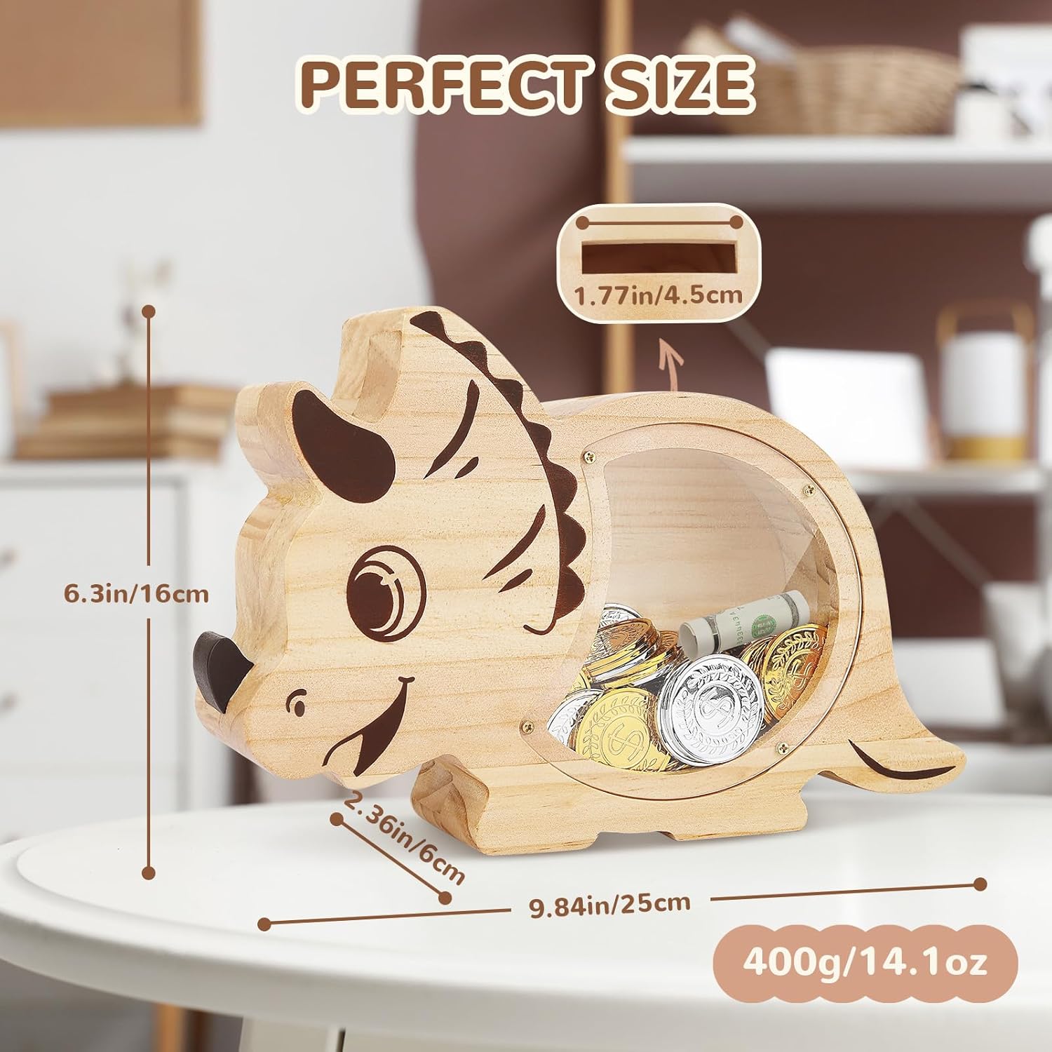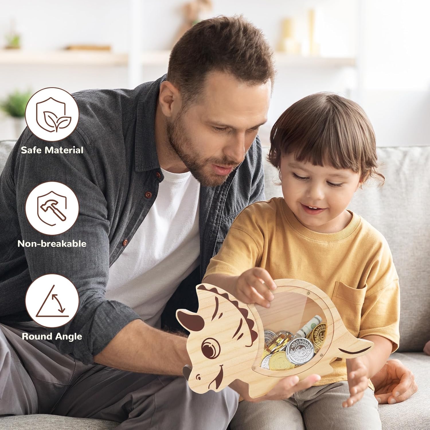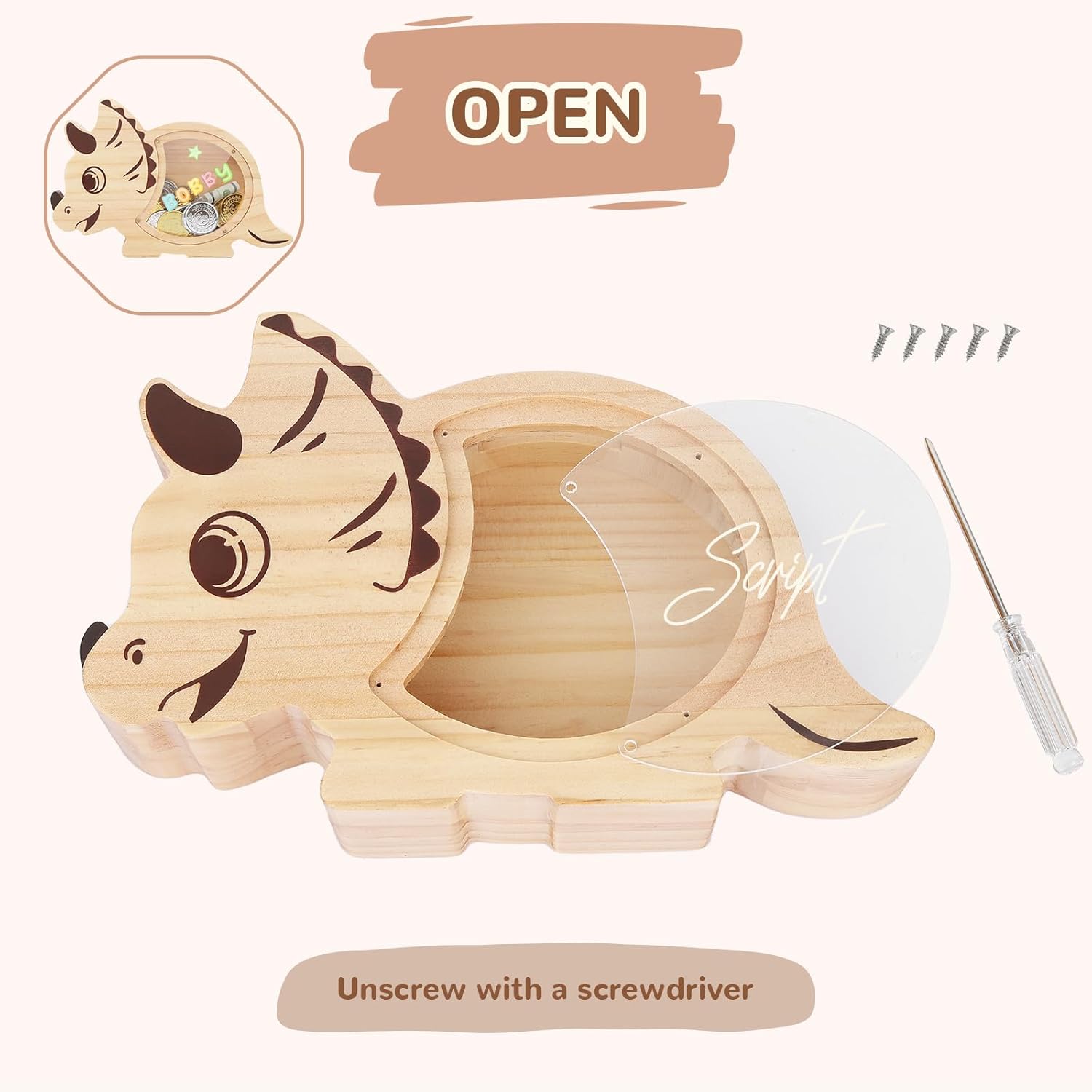 【DESIGN IN LEGNO SOLIDO E ANGOLI ROTONDI】- Il salvadanaio è realizzato in legno naturale, robusto e durevole, non facile da rompere, la forma complessiva è con angoli arrotondati, bordi lisci, sicuri e rispettosi dell'ambiente. 【FORMA CUTE】- Il salvadanaio bambini è progettato a forma di simpatici animali o veicoli ingegneristici, dalla forma semplice e generosa, non solo può essere utilizzato per depositare denaro, ma anche come decorazione. 【VISUALIZZAZIONE】- La lastra acrilica è trasparente e chiara e l'interno è ben visibile, consentendo ai bambini di sperimentare il processo di accumulo di piccole somme e di acquisire un senso di realizzazione. 【DESIGN REMOVIBILE】- Il piatto in acrilico è fissato alla tavola di legno con piccole viti. Se si desidera estrarre il deposito, è sufficiente svitare le viti per estrarlo. 【DECORAZIONE PERSONALIZZATA】- Forniamo anche 1 foglio di adesivi alfabetici colorati e ricariche bianche, per scrivere il proprio nome o messaggio sul salvadanaio per bambini.