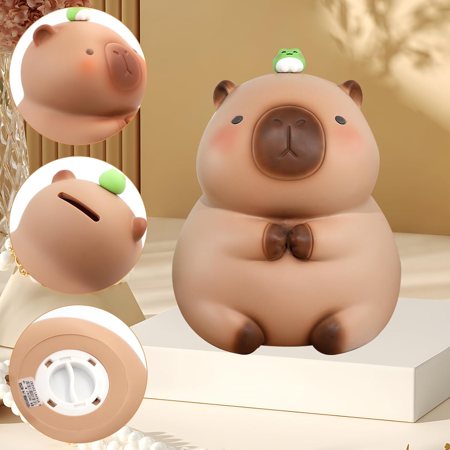 【Stile carino】 Adorabile salvadanaio Capibara, questo è il miglior regalo divertente per coloro a cui piace il tema Kawaii. La forma è vivida e bella, unica e interessante, e la lavorazione è squisita e piacevole. 【MATERIALE】 Salvadanaio Capibara realizzato in vinile di alta qualità + colla a goccia, non tossico e sicuro, non facile da rompere, robusto, durevole, pratico e bello, superficie liscia e strutturata, nessun odore, può essere utilizzato a lungo. 【DIMENSIONE】 Dimensioni: 16 x 12 x 12 cm/6,3*4,7*4,7 pollici, Peso: 200 g. La fessura per le monete del salvadanaio si trova dietro la parte posteriore del Capybara e nella parte inferiore è presente un moschettone in plastica rimovibile. 【Regali】 Confezione regalo squisita, adatta a grandi e piccini. Questo simpatico salvadanaio capibara sarà una buona scelta per salvare la prima moneta del bambino; Non importa il Capodanno, il compleanno o il Natale, le vacanze o la vita di tutti i giorni, questo è un regalo salvadanaio bello e pratico. 【Creativo】 Con questo capibara carino e delicato, i bambini possono essere incoraggiati a risparmiare, lasciando che i bambini si divertano senza fine. Non è solo un salvadanaio, ma può anche essere usato come souvenir, peluche e bella decorazione. Ispezioniamo ogni salvadanaio individualmente per garantire che ogni dettaglio e lavorazione del salvadanaio siano impeccabili. Puoi acquistare con fiducia!