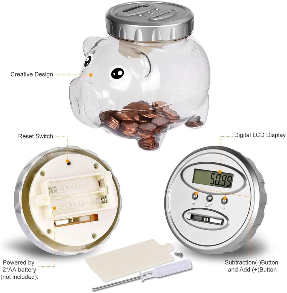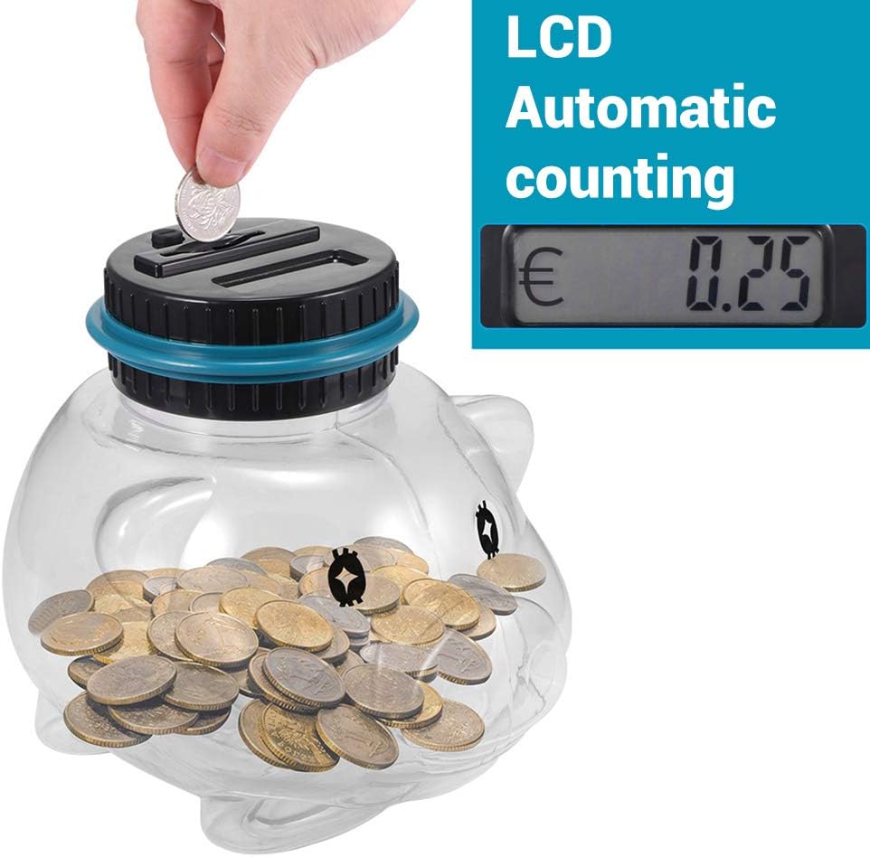 Qualità premium: realizzati in ABS, più difficili da rompere rispetto a questi salvadanai in vetro/ceramica. Materiale ecologico, sicuro da usare. Durevole e pratico. Contenitore per monete digitali: questo contenitore trasparente ha uno schermo LCD su un coperchio che ti consente di contare le monete mentre scorrono attraverso la fessura. Conta accuratamente i tuoi soldi e mostra l'importo totale di ciascun deposito. Risparmia denaro: ora hai l'opportunità di salvare le monete inutilizzate e conservarle in modo divertente. Per quanto incredibile possa sembrare, con questo originale salvadanaio non butterai i tuoi soldi nel WC. Grande capacità: grande capacità fino a 1,8 litri e può contenere circa 800-1000 monete. Il design trasparente ti consente di vedere quanto spazio ti rimane. Regali perfetti: questo bellissimo salvadanaio è l'ideale come regalo per i tuoi bambini. Aiuta i tuoi figli a sviluppare una buona abitudine di risparmiare denaro. E i tuoi figli lo adoreranno sicuramente. Compleanno ideale, Natale, festival.