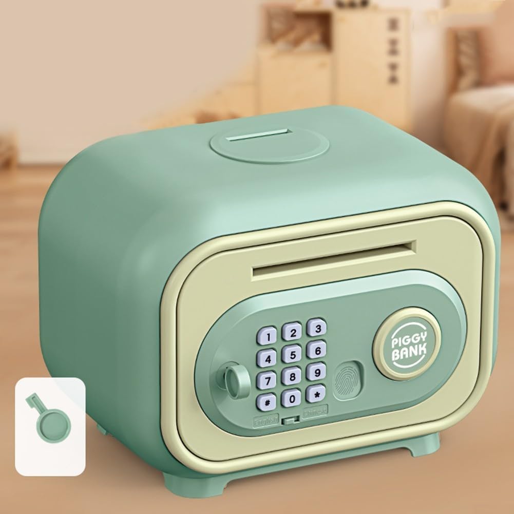 Protezione con password: dotato di blocco password avanzato con tecnologia di verifica delle impronte digitali per la massima sicurezza; la password predefinita è 0000 e la porta si apre automaticamente dopo la corretta immissione della password e l'autenticazione delle impronte digitali, mantenendo i tuoi risparmi completamente al sicuro da accessi non autorizzati. Grande capacità: il design spazioso da 19,5 x 17 x 13 cm ospita monete e banconote con ampio spazio per risparmiare crescenti; incoraggia abitudini di risparmio costanti eliminando i vincoli di spazio, rendendolo adatto a bambini e adulti che costruiscono le loro riserve finanziarie. Robusta struttura in ABS: realizzato in robusto materiale plastico ABS che resiste alla manipolazione quotidiana e alle cadute accidentali; costruito per durare attraverso l'uso regolare pur mantenendo l'integrità, fornendo una protezione affidabile per le tue esigenze di conservazione dei soldi. Strumento finanziario educativo: funge da strumento di apprendimento coinvolgente che insegna ai bambini principi fondamentali di gestione del denaro e l'importanza di risparmiare fin dalla tenera età; combina funzionalità di sicurezza con valore educativo per sviluppare abitudini finanziarie responsabili. Funzioni interattive e requisiti di alimentazione: funziona con 3 batterie AA (non ricaricabili) con commutazione in lingua inglese/cinese integrata; include una divertente riproduzione di filastrocche quando la porta è chiusa, oltre a promemoria di reset automatico della password quando la batteria si scarica.