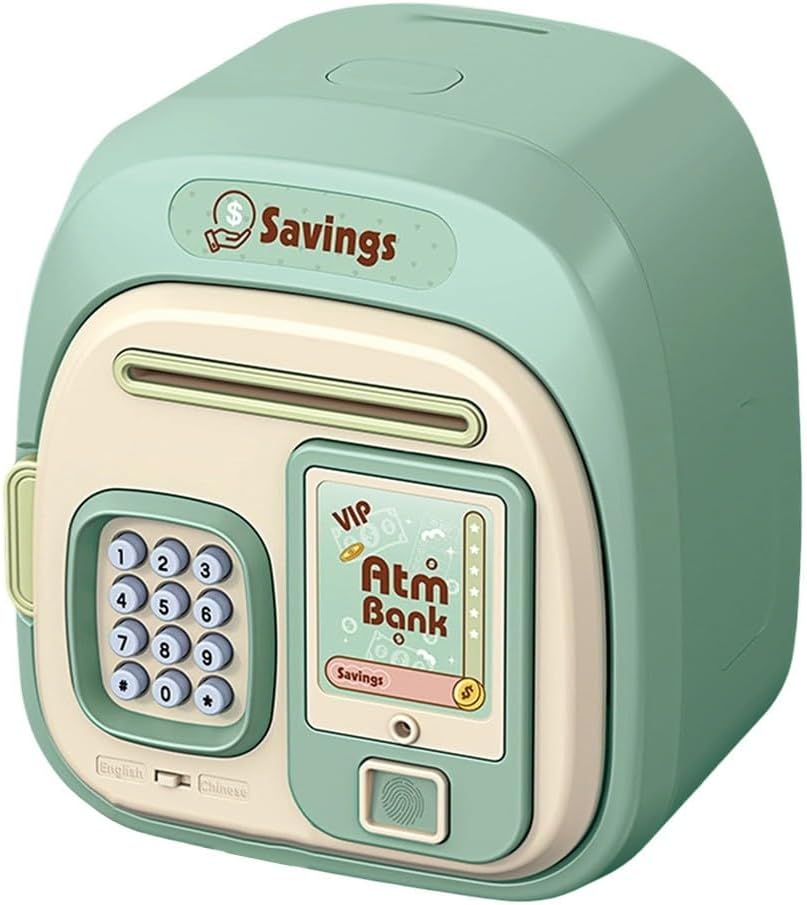 Sicurezza con password: prova una protezione migliorata con il nostro salvadanaio per sblocco delle impronte digitali dotato di un blocco password impostato su 0000 predefinito per un accesso sicuro e l'apertura automatica della porta dopo la verifica riuscita Struttura ABS di lunga durata: realizzata in robusta plastica ABS, questa cassaforte resiste a cadute e maneggevolezza accidentale rendendolo una scelta affidabile per l'uso quotidiano incoraggiando la responsabilità finanziaria attraverso il suo design robusto Spaziosa capacità di archiviazione: il design di grande capacità misura 19,5 x 17 x 13 cm completamente memorizza e banconote aiutando gli utenti a sviluppare abitudini di risparmio coerenti senza preoccuparsi dei limiti di spazio nei colori rosa, verde o marrone Strumento finanziario educativo: questo salvadanaio automatico funge da strumento educativo coinvolgente per insegnare ai bambini l'importanza della gestione del denaro fin dalla tenera età mentre funziona sia come archiviazione sicura che come ornamento decorativo Funzionamento a batteria: richiede 3 batterie AA non ricaricabili da 1,5 V con tasti di commutazione linguistica incorporati tra le modalità cinese e inglese, più funzione di riproduzione filastrocche quando si premono i tasti * e # mentre è chiuso