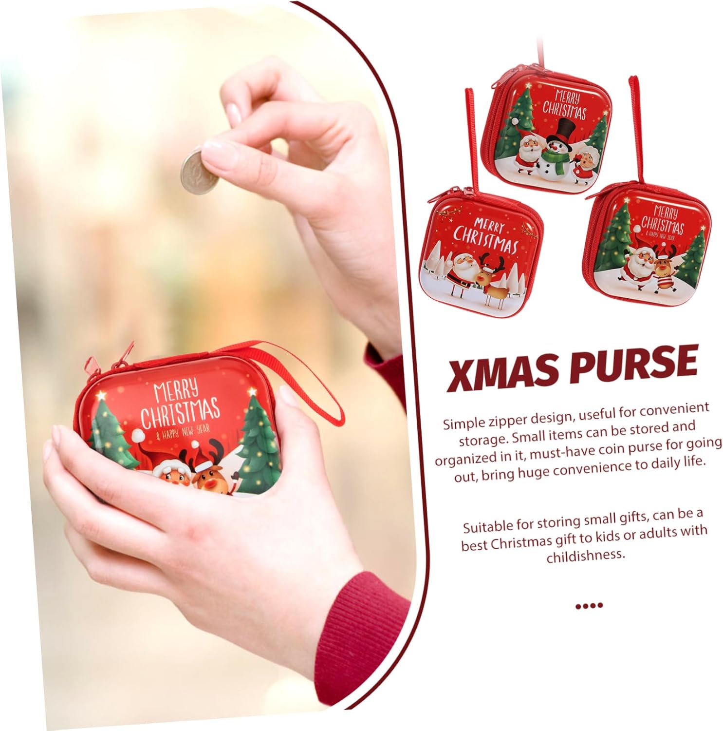 Custodia per cuffie natalizie - Realizzata in materiale di alta qualità, riutilizzabile e indeformabile. Ornamenti per portamonete appesi - Portamonete natalizii realizzati in materiale di alta qualità, riutilizzabili, durevoli e indeformabili. Mini: realizzato in materiale di alta qualità, riutilizzabile, durevole e indeformabile. PER I VIAGGIATORI - Portafogli natalizi, adorabile portamonete o portamonete o contenitore per gioielli per anelli, orecchini, collane, ecc. Questa piccola scatola si adatta alla borsa o allo zaino. Pochette natalizia: adorabile portamonete o portamonete o contenitore per gioielli per anelli, orecchini, collane, ecc. Questa piccola scatola si adatta alla borsa o allo zaino.