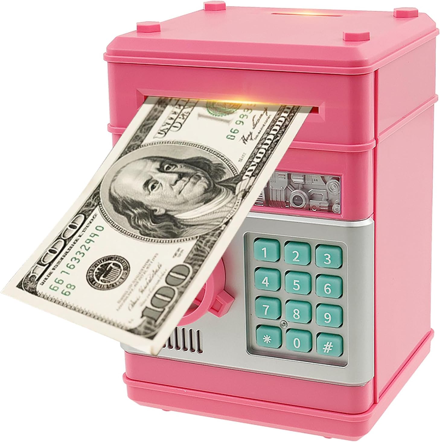 [Mini ATM] la carta è rivolta all'ingresso del denaro, può assorbire automaticamente denaro come un mini ATM. Un salvadanaio per bambini è parte del giocattolo, parte 'ATM, parte della decorazione della stanza del bambino! Questo è un modo divertente per insegnare ai tuoi bambini l'importanza del risparmio e della responsabilità finanziaria. [Protezione tramite password] protezioni tramite password elettroniche, se si preme la password sbagliata, verrà emessa. Basta rimuovere la batteria per più di 30 minuti e la password verrà reimpostata. Questa cassa di risparmio ATM è la migliore banca didattica per bambini! [Il giocattolo per bambini] Questo è un salvadanaio elettronico premium per risparmiare denaro e monete. È scelta migliore per i regali compleanno e per feste dei bambini, come Natale e Capodanno. Offre un modo positivo per i bambini imparare virtù risparmio denaro e sviluppare buone abitudini gestione finanziaria. I bambini possono risparmiare resto per i loro piani, come l'acquisto regali per i loro genitori, amici e familiari. Davvero un eccellente assistente finanziario per bambini! Il salvadanaio multiuso può depositare denaro e monete. Non solo un salvadanaio, ma una cassaforte con password. I salvadanai esistono da così tanto tempo: non c'è modo più divertente per risparmiare denaro! [Sicurezza e servizio] Il salvadanaio è realizzato con materiali ecocompatibili e simula la di sicurezza. (Nota: il salvadanaio richiede 3 batterie AA, ma non sono incluse)