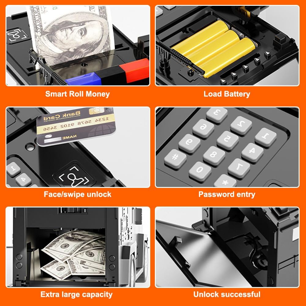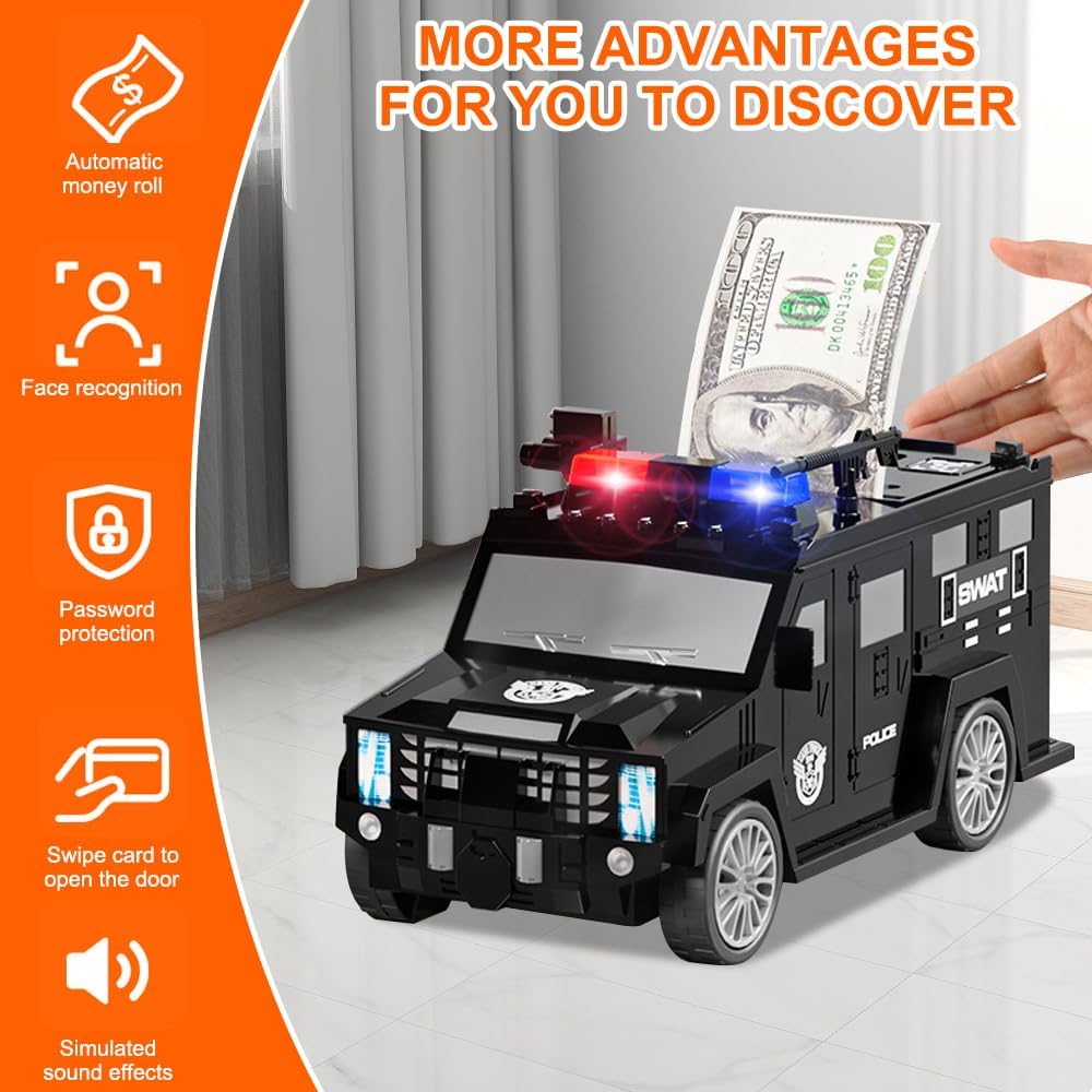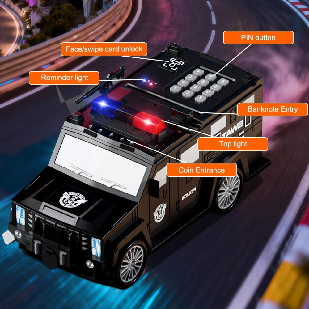 🚔【Un'auto giocattolo unica e un salvadanaio in uno】Il nostro salvadanaio per bambini Carrier di fondo combina le funzioni di un'auto con un innovativo salvadanaio elettronico per bambini. I bambini possono far scorrere il Salvadanaio Bambino per inerzia spingendolo leggermente. Gli imponenti effetti luminosi della macchina della polizia e il suo design robusto offrono anche molto spazio per molte monete e banconote, incoraggiando così le abitudini di risparmio tra i bambini. 💰【Cassetto automatico per contanti e riconoscimento facciale】La banconota viene estratta automaticamente quando viene posizionata all'ingresso, rendendo il risparmio ancora più emozionante. Il nostro salvadanaio elettronico per bambini offre una comoda funzione di sblocco della carta oltre allo sblocco con password. L'innovativa simulazione del riconoscimento facciale aggiunge ulteriore divertimento e insegna ai bambini l'importanza di tenere al sicuro i propri oggetti di valore. ✨【Effetti sonori interattivi】Ogni utilizzo del salvadanaio elettronico per bambini è accompagnato da effetti sonori appropriati, aumentando il divertimento e l'interattività. Il cassaforte per bambini con codice simula i suoni e le luci di una vera auto della polizia, rendendo il risparmio un'esperienza divertente ed educativa. I bambini saranno affascinati dall'interattività e dal divertimento di ogni processo di risparmio. 🐣【Materiali di alta qualità】Salvadanaio elettronico per bambini è realizzato in plastica ABS di alta qualità, non tossico, inodore e non facile da rompere. Un'interessante cassaforte adatta ai bambini. Aiuta, un'interessante cassaforte su misura per i bambini. 🎁【Regalo ideale per bambini】I bambini adoreranno ricevere salvadanaio elettronico. È divertente, educativo e insegna l'importanza del risparmio. Salvadanaio elettronico per bambini è il miglior regalo per il compleanno dei bambini, regalo di Natale, regalo di Capodanno, premio, ricompensa o qualsiasi altro regalo di Natale.