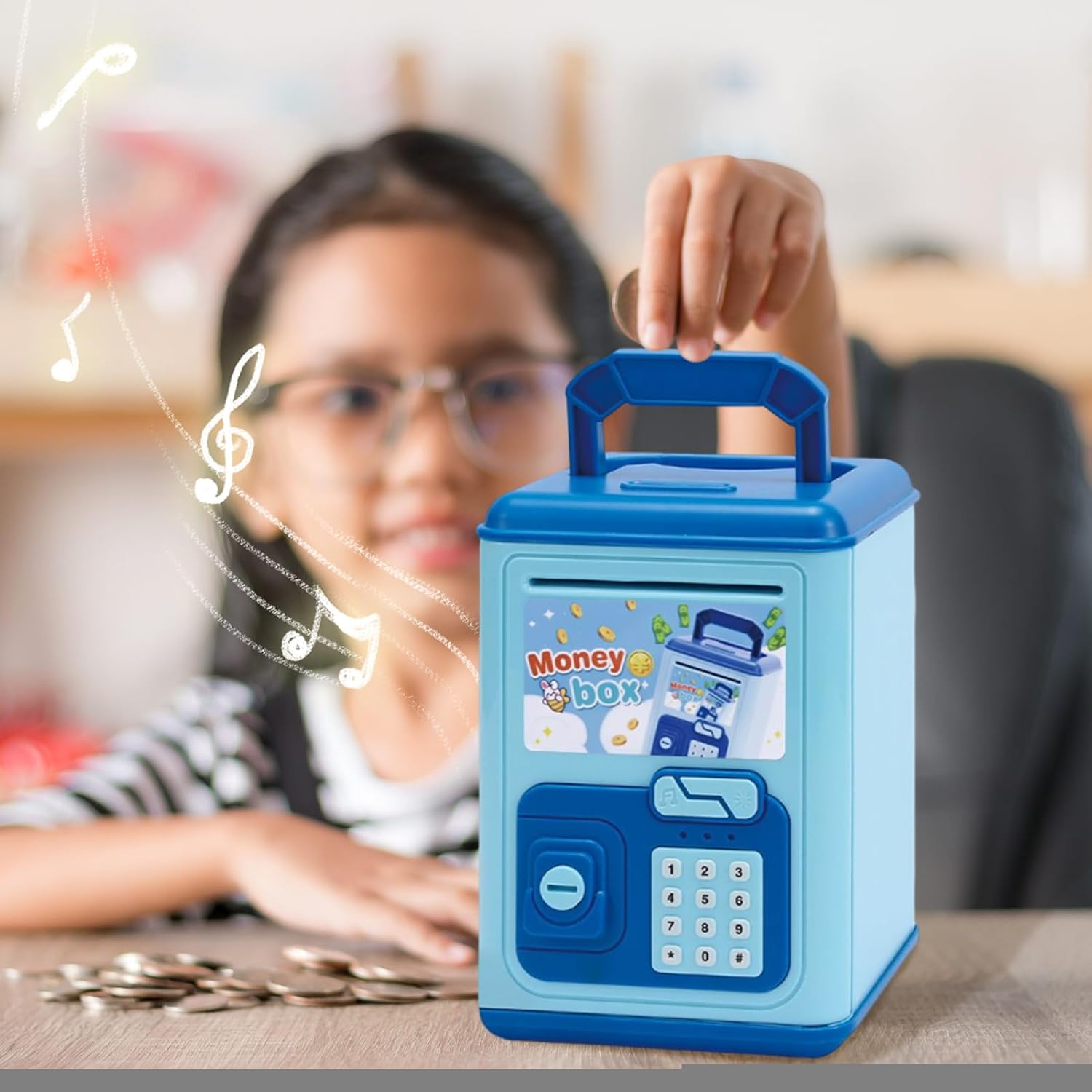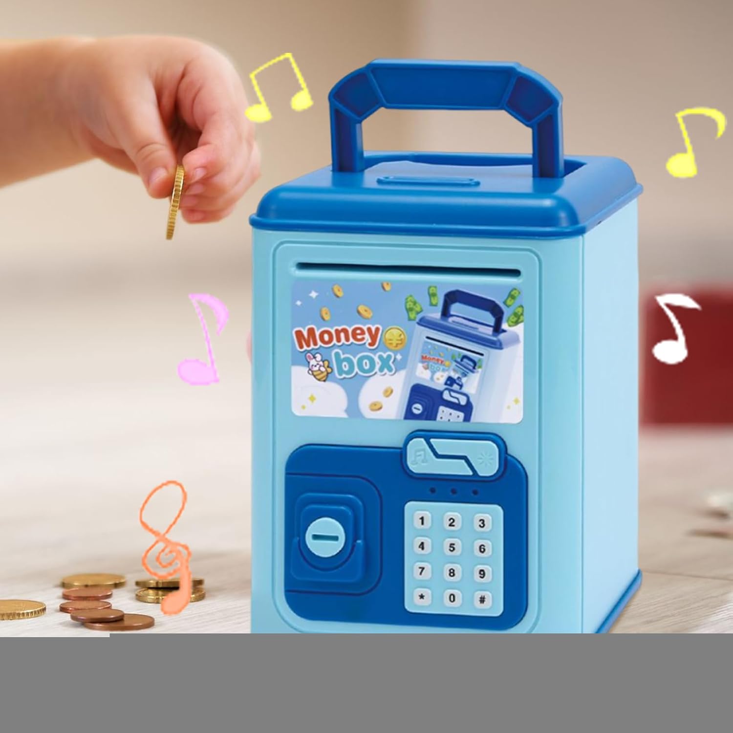 Comodo da usare: l'alimentatore attivato dal sensore rotola le banconote in modo indipendente, consentendo di archiviare facilmente e organizzare le monete e la carta moneta in un unico sistema. Parsimonia & Formare la disciplina: Rafforza la responsabilità finanziaria attraverso il risparmio giocoso. Sviluppa competenze sistematiche di gestione del denaro e promuove una gestione finanziaria efficace nei bambini. Idea regalo perfetta: come sorpresa ideale per Natale, compleanni o celebrazioni, questo salvadanaio per bambini combina una funzione pratica con un gioco divertente. Crea momenti indimenticabili ed è adatto a ragazze e di tutte le età. Melodie interattive: riproduce melodie allegre ad ogni inserimento delle monete e motiva i bambini a risparmiare giocando attraverso un'esperienza musicale interattiva che combina divertimento con obiettivi di apprendimento Uso a lungo termine: il materiale ABS ad alta resistenza consente anni di utilizzo grazie alla stabilità della forma durevole, eccellente resistenza all'usura e agli urti. Ideale come salvadanaio per bambini.