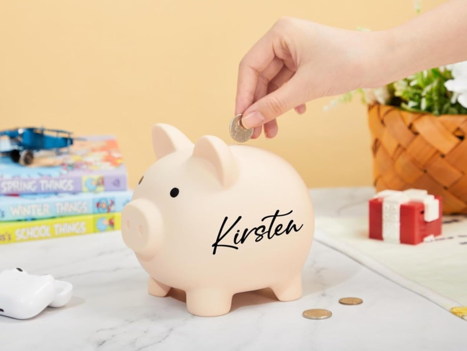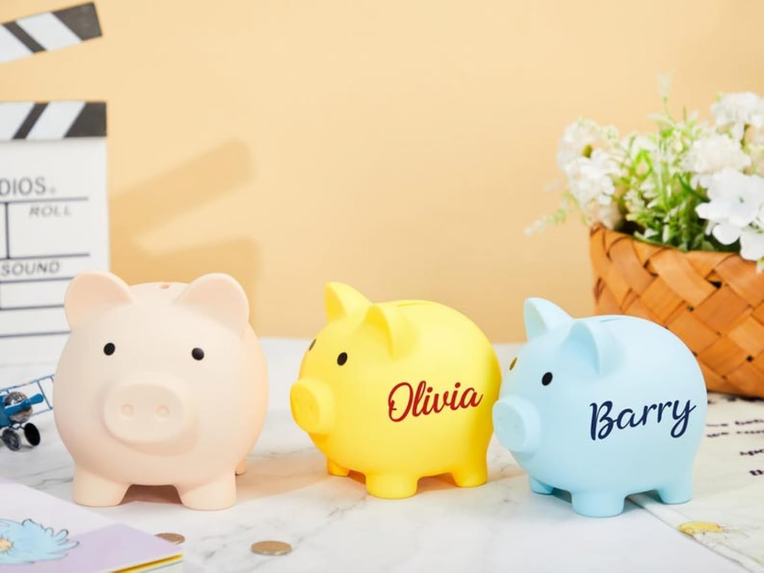 1. Questo salvadanaio personalizzato a forma di maiale è perfetto per bambini di 2, 3, 4, 5, 6 anni ed è un ottimo regalo di compleanno, regalo di calza e regalo per regali. 2. Il salvadanaio è un ottimo salvadanaio per i più piccoli, e i bambini possono iniziare il processo di risparmio aggiungendo denaro a questo adorabile salvadanaio. 3. Questo simpatico salvadanaio è realizzato in materiale plastico, così forte che non causerà alcun danno dopo più gocce. Il fondo del salvadanaio ha una manopola in plastica integrata, che rende facile per i bambini tenere o prelevare denaro in modo sicuro. 4. Salvadanaio facile per bambini: questo salvadanaio ben progettato ha una manopola in plastica integrata nella parte inferiore, facile per i bambini per tenere i soldi al sicuro o prendere i soldi fuori. Dimensioni: S-10 x 8 x 9,2 cm M-13 x 10 x 11,5 cm L-15 x 12 x 13,5 cm. Nota: il nome è inciso al laser, il colore del nome dipende dal colore del materiale.