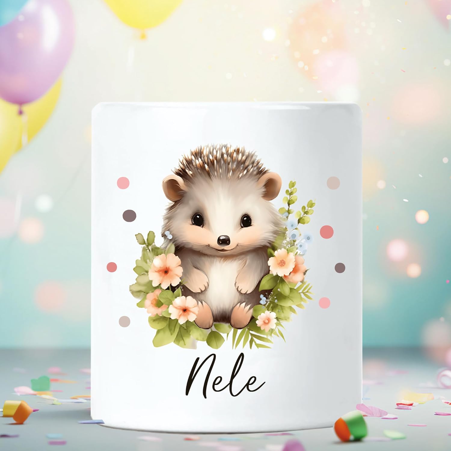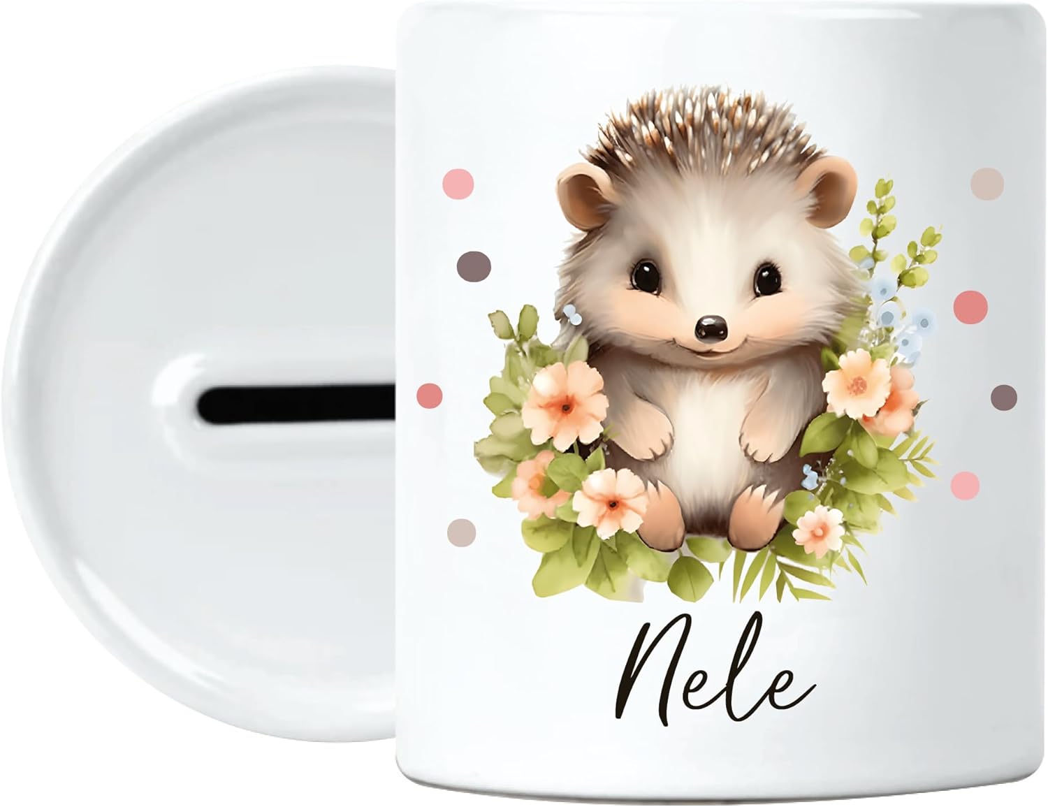 Personalizzazione: Questo salvadanaio in ceramica personalizzato può essere personalizzato con il nome del bambino, ideale per ragazzi e ragazze. Un regalo unico e personalizzato, perfetto come regalo in denaro per varie occasioni. Ceramica di alta qualità: il nostro salvadanaio è realizzato in ceramica robusta e durevole. Con un peso di ca. 380 g, offre spazio sicuro per monete e banconote. Perfetto per l'uso quotidiano e incoraggiare le abitudini di risparmio nei bambini. Pratica chiusura in gomma: dotato di una sicura chiusura in gomma nella parte inferiore, il salvadanaio è adatto ai bambini e facile da usare. La chiusura consente una facile apertura e chiusura, ideale per riporre in sicurezza i risparmi. Design accattivante: il salvadanaio nel classico bianco è decorativo e si adatta perfettamente alla cameretta di ogni bambino. Con un diametro di 8 cm e un'altezza di 9,5 cm, è compatto ed elegante. Una fantastica aggiunta alla decorazione della cameretta dei bambini e da portare in viaggio. IDEA REGALO PERFETTA: questo salvadanaio personalizzato promuove l'alfabetizzazione finanziaria e la responsabilità nei bambini. Ideale per varie occasioni come Natale, Cresima o inizio scuola. Un grande regalo in denaro per i giovani risparmiatori.