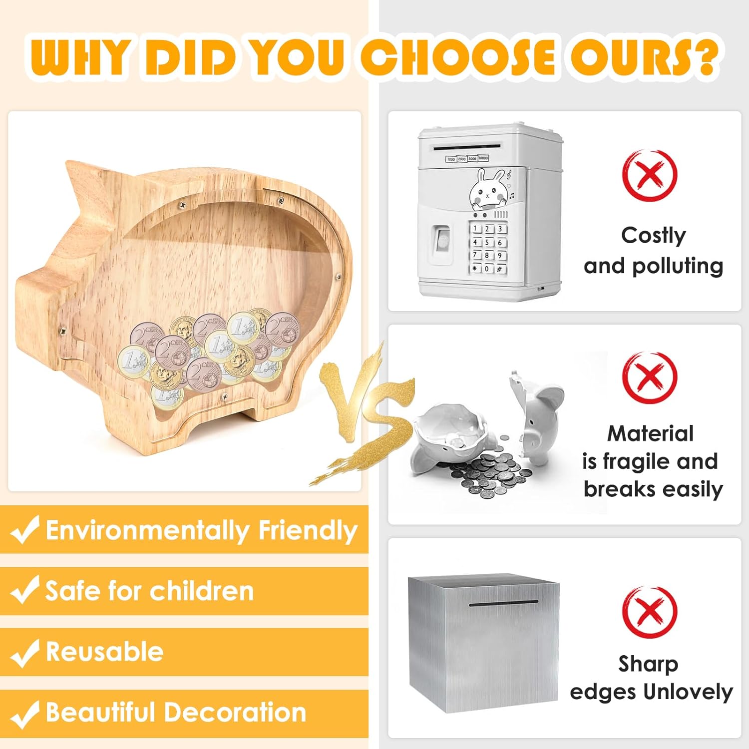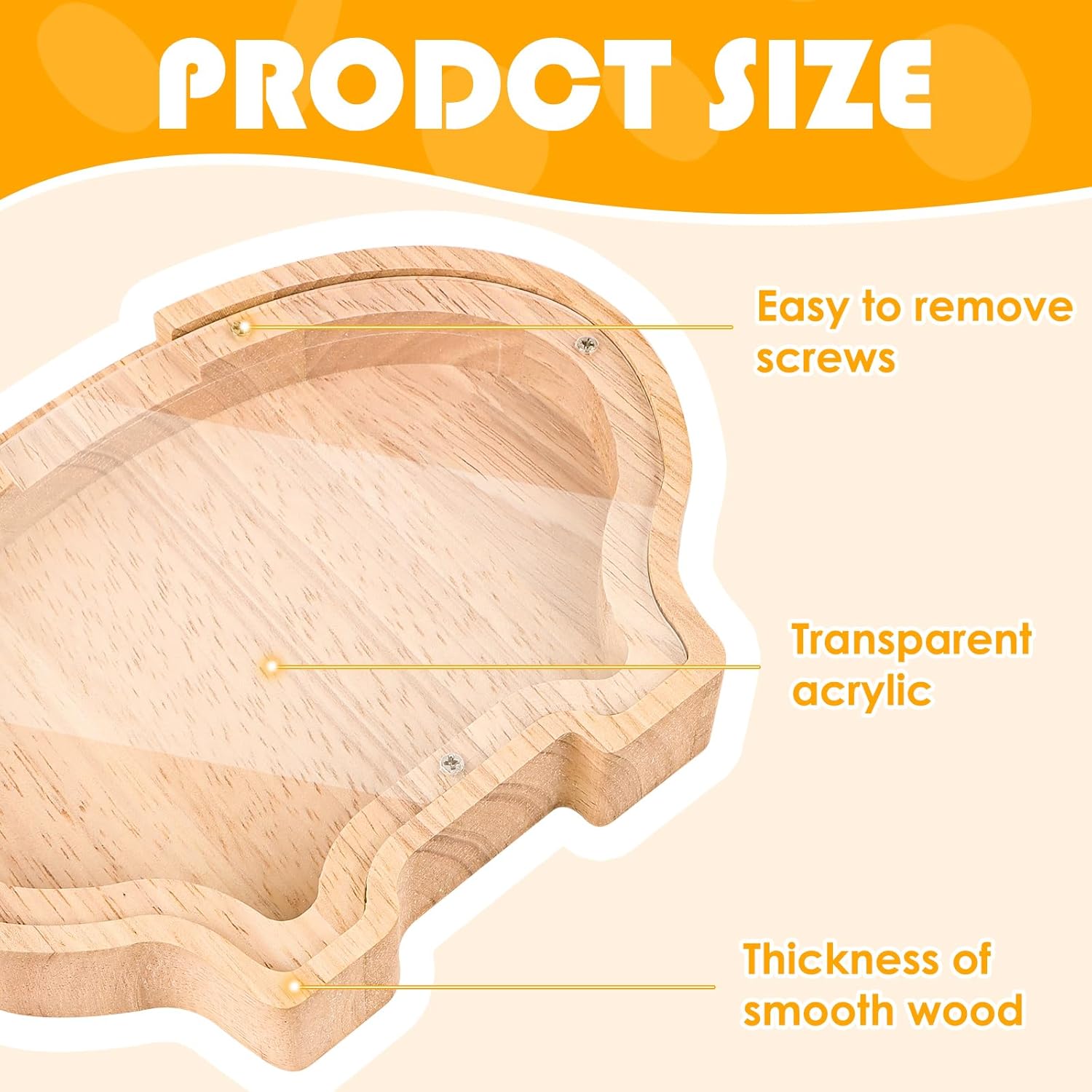 【Ispirazione al design】 La combinazione di scultura di animali e salvadanaio può decorare la tua stanza o essere utilizzata come salvadanaio per raccogliere monete e contanti. Questo è anche il regalo perfetto per i tuoi figli per insegnare loro la gestione del denaro. 【Materiale Premium】 Il corpo principale è realizzato in materiale di legno con finestre acriliche trasparenti. È completamente realizzato a mano e mantiene il colore originale del materiale in legno, è sicuro, inodore, resistente e durevole. 【Regalo perfetto】 Questo salvadanaio in legno è un ottimo regalo per ragazzi e ragazze di tutte le età. Questo salvadanaio in legno è il regalo perfetto per bambini e adulti in occasione di compleanni, baby shower, San Valentino, matrimoni o altri regali. Facile da usare: abbiamo un'apertura intima per ogni salvadanaio, così puoi facilmente inserire o prelevare denaro/monete/contanti. Il design ad angolo liscio ti consente di usarlo meglio senza farti male a qualsiasi età. 【Decorazione della stanza】 Questo salvadanaio in legno per animali non è solo uno strumento di risparmio, ma anche una bellissima decorazione per il tuo soggiorno e la tua stanza. Può rendere la tua stanza più vivace, calda e unica. Può anche essere un regalo perfetto per i bambini che amano gli animali.