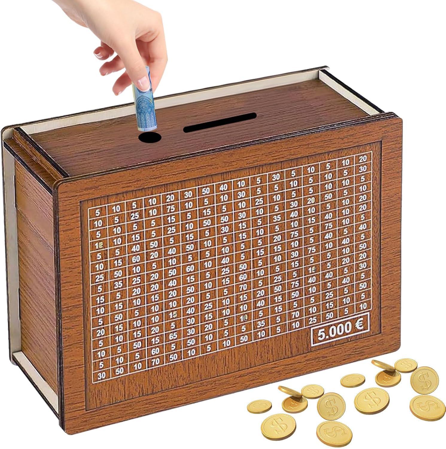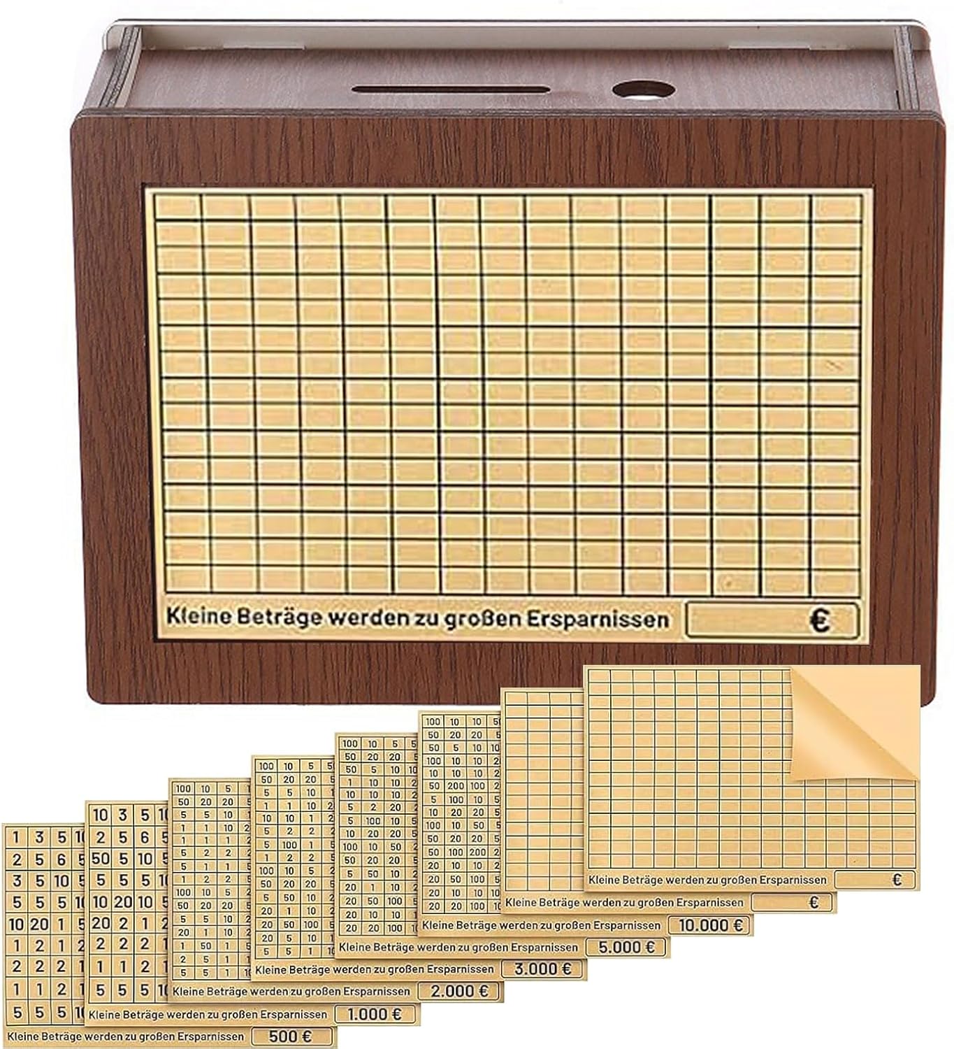 ★[MATERIALE DI ALTA QUALITÀ]: Il salvadanaio in legno è realizzato in materiale di legno ecologico, resistente, con superficie delicata e liscia, senza sbavature. Il materiale in legno non è facile da danneggiare, più sicuro da usare per i bambini. ★[OBIETTIVI RISPARMIO]: Il salvadanaio in legno contiene adesivi da 500 euro, 1000 euro, 2000 euro, 3000 euro, 5000 euro, 10.000 euro, oltre a due adesivi vergini e un pennarello per l'etichettatura individuale. Puoi fissare diversi obiettivi di risparmio a seconda delle tue esigenze e sviluppare così una buona abitudine di risparmio. ★[FACILE DA ASSEMBLARE]: non sono necessari altri strumenti o personale, il salvadanaio in legno è molto facile da montare, bastano pochi minuti e pochi semplici passaggi per il montaggio. (Per evitare danni, il salvadanaio in legno viene smontato al momento della consegna) ★[REGALO PERFETTO]: Il salvadanaio in legno è adatto sia a grandi che a piccini, è un regalo perfetto per compleanni e festività. Ideale per bambini o adulti che vogliono iniziare a risparmiare e aiutarli a sviluppare una buona abitudine al risparmio. ★[GARANZIA POST-VENDITA]: Forniamo ai nostri clienti un eccellente servizio clienti, se hai domande sull'acquisto di questo prodotto, contattaci, lo risolveremo per te la prima volta.