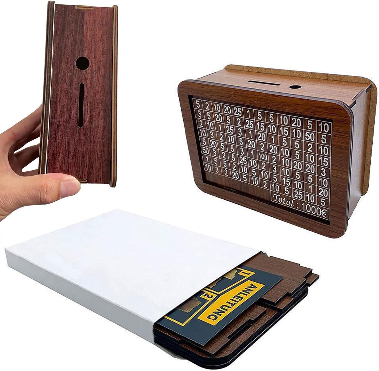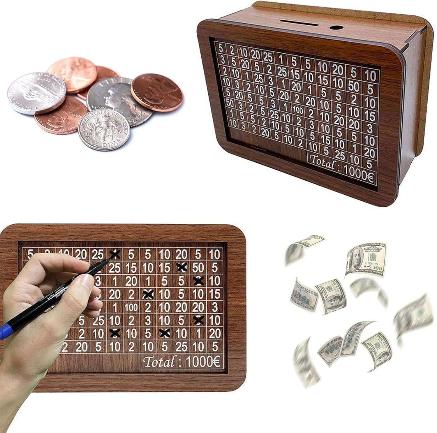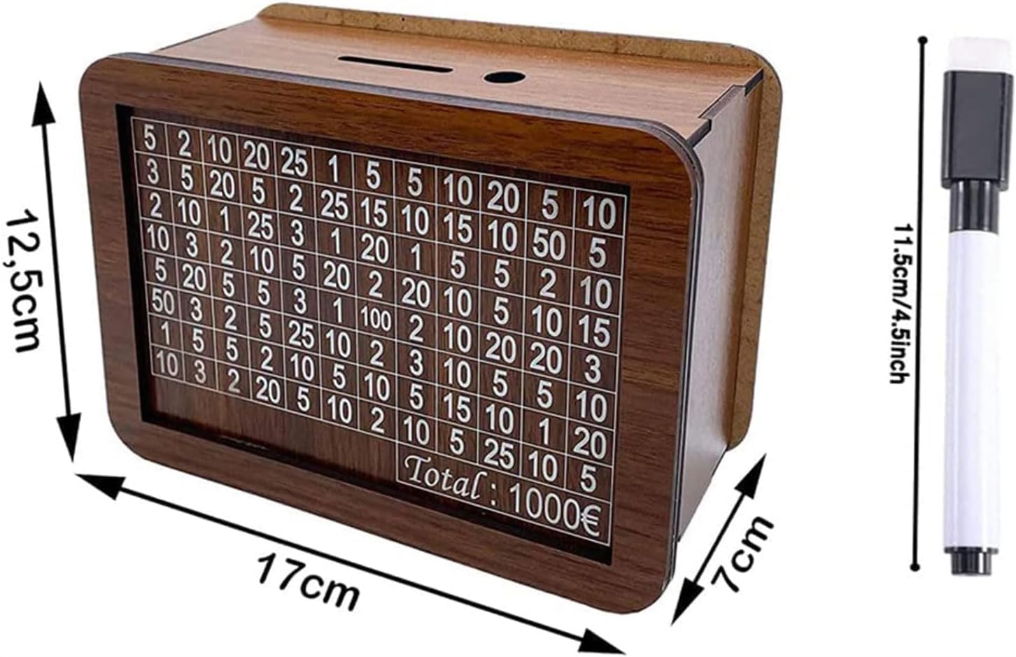【Contenuto della confezione】1 scatola porta soldi in legno e 1 pennarello. I salvadanai in legno possono aiutare le persone a sviluppare il concetto di risparmio. 【Facile da montare】 Il salvadanaio riutilizzabile viene spedito smontato. Per evitare rotture durante il trasporto, il montaggio è ovviamente molto semplice e richiede solo pochi minuti e può essere effettuato in pochi passaggi. 【Cassetta di risparmio con numeri che spuntano da 1000 euro】 La scatola di legno è realizzata in materiale di pioppo di alta qualità, che non è facile da danneggiare e può essere riutilizzato. Risparmiare è più divertente con il salvadanaio digitale con contatore. Questo salvadanaio per bambini è leggero, resistente e portatile. 【Sviluppare un concetto sano di risparmio e consumo】 Il nostro salvadanaio può aiutare i bambini o gli adulti a sviluppare una buona abitudine di risparmiare denaro e, attraverso il processo di risparmio, dare loro l'opportunità di consumare saggiamente, migliorare l'autodisciplina e gestire le entrate e le spese finanziarie in modo più scientifico. 【Regalo perfetto】 Il nostro salvadanaio in stile vintage non è adatto solo ai bambini, ma anche agli adulti che vogliono iniziare a risparmiare. Questa è un'ottima idea regalo per compleanni, vacanze o altre occasioni speciali. Insegna ai tuoi figli il valore del risparmio e guarda i loro risparmi crescere con i nostri salvadanai.