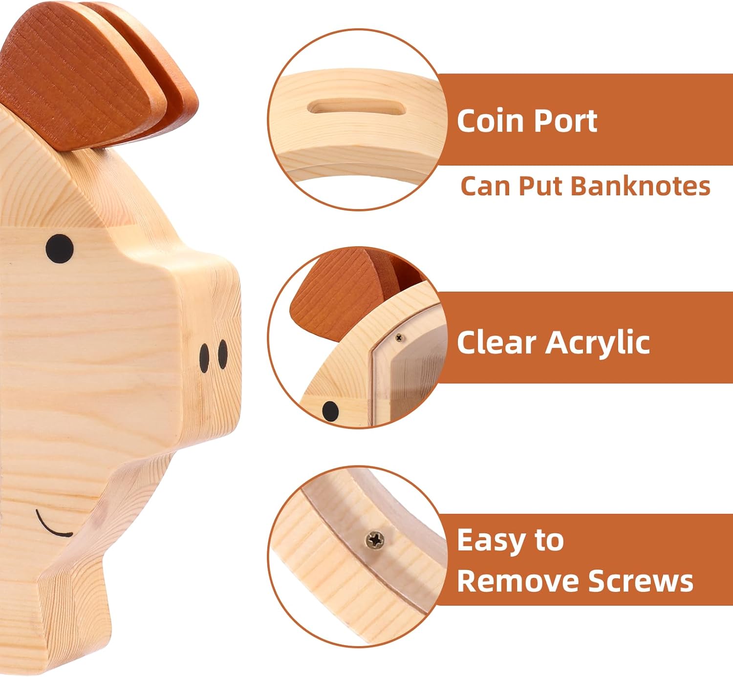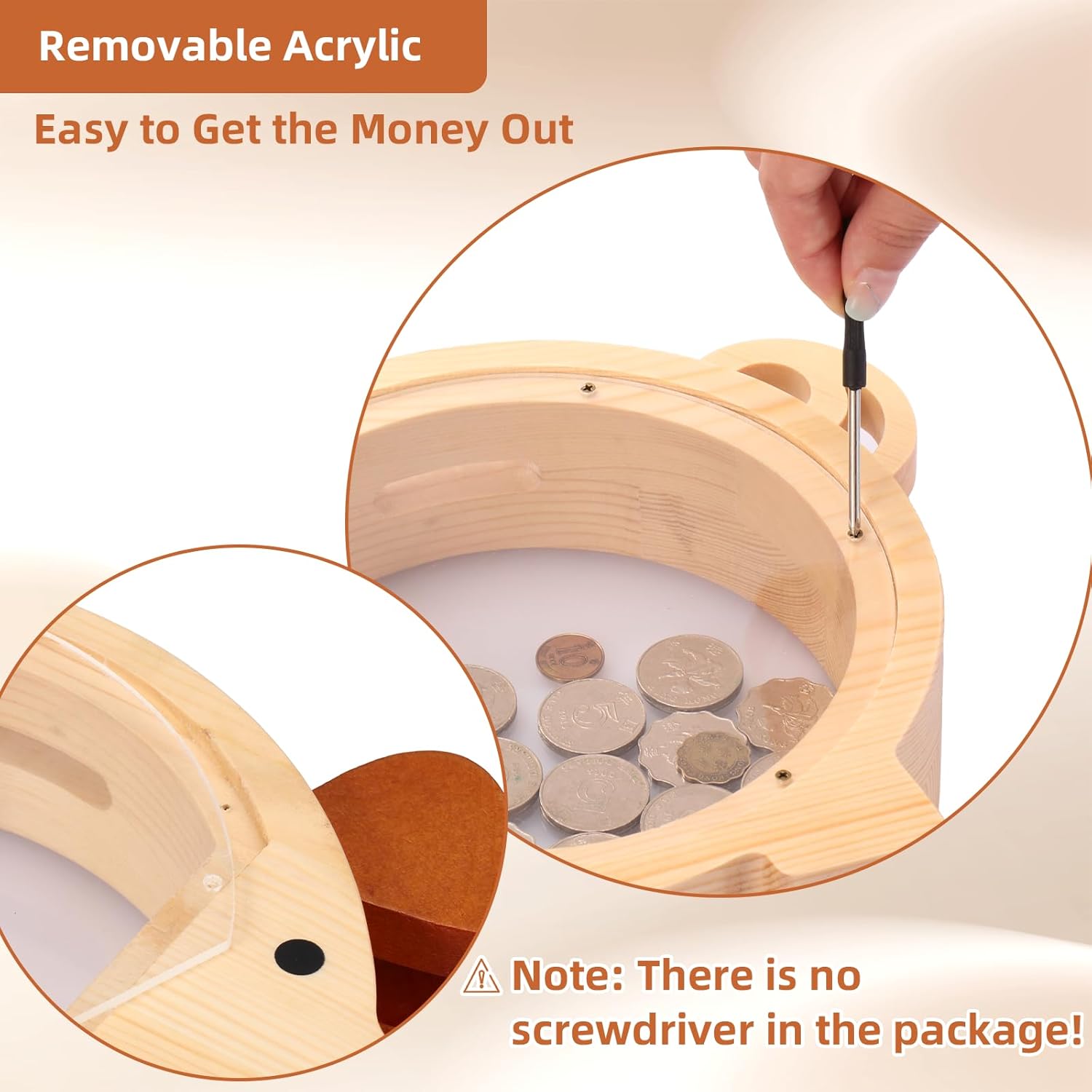 Facile da smontare: basta svitare le viti per prelevare risparmi, rendendo facile per i bambini accedere ai loro soldi quando necessario. Cacciavite non incluso. Acrilico migliorato: realizzato con legno naturale spesso 6 cm e acrilico resistente, che garantisce un salvadanaio robusto e robusto che non si rompe facilmente. 【Grandi dimensioni】: misura 25 x 22 x 6 cm, perfetto per riporre più monete e contanti, adatto per bambini di età superiore ai 3 anni. Risparmio di denaro: dispone di un grande foro da 4 cm per le bollette e una finestra trasparente per monitorare i progressi del risparmio, migliorando l'esperienza di risparmio per i bambini. 【Affidabilità e sicurezza】: certificazione CPC superata con bordi lisci e senza sbavature, garantendo la sicurezza per i bambini di età superiore ai 3 anni.