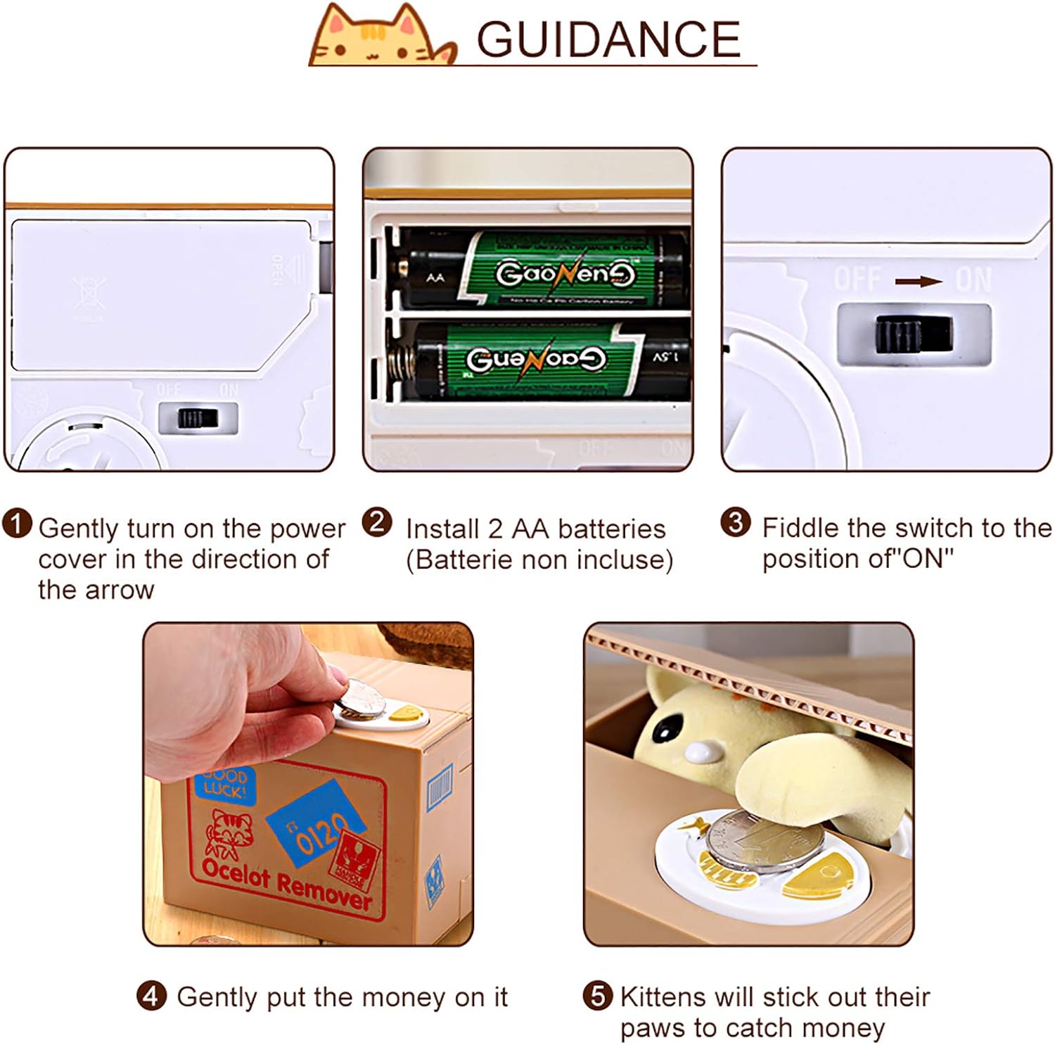 [CARINO] Il tema dell'adorabile gattino attira sia i bambini che gli adulti. [OPERAZIONE MANUALE] Lascia che sia il gatto a fare il lavoro di raccogliere e riporre per te. [GIOCATTOLO EDUCATIVO] Un modo giocoso per instillare buone abitudini di risparmio nei bambini di tutte le età. [DUREVOLE] La robusta plastica ABS e i componenti elettronici garantiscono una lunga durata. [MULTIUSO] Usalo come oggetto decorativo a casa o come inizio di conversazione in ufficio.