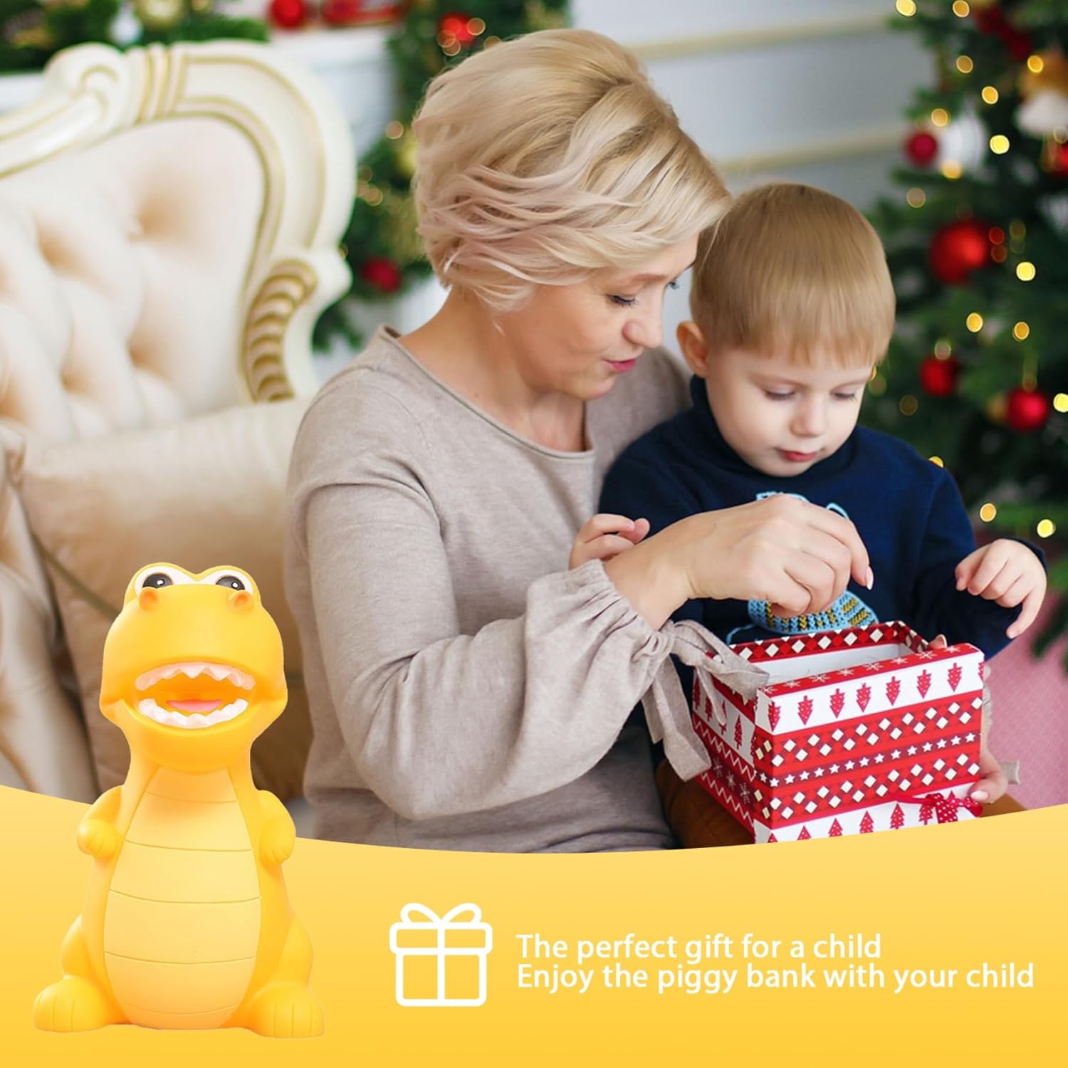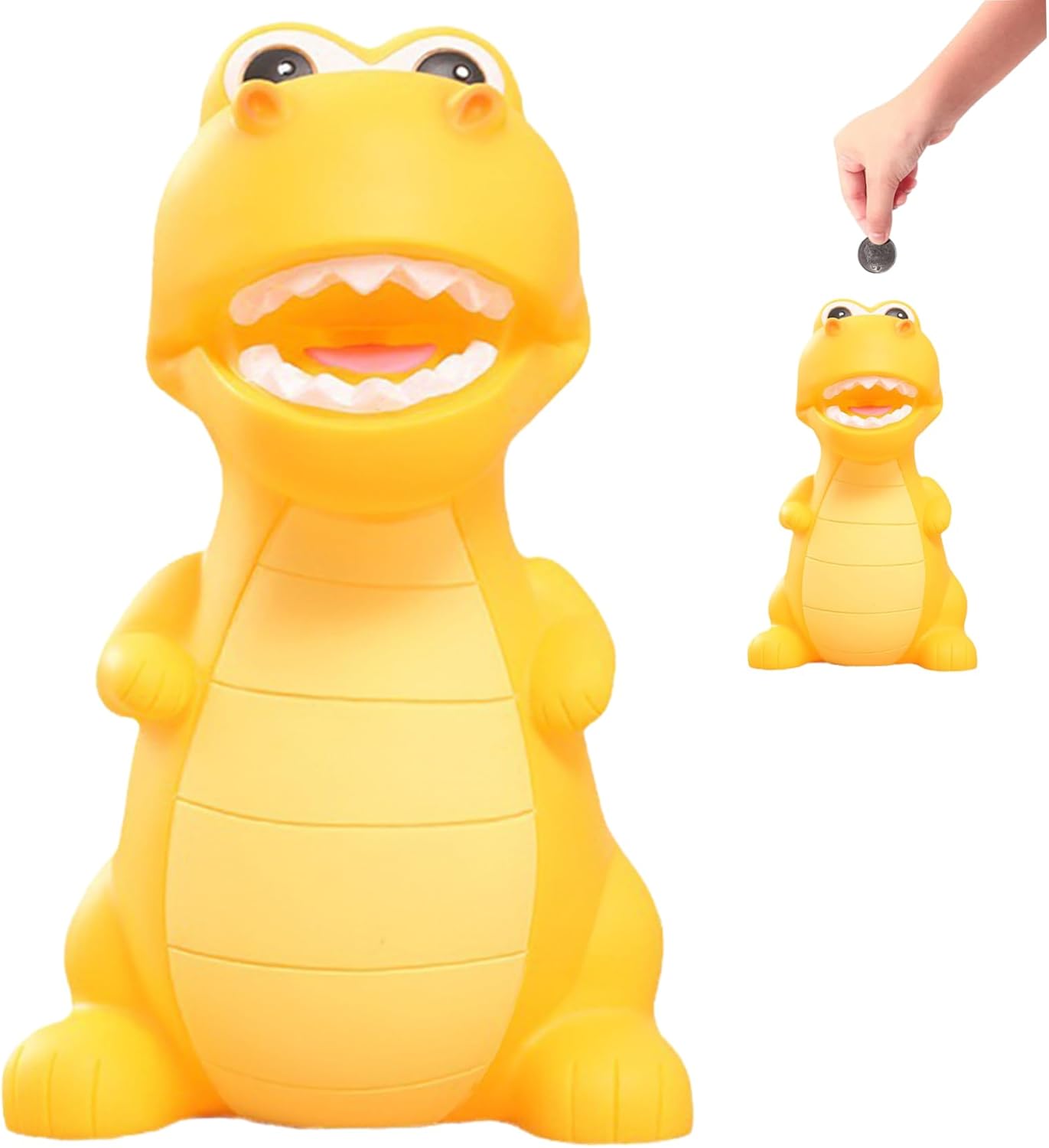 Adorabile forma di dinosauro: con una forma di dinosauro carina e affascinante, questa banca di soldi è facile da attirare l'attenzione e l'amore dei bambini..Una banca perfetta per i più piccoli, aggiungi la prima moneta del tuo bambino a questo adorabile salvadanaio a forma di dinosauro!.I bambini divertiranno a depositare i soldi nel loro simpatico salvadanaio preferito e guarderanno crescere i loro risparmi! e affidabile: questo salvadanaio per bambini è realizzato in plastica vinilica di qualità ed è sicuro ed ecologico, privo di BPA, questo salvadanaio dinosauro per ragazzi e ragazze è così robusto che i bambini potrebbero lasciarlo cadere molte volte senza causare alcun danno..A differenza dei salvadanai in ceramica che sono fragili, non romperà Opzione perfetta: ideale per compleanni, baby shower o altri festival, questo simpatico salvadanaio a forma di dinosauro funge da premuroso e delizioso che combina divertimento, funzionalità ed educazione. Sviluppo della consapevolezza finanziaria: il nostro simpatico salvadanaio a forma di dinosauro può incoraggiare l'alfabetizzazione finanziaria e l'abitudine di risparmiare denaro nei bambini fin dalla tenera età, promuovendo il senso di responsabilità e il valore del risparmio. Ornamento carino: la banca di monete di dinosauro è una decorazione unica, con un simpatico design a forma di cartone animato, sarà una decorazione desktop retrò molto attraente, può migliorare la bellezza generale della tua casa, questa adorabile banca di valuta di dinosauro può aggiungere un po' di divertimento alla vita delle persone.