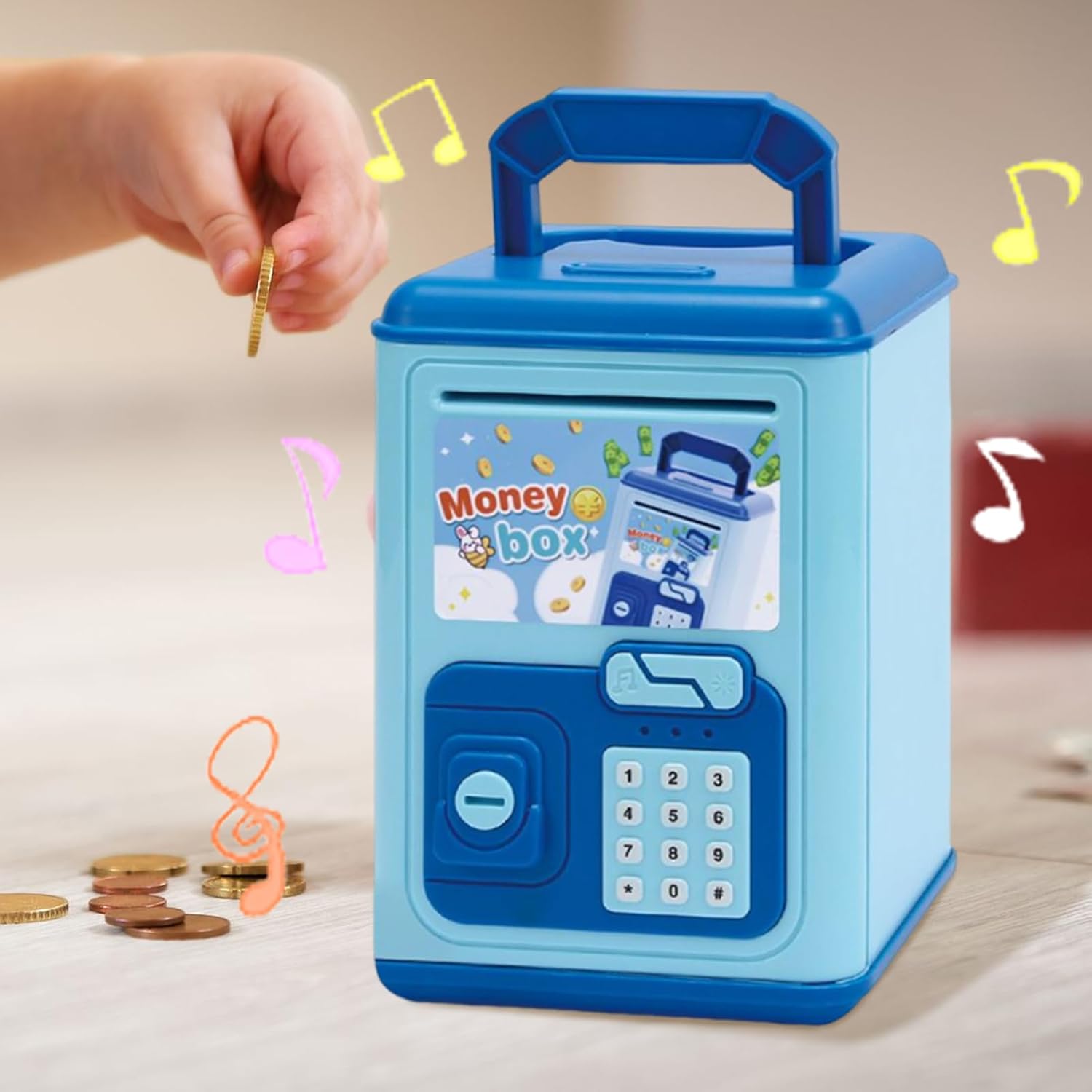 Consapevolezza Monetaria: Promuove la responsabilità finanziaria attraverso comportamenti di risparmio regolari, permettendo ai bambini di comprendere il valore del denaro e costruire solide per future competenze economiche essenziali Educativa: Regalo unico per occasioni speciali che combina intrattenimento e sviluppo delle abilità pratiche. Design pensato per rendere il risparmio un'attività coinvolgente e istruttiva per ogni bambino. Struttura Robusta: Caratterizzato da ABS ecologico ad alta resistenza, offre durabilità superiore, struttura durevole e protezione affidabile contro l'usura quotidiana e gli impatti Pratissimo: Deposito contanti senza sforzo grazie all'ingresso banconote attivato da sensore che le arrotola automaticamente, con spazio intelligente per conservare insieme monete e banconote in un posto organizzato Divertimento Integrato: Affascina i piccoli utenti con melodie interattive attivate dal deposito delle monete, spingendoli a risparmiare mentre godono di un processo ludico e coinvolgente.