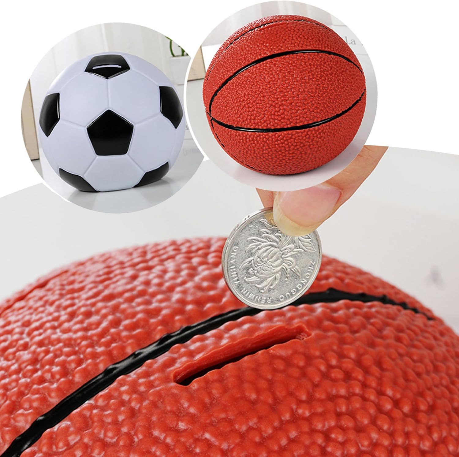 Risparmiate denaro con questo innovativo barattolo per monete a forma di pallone da basket e calcio Inizia a risparmiare in un modo unico! Questo barattolo per monete ti consente di conservare i tuoi risparmi mostrando il tuo amore per il basket e il calcio Con la sua grande capacità e questo portamonete staccabile è per chiunque cerchi di sviluppare una routine di risparmio Adatto per appassionati di basket e calcio, bambini, adolescenti e famiglie che vogliono coltivare le abitudini di risparmio Che sia a scuola, nel campo sportivo o come oggetto decorativo o regalo, questo barattolo porta monete aggiunge un tocco di creatività a qualsiasi spazio