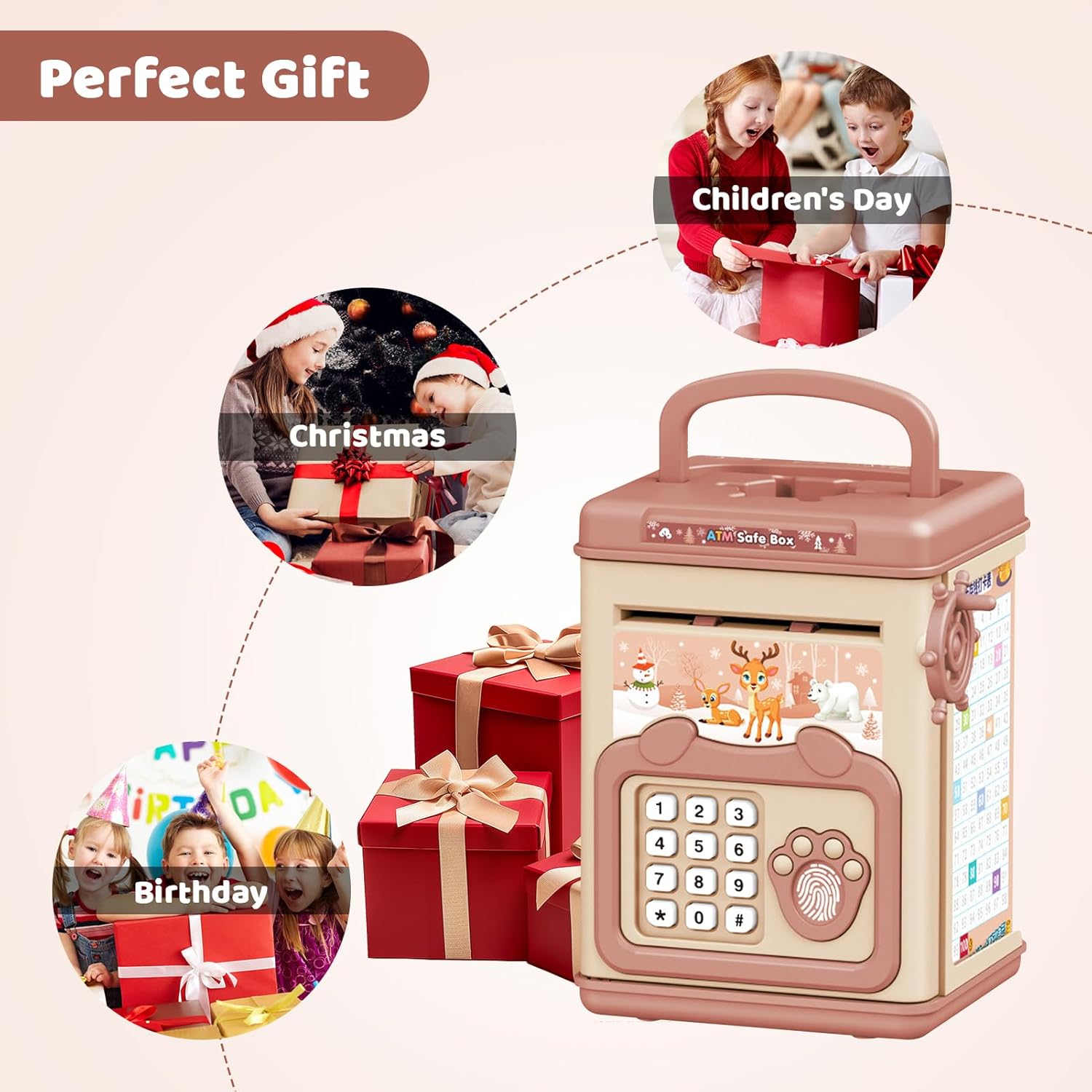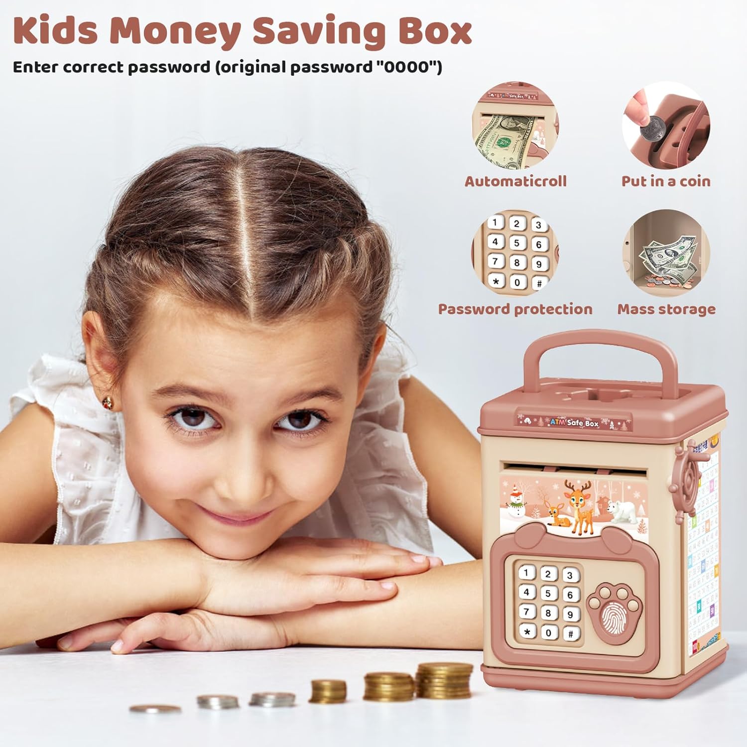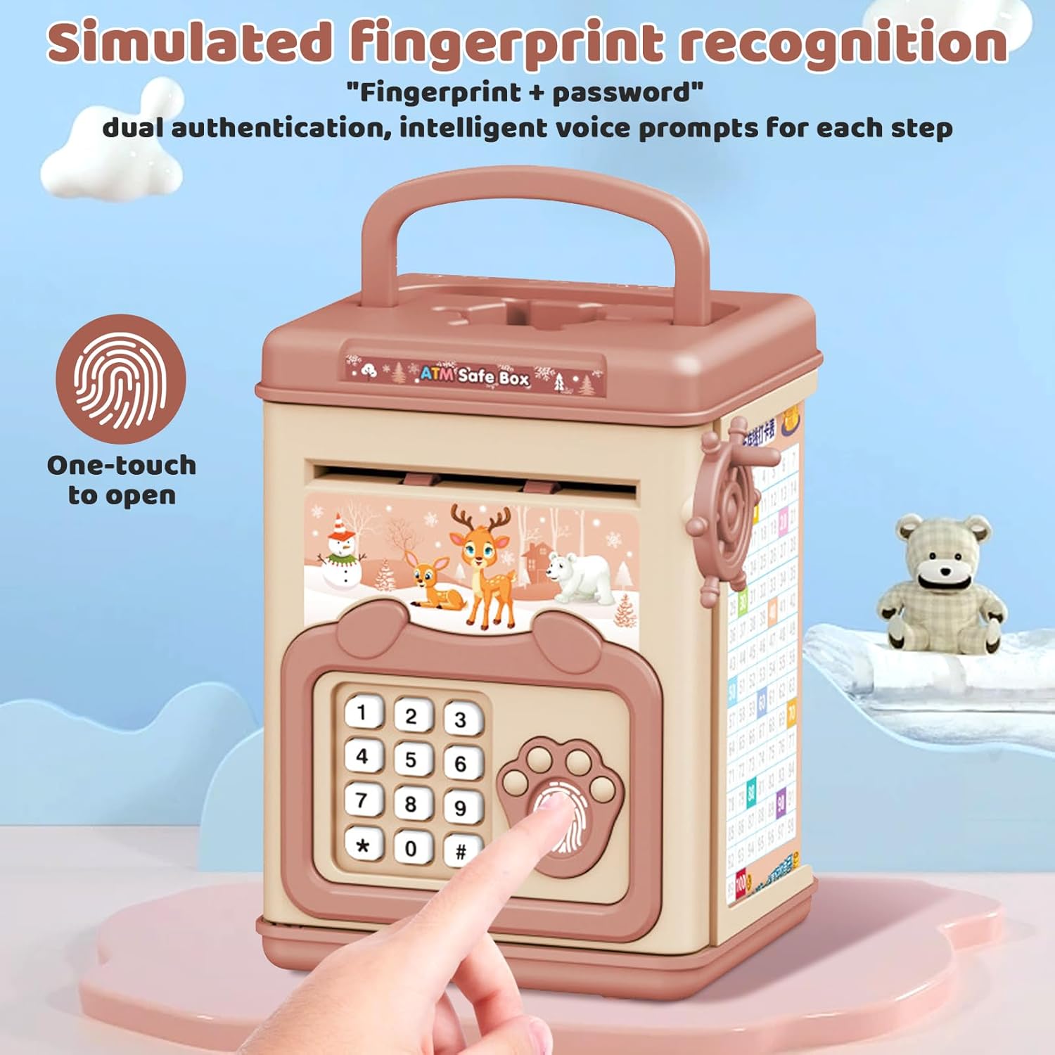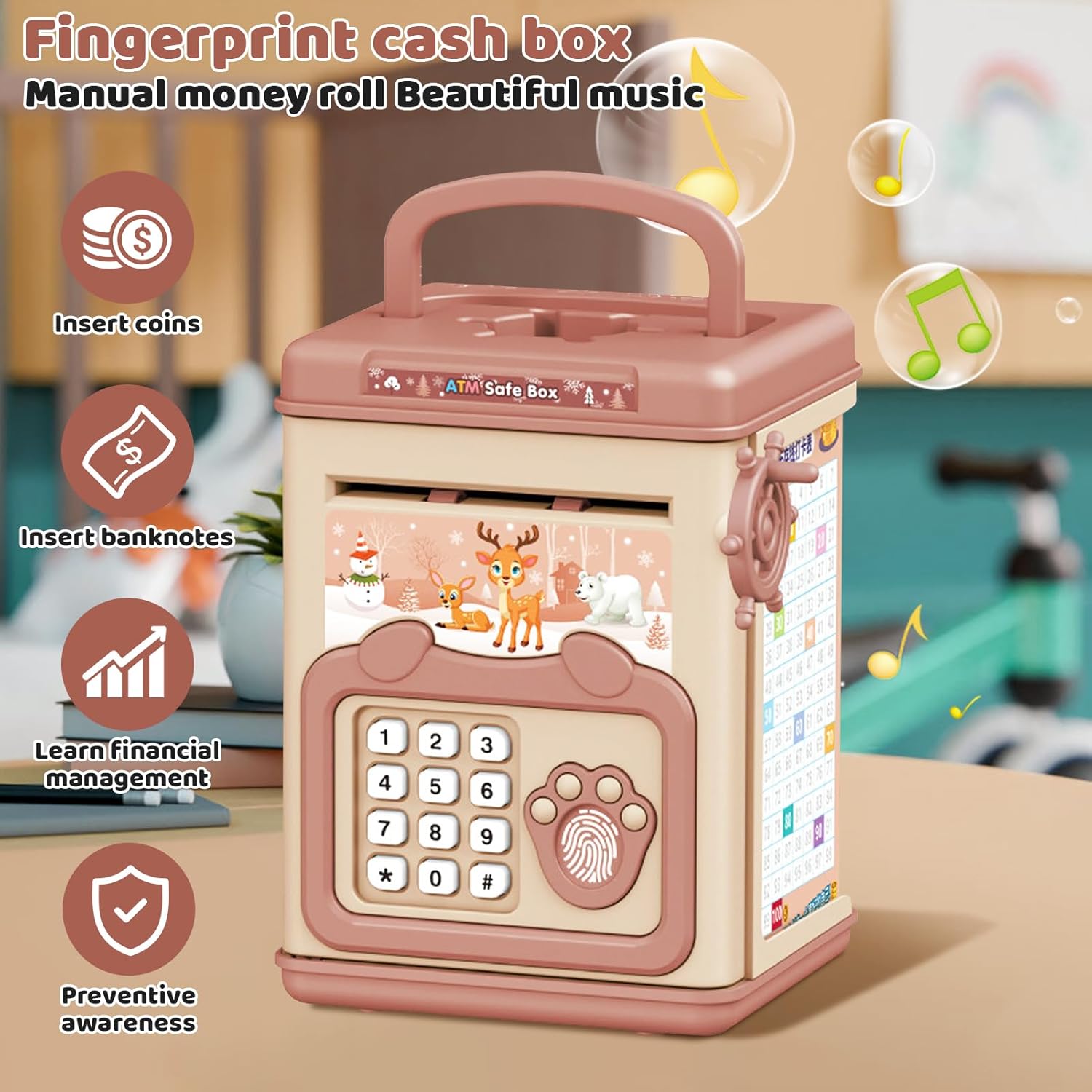 Il divertimento di risparmiare denaro grazie allo scorrimento manuale: questo salvadanaio per bambini presenta un design unico a scorrimento manuale, così i bambini possono divertirsi senza fine risparmiando denaro. Basta posizionare la banconota nell'ingresso della banca, girare con attenzione la ruota accanto e la banconota diventerà magicamente parte del salvadanaio. Aiutali a sviluppare buone abitudini di risparmio. Doppia protezione delle impronte digitali e della password: per garantire la sicurezza delle proprietà dei bambini, questa scatola per risparmiare denaro è dotata di una tecnologia avanzata di riconoscimento delle impronte digitali e di funzioni di protezione con doppia password. La password predefinita è 0000, puoi modificarla se necessario. Solo quando l'impronta digitale e la password sono corrette la porta si aprirà automaticamente, impedendo efficacemente l'accesso non autorizzato. L'ISTRUZIONE INCONTRA L'INTRATTENIMENTO: questo salvadanaio per bambini è stato progettato con questo salvadanaio dalla forma unica. Non solo cattura l'attenzione dei bambini, ma li aiuta anche a sviluppare la buona abitudine di risparmiare denaro in modo divertente. La musica dinamica integrata e la funzione di cambio brano rendono il risparmio di denaro un'esperienza piacevole ogni volta. I comandi vocali sono facili da usare: questa banconota salvadanaio è dotata anche di una funzione di comando vocale. Ogni passaggio è dotato di una guida vocale chiara, che rende il funzionamento semplice e facile da comprendere. Indipendentemente dal fatto che si tratti del primo utilizzo o del funzionamento quotidiano, può essere eseguito senza problemi. La musica dinamica integrata e la funzione di modifica dei brani rendono l'intero processo pieno di divertimento. Scelta perfetta per il regalo di Natale: questo salvadanaio Tresors non è solo un pratico strumento di risparmio, ma anche un regalo premuroso. Che si tratti di compleanno, Natale, Halloween o Ringraziamento, è un regalo ideale per ragazzi e ragazze dai 3 ai 10 anni. Non solo porta gioia ai bambini, ma impara anche a proteggere i loro oggetti di valore.