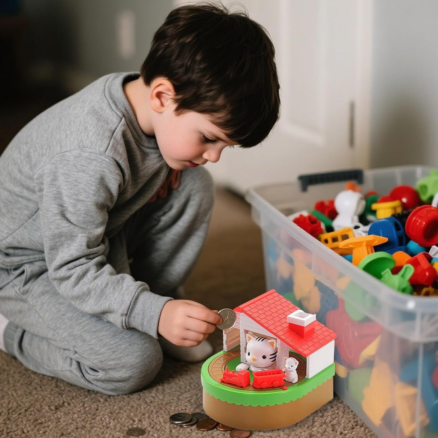Meccanismo Coinvolgente:Premi il pulsante rosso o inserisci monete per attivare il movimento dei topini sul percorso mentre le monete caautomaticamente nella base, creando un'esperienza interattiva che affascina i bambini Design Originale: Banca innovativa con forma di casetta per gatti funzionale al risparmio, regala momenti di gioia grazie al fantasioso trenino di topini che consegna le monete nel salvadanaio Effetti sonori integrati: Salvadanaio per bambini con altoparlante interno che riproduce effetti sonori divertenti e musiche allegre, inclusi suoni di gatti per un'esperienza di gioco coinvolgente e stimolante, ideale per intrattenere i piccoli durante il risparmio. Educazione Finanziaria Precoce: Insegna ai bambini il risparmio, incoraggia la consapevolezza del denaro attraverso attività piacevoli e significative, costruendo valore educativo in modo naturale e duraturo passo dopo passo Ideale come Regalo: Realizzato per essere un regalo speciale per persone care, colleghi e amici, abbina funzionalità e valore affettivo. Pratico anche per uso personale, è un apprezzato in ogni occasione.