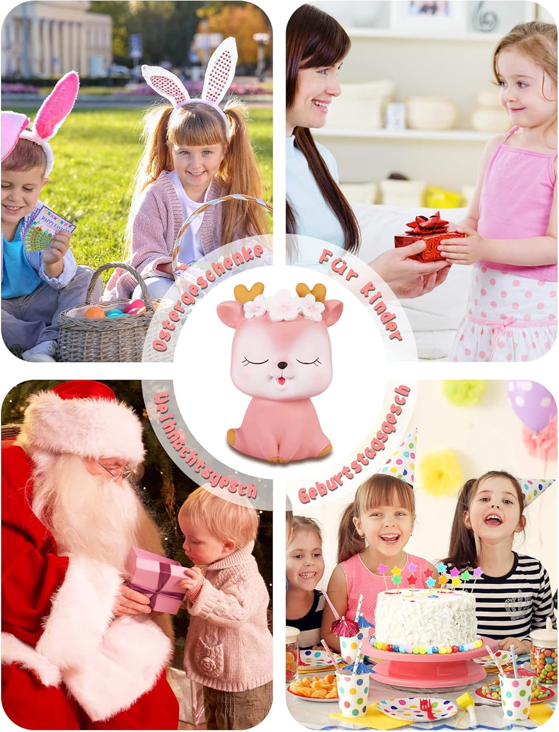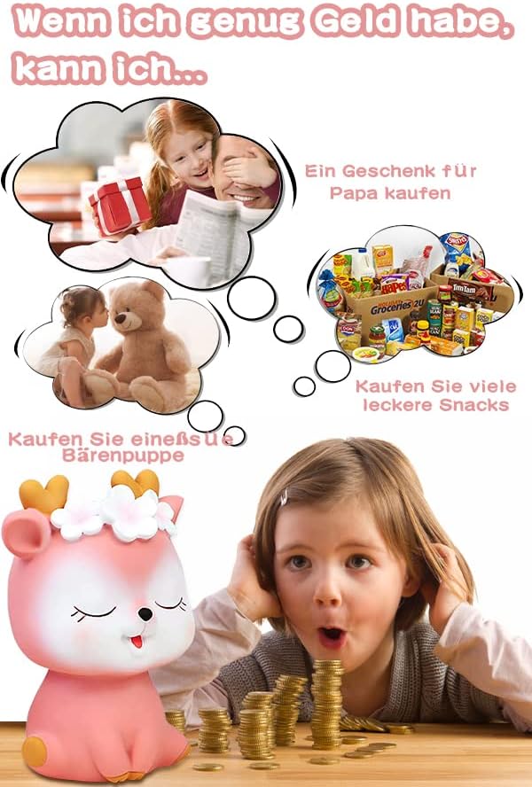 【Salvadanaio infrangibile】 Questo simpatico salvadanaio realizzato in spessa plastica vinilica è molto robusto e durevole, i bambini possono lasciarlo cadere molte volte senza danneggiarlo. Questo salvadanaio misura circa 5,2 x 4,3 x 7,3 pollici, abbastanza grande da contenere molte monete e contanti. 【Carino salvadanaio con cervo】 Questo salvadanaio per ragazza cervo Sika farà sicuramente sorridere ogni ragazza con le sue graziose corna di cervo, le guance arrossate, il bellissimo fiore sulla testa, la piccola bocca sorridente, una buona postura seduta. Questo è davvero un salvadanaio con monete rosa che le ragazze adoreranno! 【Regalo perfetto】 È un regalo unico per il tuo compleanno, Natale, Pasqua e bambini. Un interessante strumento di apprendimento per crescere insieme ai tuoi figli. È interessante ed educativo e insegna ai bambini l'importanza del risparmio. Questo sarà un regalo molto speciale per i bambini. Allo stesso tempo, tra i bambini viene incoraggiata l’abitudine al risparmio. 【Decorazioni per la casa】 Questo simpatico salvadanaio si adatta perfettamente a qualsiasi tavolo o libreria ed è la decorazione perfetta per la cameretta del tuo piccolo. Questo salvadanaio non solo insegna il valore del risparmio, ma funge anche da decorazione per la cameretta della bambina. E come salvadanaio, non è solo un ornamento, ma anche un giocattolo e il partner di tuo figlio. 【Servizio eccellente】 Se non sei soddisfatto, contattaci e possiamo offrirti un rimborso completo o un servizio di sostituzione.