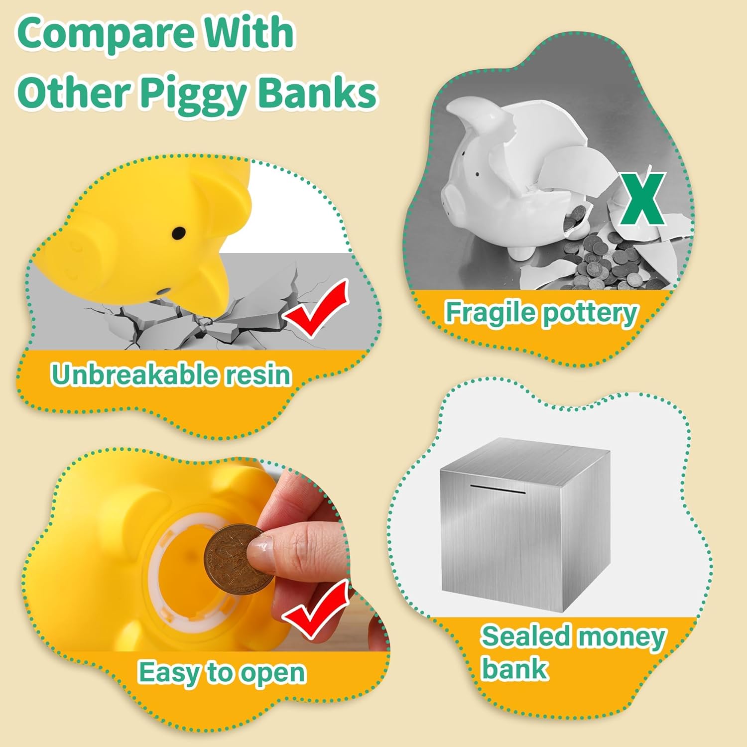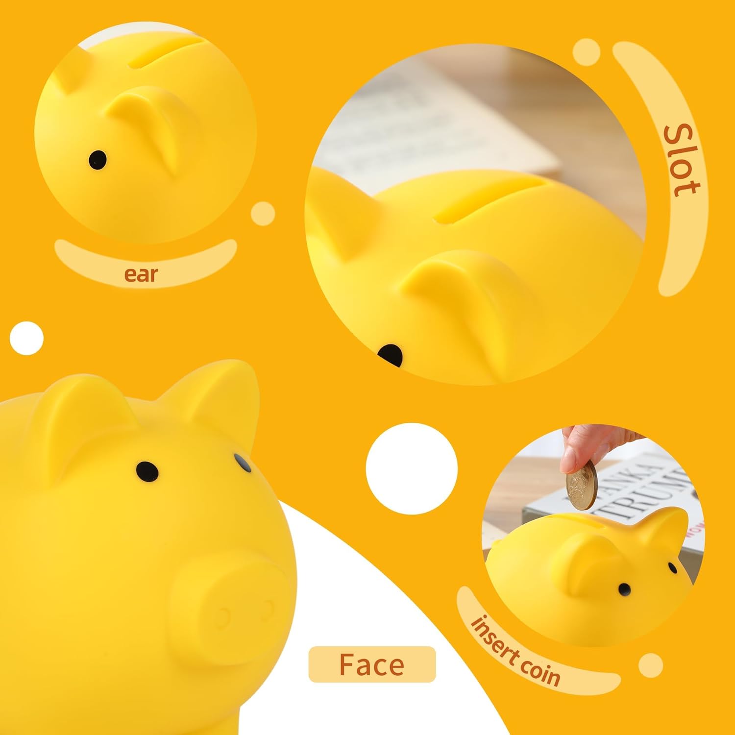 【Salvadanai per Bambini】Questo salvadanaio per ragazze ha un design carino e accattivante,che fa sì che i bambini amino riporre i loro soldi di riserva in questo adorabile amico salvadanaio e guardare i loro risparmi crescere.Il salvadanaio di plastica può anche essere usato come decorazione per la stanza del bambino. 【Salvadanaio Infrangibile】Il materiale principale di questo salvadanaio per bambini è il PVC vinilico. A differenza di altri fragili salvadanai in vetro o ceramica, questo salvadanaio per bambini è flessibile, molto resistente, non rotto e rispettoso dell'ambiente, e sicuro da dare a qualsiasi bambino e baby.Questo salvadanaio per ragazzi è il primo salvadanaio per insegnare ai bambini il valore del risparmio di denaro. 【Slot per Banche di Monete】Un'ampia entrata nella parte superiore assicura che ogni moneta sia inserita e un tappo di plastica a vite nella parte inferiore di questo simpatico salvadanaio per bambini, è sufficiente ruotare il pulsante al posto giusto, non è così facile per i bambini entrare nel ciclo infinito di rimozione delle monete dai salvadanai, ma è facilmente rimovibile quando sono pronti ad aprire il salvadanaio per un po' di divertimento. 【Dimensioni】Il grande salvadanaio è 14cm (L) x 11cm (W) x 12,5cm (H), è grande, e può aiutare i bambini a sperimentare la gioia di risparmiare denaro.Questo salvadanaio per bambini può anche essere come accessori per la camera da letto per i bambini. 【Il Miglior Regalo per i Bambini】Questo salvadanaio per ragazzi può aiutare i bambini a sviluppare l'abitudine di risparmiare denaro, insegnando ai bambini a iniziare a risparmiare presto.Grande regalo per i bambini anche adulti compleanni, Natale, Capodanno, festival, regalo di Pasqua, regali baby shower e ecc.