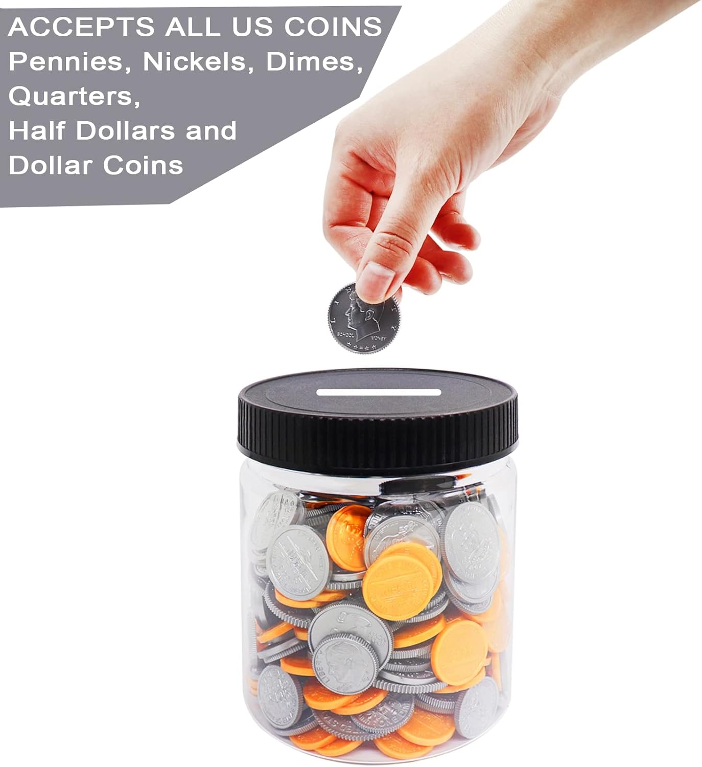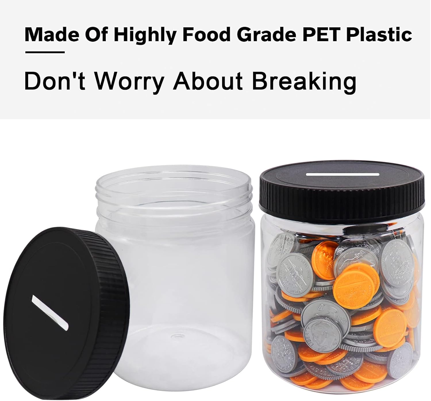 ❤️Confezione conveniente da 4: riceverai 4 piccoli salvadanai in plastica con coperchi a fessura per risparmiare monete e denaro. Possiamo tenere quattro monete o soldi diversi contemporaneamente. Possiamo anche introdurre i bambini al risparmio, alla spesa e alla condivisione di contenitori attraverso molti concetti di denaro. Dimensioni: 11 cm, diametro 9 cm; Capacità: 500 ml = 16 once fluide = 2 tazze = 1 pinta. ❤️Salvadanaio trasparente: il piccolo salvadanaio è realizzato in plastica PET resistente, infrangibile e per uso alimentare. Rispetto ai salvadanai in vetro o ceramica, il nostro salvadanaio in plastica a misura di bambino è più sicuro e leggero dei bicchieri. L'aspetto altamente trasparente consente di vedere chiaramente il saldo del deposito nel salvadanaio per bambini. ❤️ Graziosi salvadanai universali: la fessura del salvadanaio per bambini piccoli è lunga 40 mm (1,57 pollici) e larga 4 mm (0,16 pollici). Il salvadanaio trasparente può contenere tutte le monete in euro. ❤️ Salvadanaio a bocca larga: il coperchio a vite facile da installare e rimuovere è ottimo per versare e svuotare il contenuto. ❤️Vari usi: il salvadanaio per bambini piccoli è ideale per bambini, adolescenti e adulti, organizzatore per barattoli di resto, lezioni di matematica, barattolo per donazioni per raccolte fondi, barattolo per cambio famiglia, bottiglie dei desideri, bottiglia per conservare arte, artigianato, decorazioni, regali per feste e altro ancora.