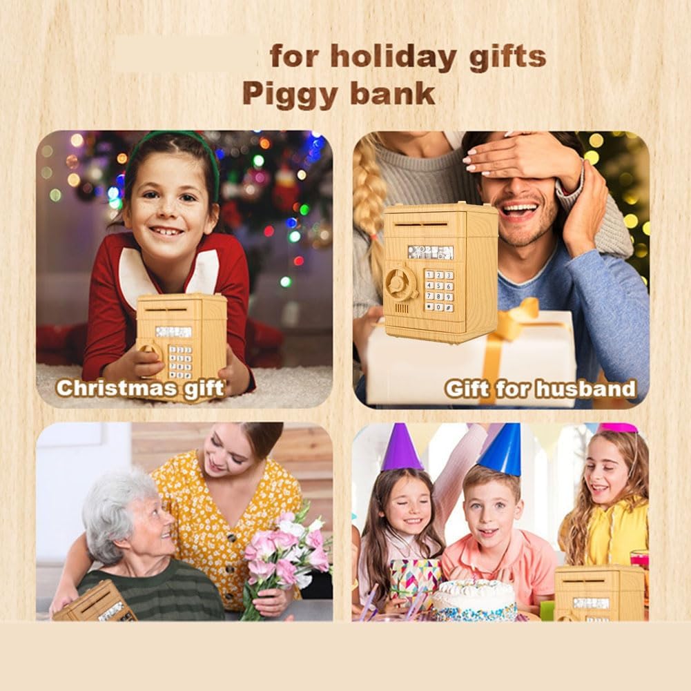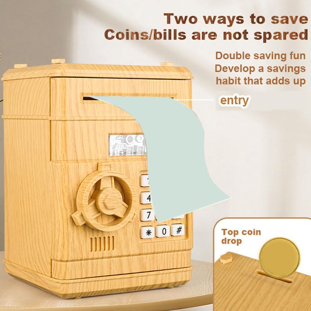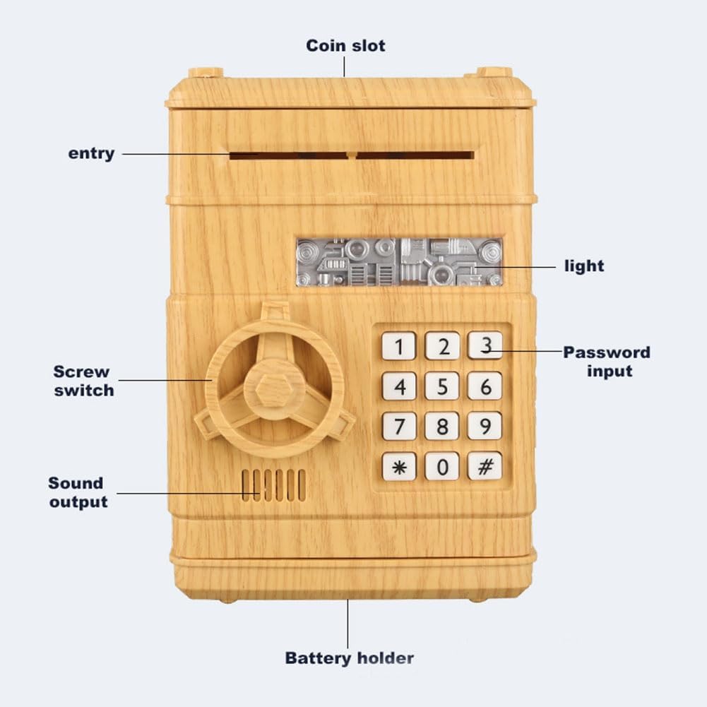 Anche con una fessura per le monete nella parte superiore della scatola che consente di conservare tutti i tipi di monete. Si un suono di avviso si apre la porta e si blocca automaticamente la si chiude. Banconote a rotazione automatica, inserisci la banconota nell'apposito slot e questa verrà automaticamente fatta rotolare nella scatola. Progettazione della password, rendi la tua "proprietà" più sicura e la password è modificabile. Coltiva il senso del risparmio nei bambini, impara a gestire i soldi. Un bel regalo per i bambini.