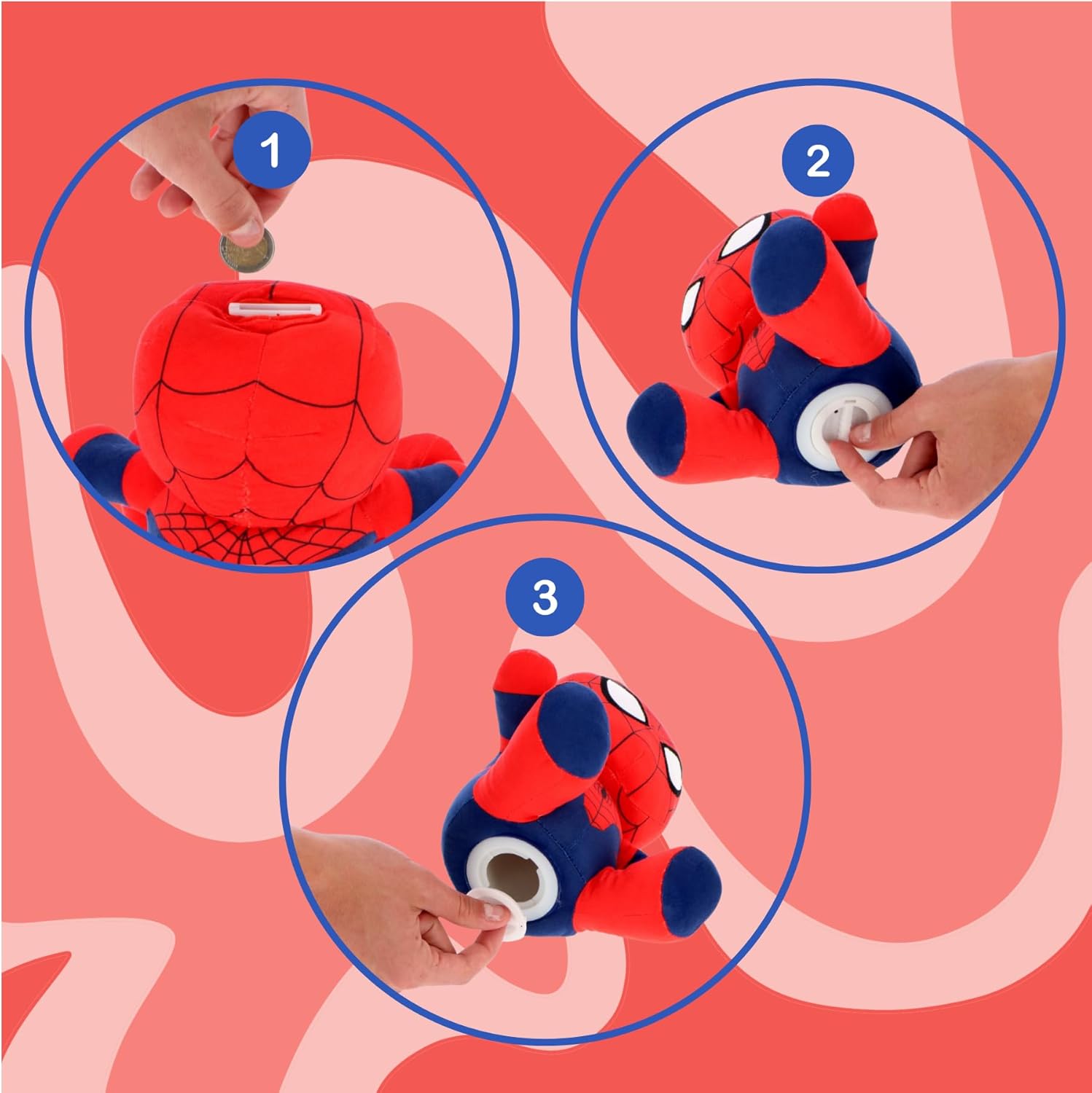 🎨 Progettato con amore e super morbido: ogni personaggio è realizzato in peluche di alta qualità: morbido da coccolare, sicuro per le mani dei bambini e dotato di molti dettagli amorevoli. 🕷️ Design Spider-Man - Con il classico costume da supereroe rosso e blu, questo salvadanaio porta la magia Marvel direttamente nella stanza del tuo bambino. 💰 Combina il divertimento del risparmio con il fattore coccolo: il morbido materiale di peluche garantisce una sensazione piacevole, mentre la fessura per le monete incoraggia il risparmio giocoso.