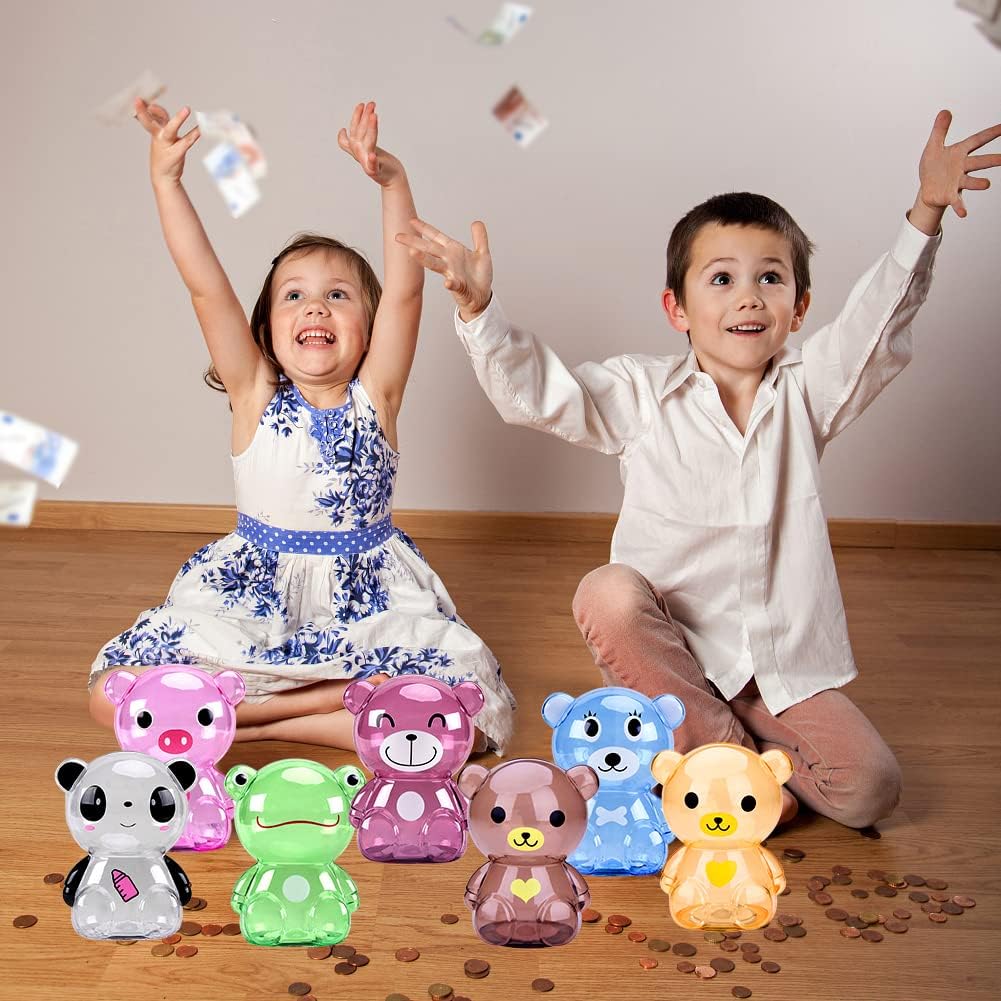 【Design carino】 Questo salvadanaio è progettato con un simpatico aspetto animale 3D. La parte superiore della testa ha un'apertura per monete o banconote. Apri il coperchio a vite in basso e potrai estrarre tutti i tuoi risparmi. 【Grande capacità e design trasparente】 Il salvadanaio è lungo 10,5 cm e alto 15 cm. Può contenere fino a 300 monete. Attraverso il vetro trasparente puoi vedere la crescita dei risparmi e goderti il divertimento delle monete. 【Salvadanaio con monete a forma di orso adorabile】 un salvadanaio per i più piccoli che iniziano a risparmiare depositando denaro in questo simpatico salvadanaio a forma di orso. Il salvadanaio a forma di orso sembra carino e attraente, i bambini adoreranno mettere i soldi in questo simpatico salvadanaio a monete e vedere crescere i loro risparmi, il che aiuta anche a sviluppare buone abitudini di risparmio dei bambini. 【Decorazione affascinante】 Questo simpatico salvadanaio a forma di animale è un'ottima decorazione carina su qualsiasi tavolo o scaffale. Alla moda e unico, dona alla tua casa un'atmosfera calda e trendy. 【Regalo】 Adatto per la raccolta, la decorazione e il regalo per gli amici, come regalo di Natale o di compleanno. Regalo perfetto per anniversari/compleanni/tutte le occasioni.