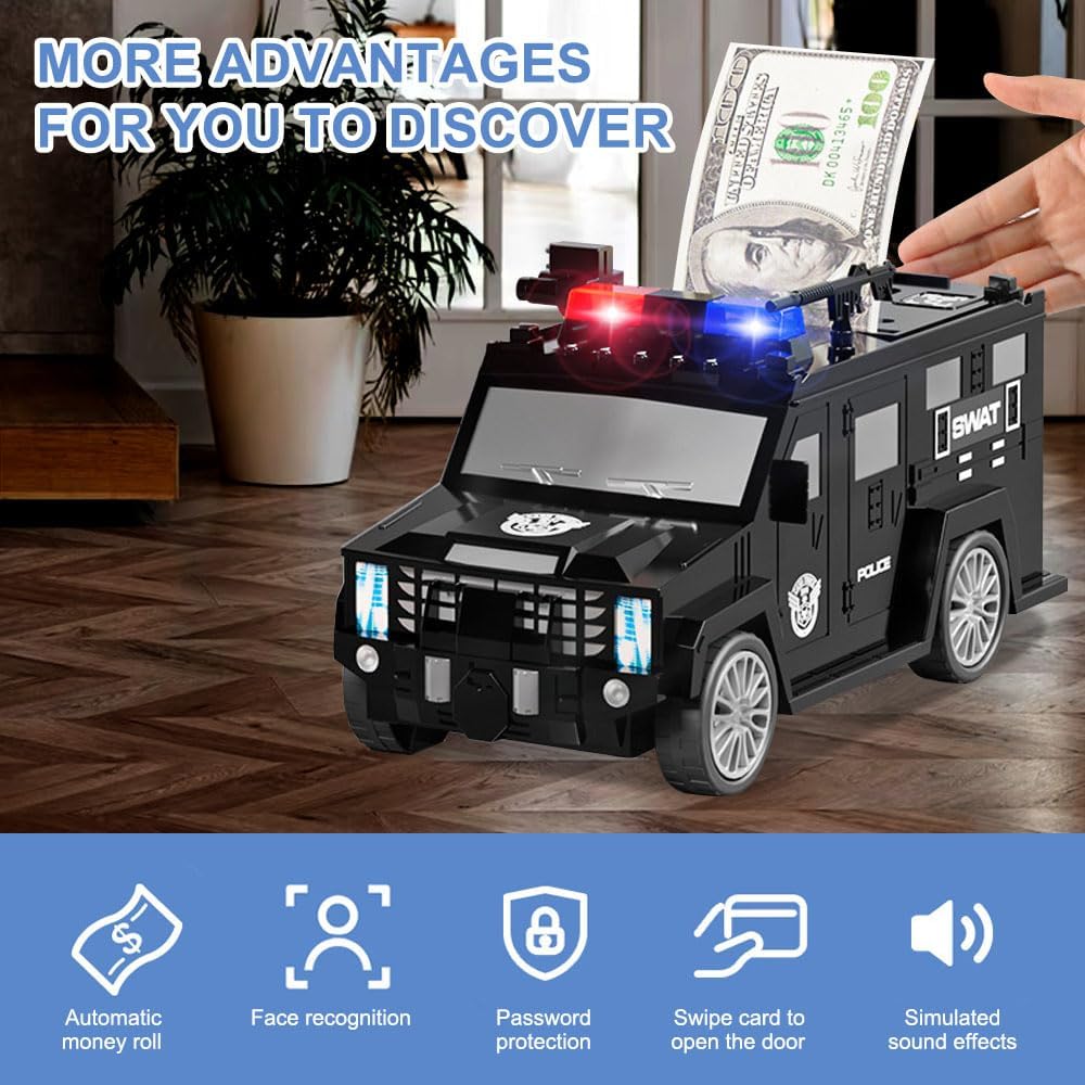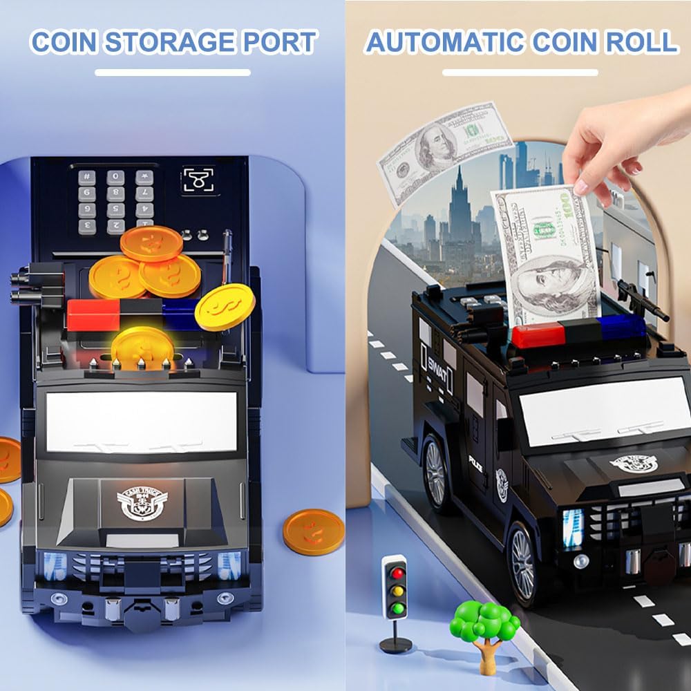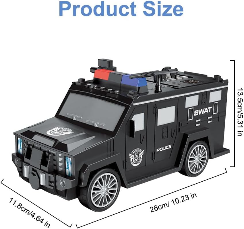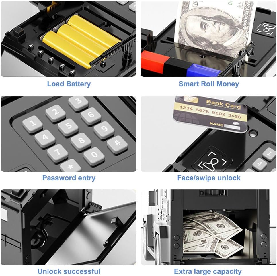 【Materiali di alta qualità】 Il salvadanaio per il trasporto di contanti è realizzato in plastica ABS di alta qualità, non tossico, inodore e non facile da rompere. Un'interessante cassaforte adatta ai bambini. Aiuta, un'interessante cassaforte su misura per i bambini. 【Salvadanaio con password】 Questa cassaforte può essere aperta solo se è stata inserita la password di 4 cifre. La luce verde si accenderà e potrai girare la manopola in senso orario e aprire la porta. (Predefinito: 0000). 【Gestione del denaro per i bambini】 Proteggi gli effetti personali dei bambini, il salvadanaio per il trasporto di denaro può conservare monete, cartamoneta o altri oggetti importanti, aiutando i tuoi figli a sviluppare una buona abitudine di risparmiare denaro. Insegnare abilità di vita e gestione del denaro in giovane età è un’ottima cosa. 【Facile da usare】 Inserisci le monete dalla fessura per le monete sopra il salvadanaio per bambini e quando depositi le banconote, aspira i soldi invece di spingerli semplicemente dentro. Nessuno può aprire la cassaforte senza una password. 【Regalo perfetto】 I bambini adoreranno ricevere il salvadanaio per bambini. È divertente, educativo e insegna l'importanza del risparmio. Il salvadanaio per bambini è il miglior regalo per il compleanno dei bambini, regalo di Natale, regalo di Capodanno, premio, ricompensa o qualsiasi altro regalo di Natale.