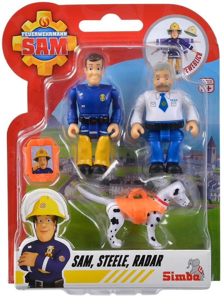 Bambini Licenza Tema: Pompiere Sam Allarme arriva una chiamata di emergenza! Nessun problema per il pompiere Sam. Nella tranquilla cittadina di Pontypandy, Sam e i suoi colleghi hanno spesso qualcosa da fare. Con questi fantastici set di personaggi è possibile riprodurre facilmente le scene della famosa serie. Ogni set include 2 personaggi completamente mobili e fino a 6 accessori. Il set include Sam, Steele, Radar e accessori Dimensioni dei personaggi: circa : Elvis – Larghezza 3,5 x Altezza 7,0 x Profondità 2,0 cm, Dilys – Larghezza 3,0 x Altezza 7,0 x Profondità 2,0 cm Materiale: plastica, adatto per bambini dai 3 anni in su